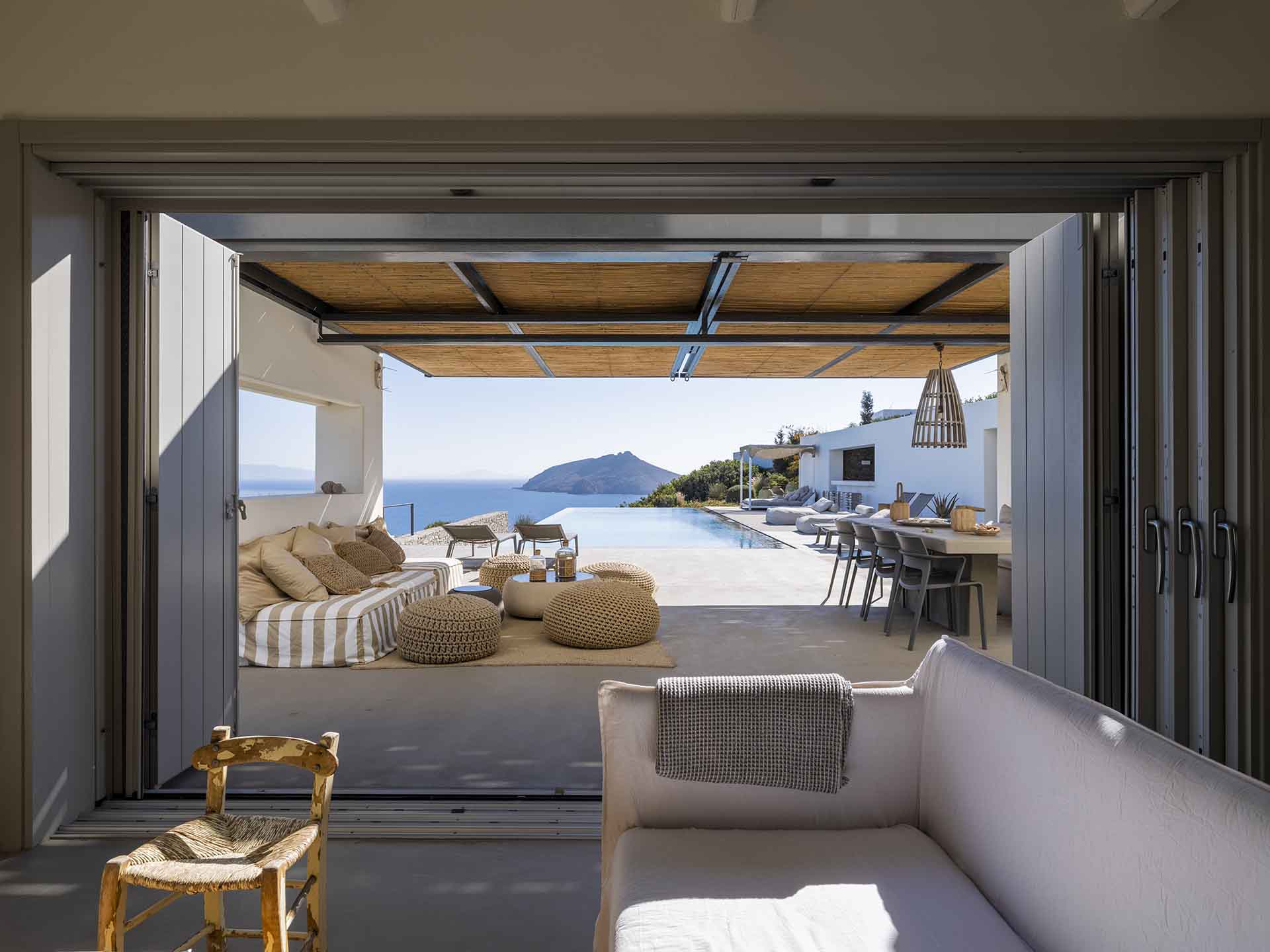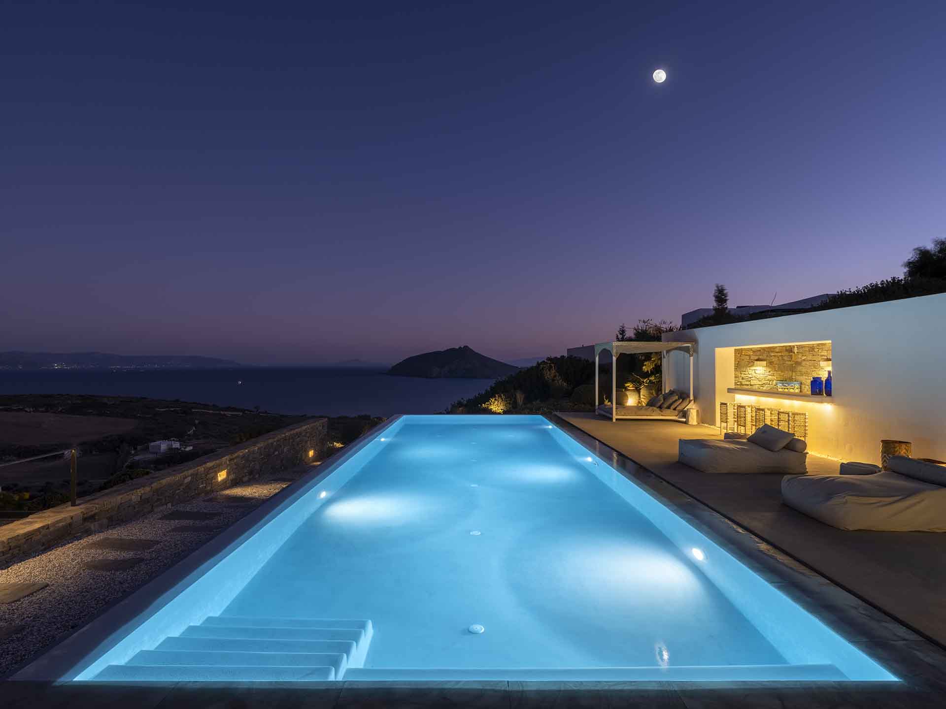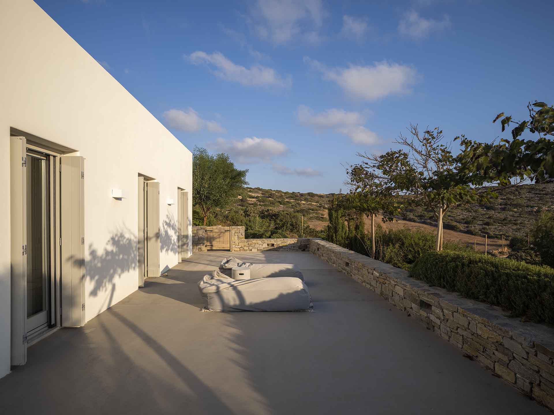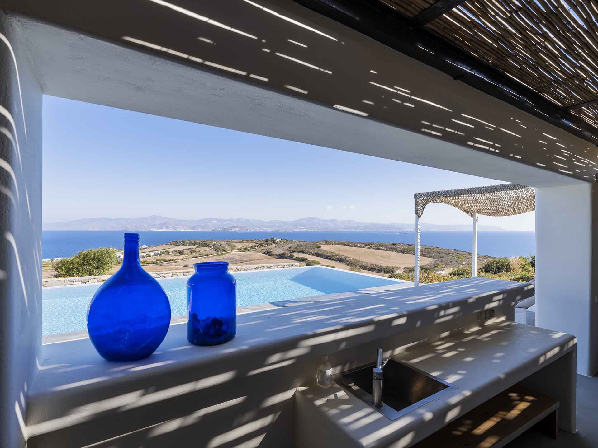 Inside, Villa Blue Haze captivates with its airy, light-filled interiors, where contemporary design meets Parian tradition. Thoughtfully integrated natural stone elements enhance the villa’s cool, insulated environment, creating a harmonious balance between luxury and nature.