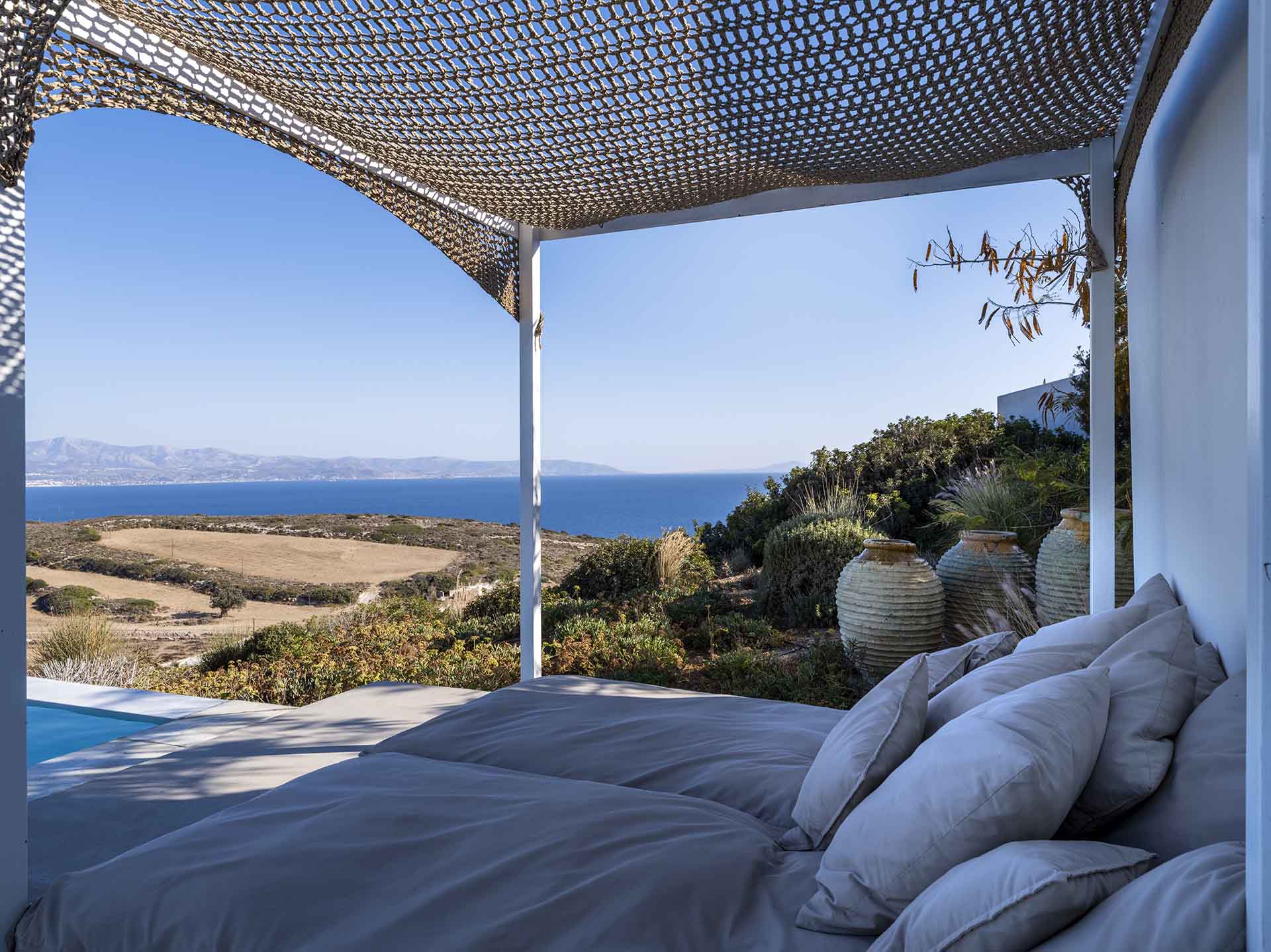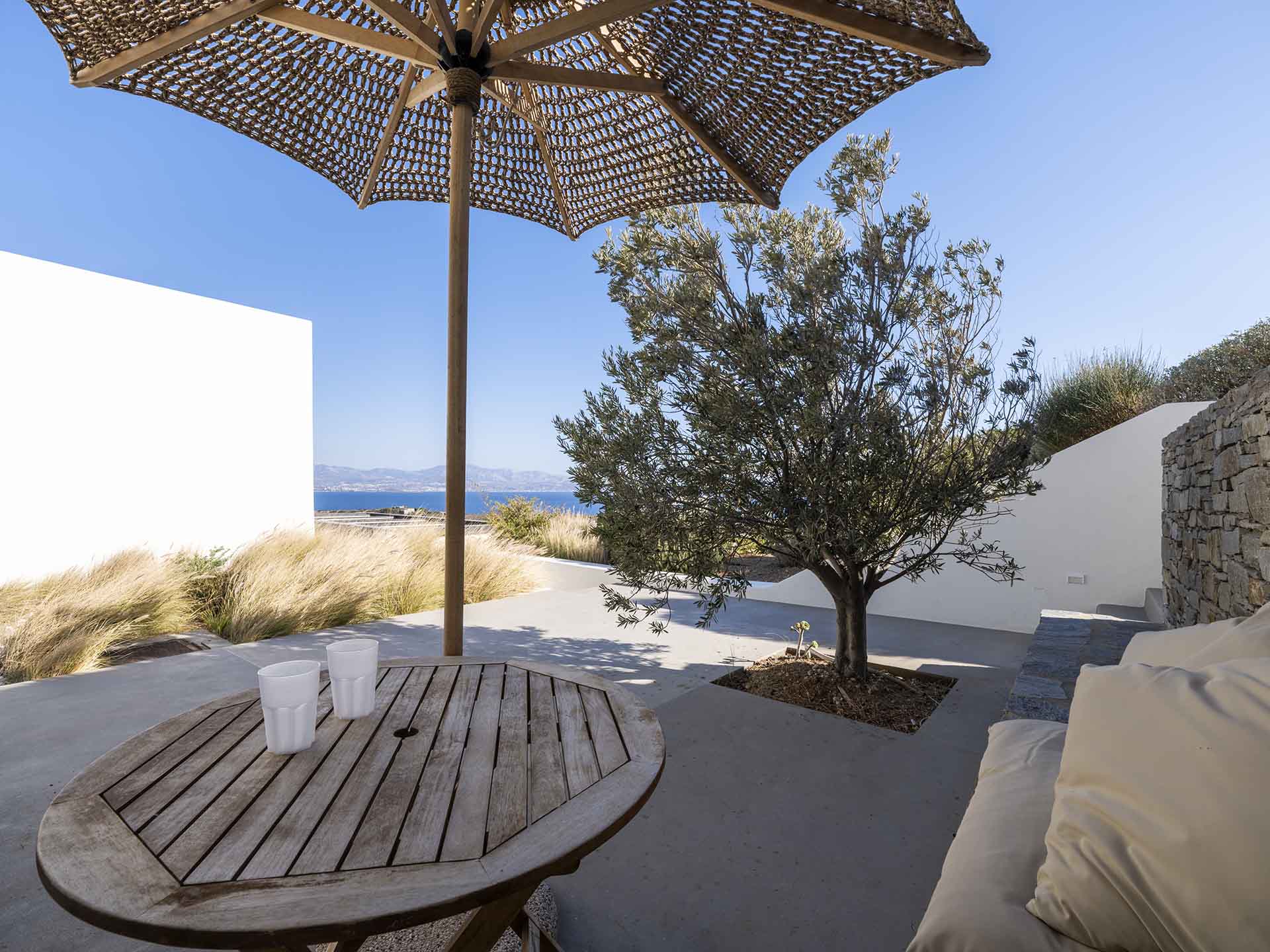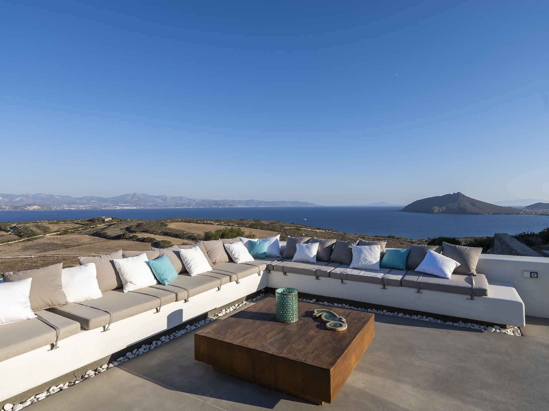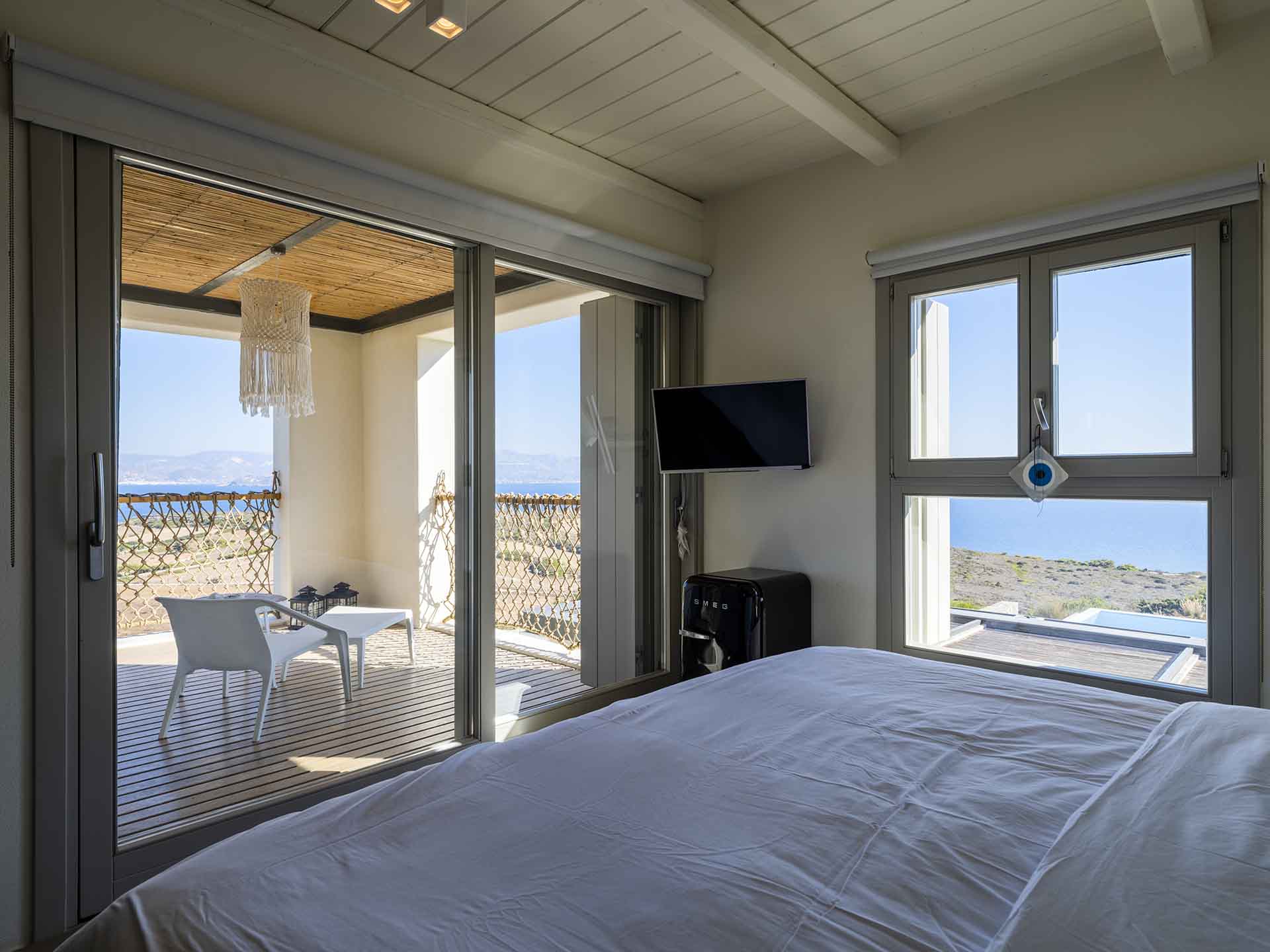 Inside, Villa Blue Haze captivates with its airy, light-filled interiors, where contemporary design meets Parian tradition. Thoughtfully integrated natural stone elements enhance the villa’s cool, insulated environment, creating a harmonious balance between luxury and nature.