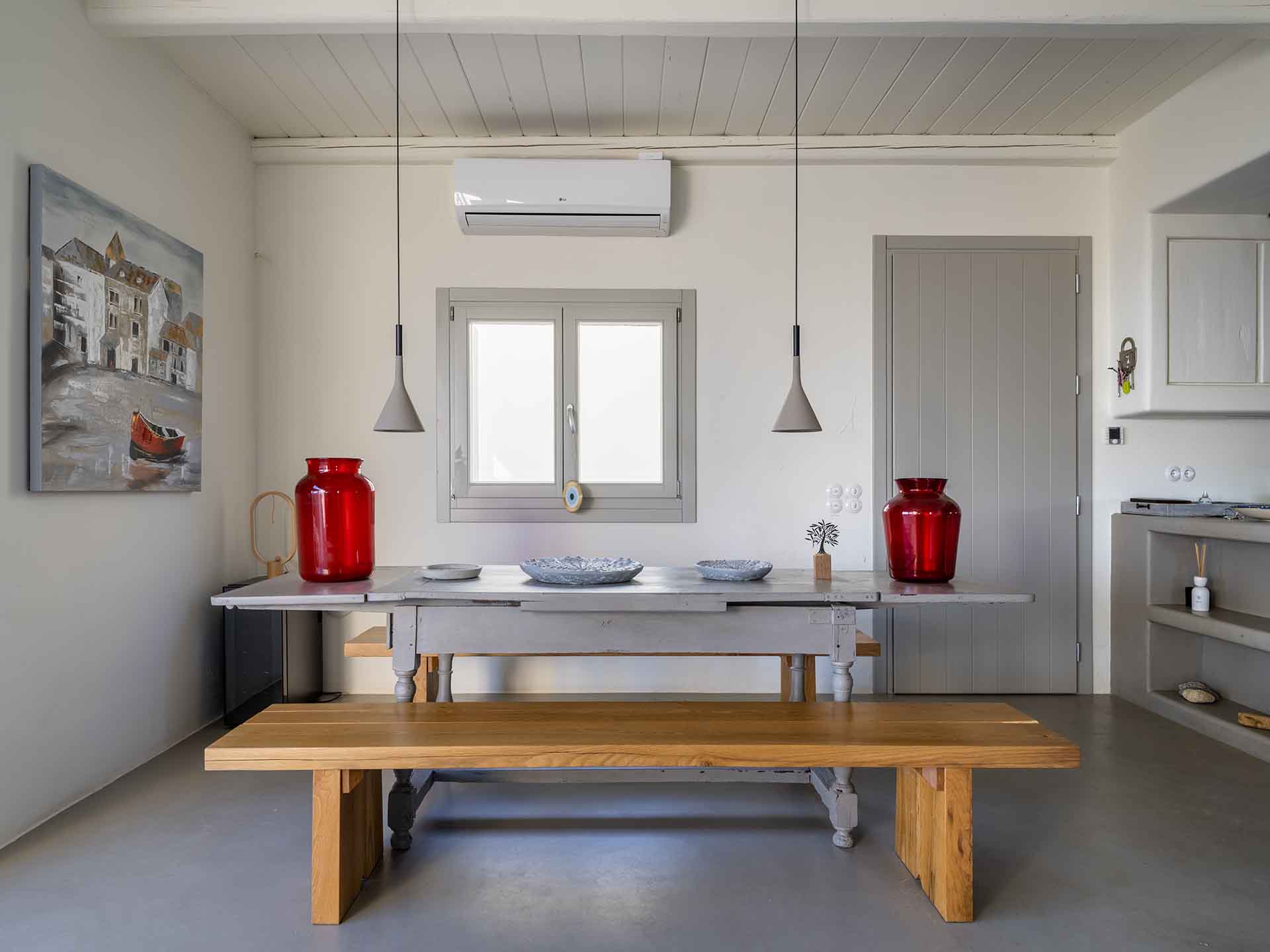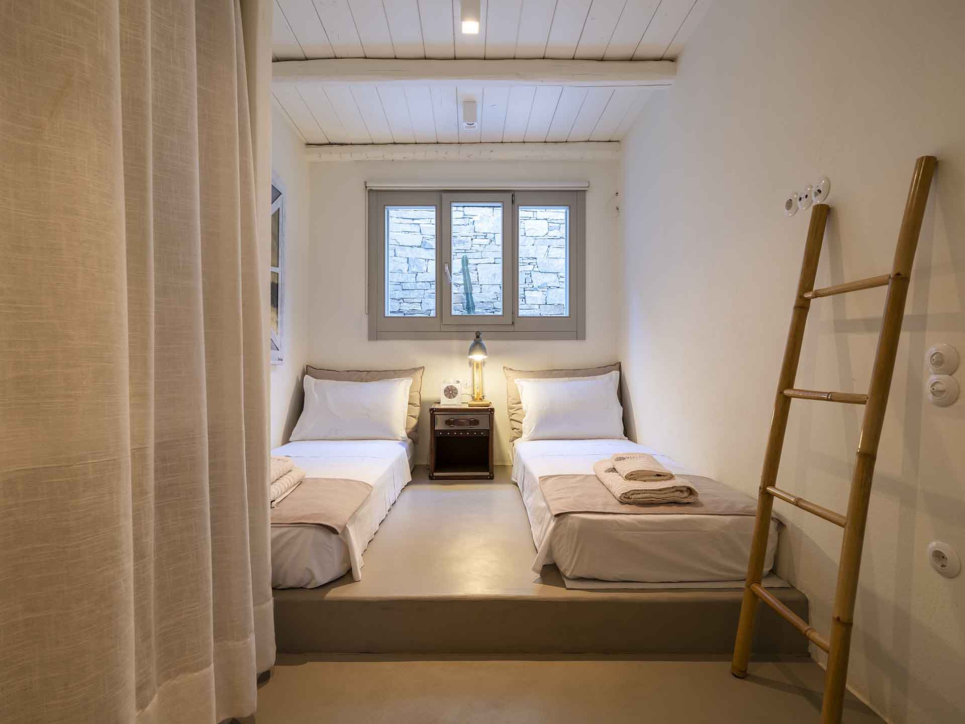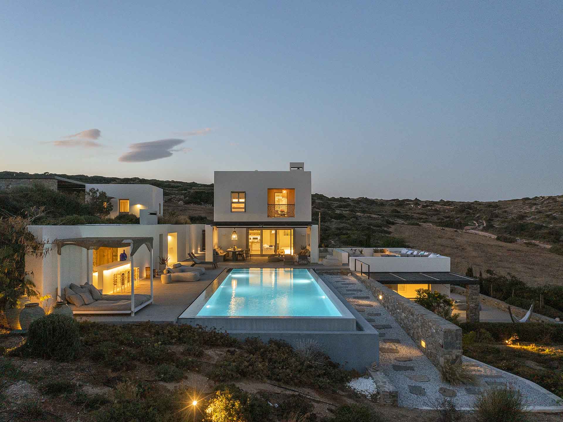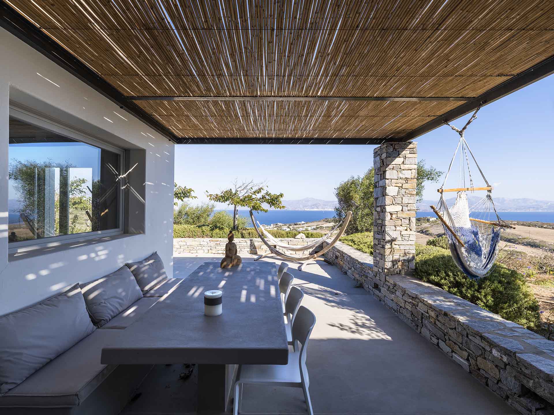 Inside, Villa Blue Haze captivates with its airy, light-filled interiors, where contemporary design meets Parian tradition. Thoughtfully integrated natural stone elements enhance the villa’s cool, insulated environment, creating a harmonious balance between luxury and nature.