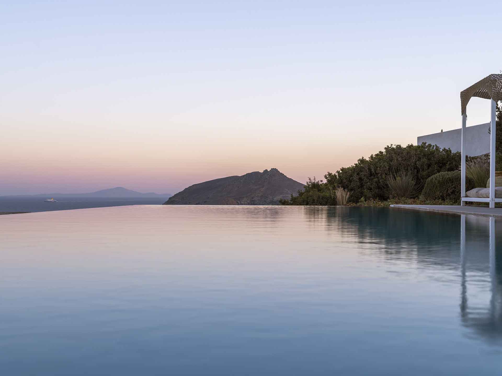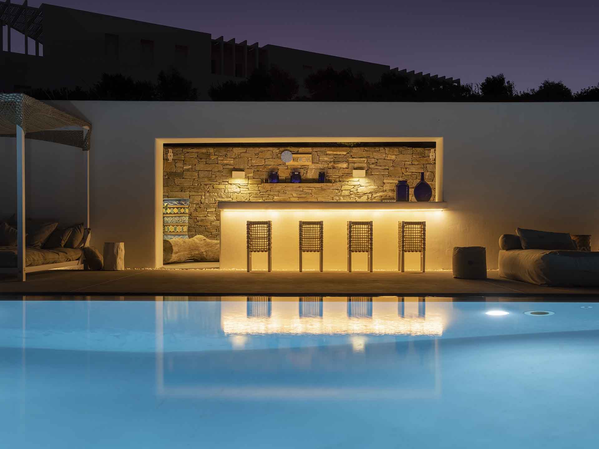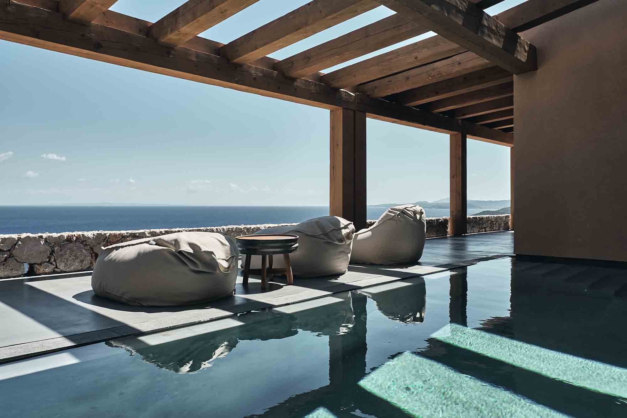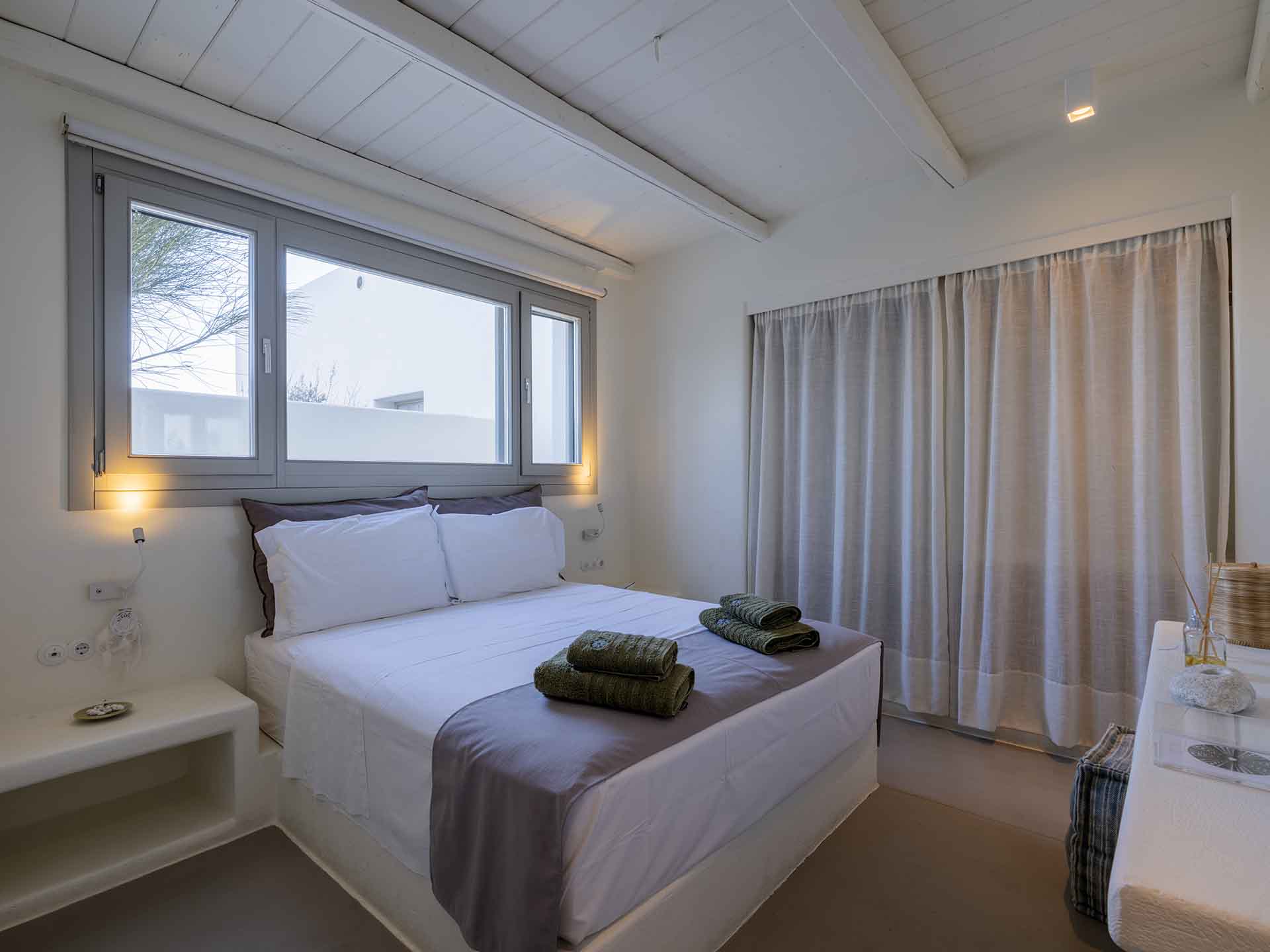 Inside, Villa Blue Haze captivates with its airy, light-filled interiors, where contemporary design meets Parian tradition. Thoughtfully integrated natural stone elements enhance the villa’s cool, insulated environment, creating a harmonious balance between luxury and nature.