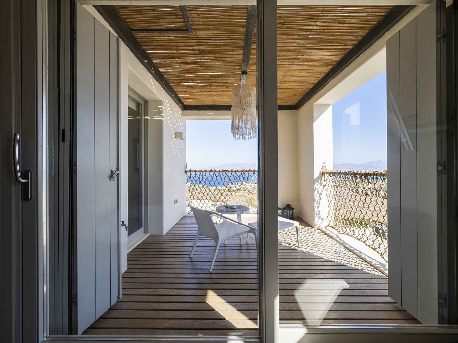- Double bedroom (built-in double bed, A/C, terrace access, sea view)
