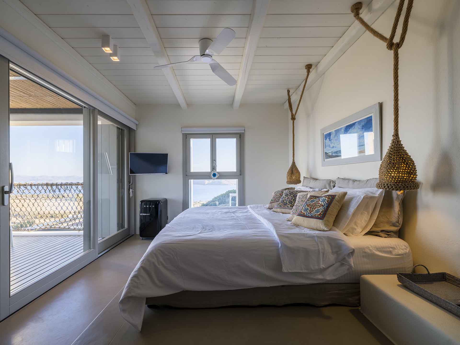 - 1 Double Bedroom, King size bed, en-suite bathroom, A/C, TV, walk-in closet, office, mini fridge, ceiling fan, wooden deck terrace, sea view