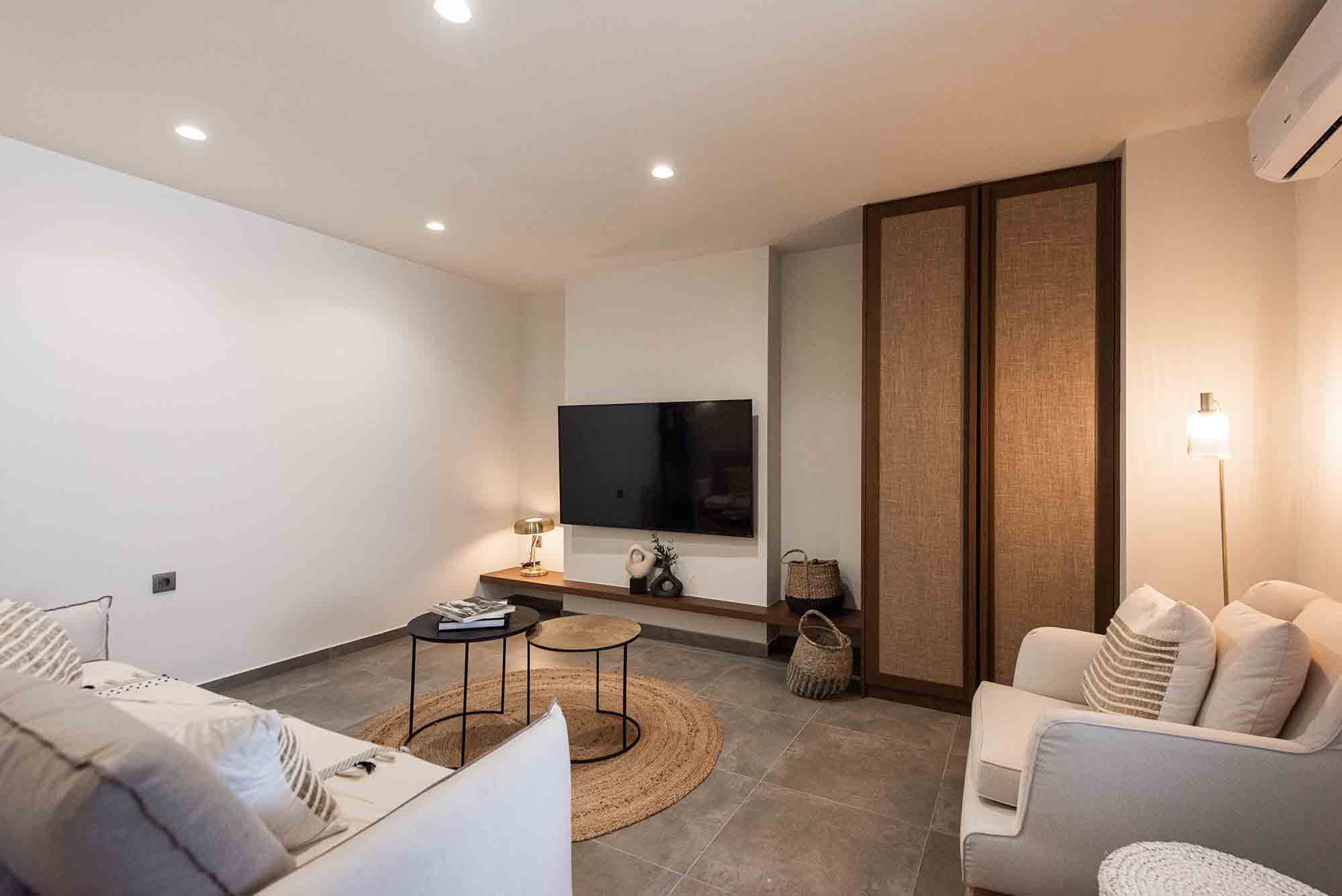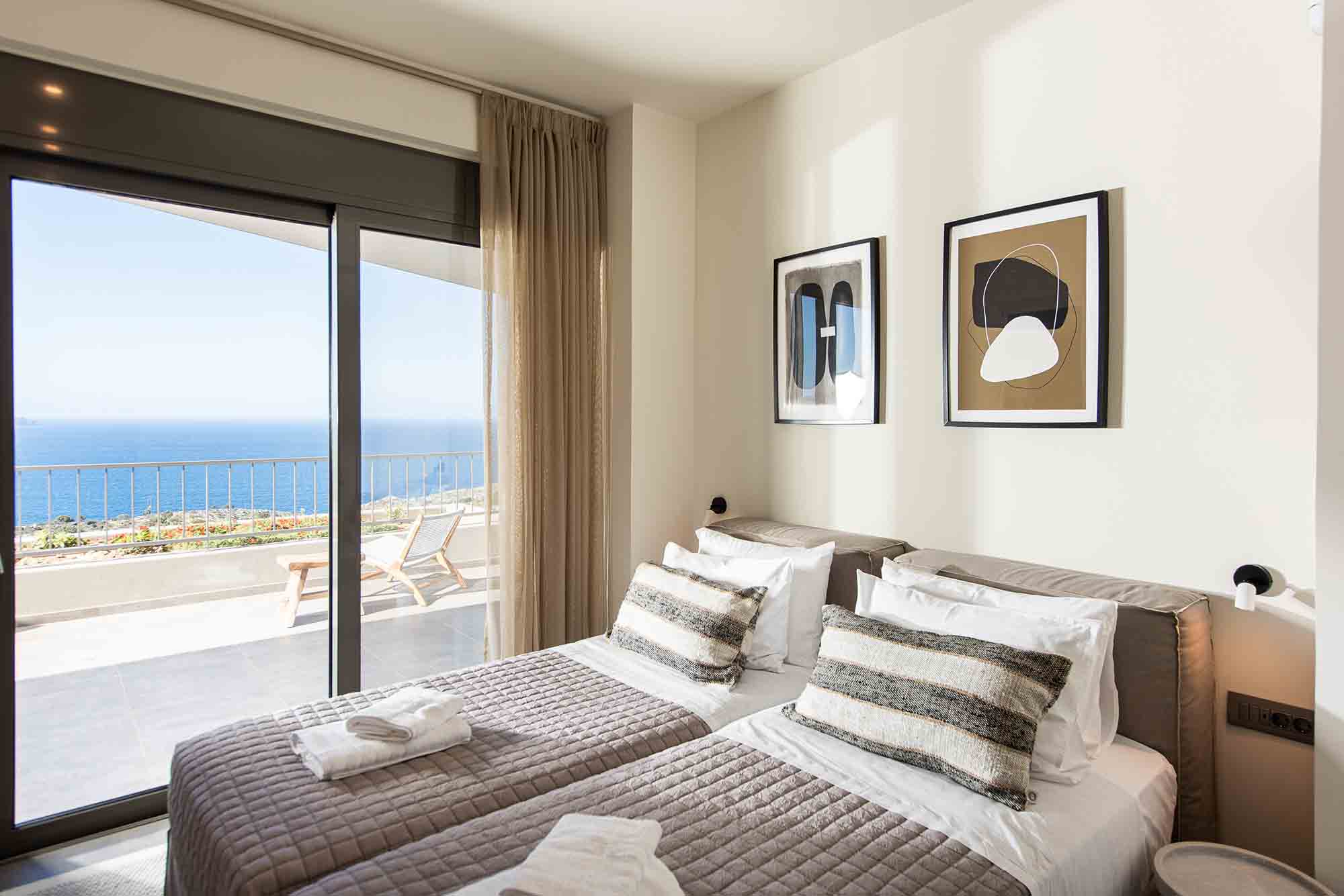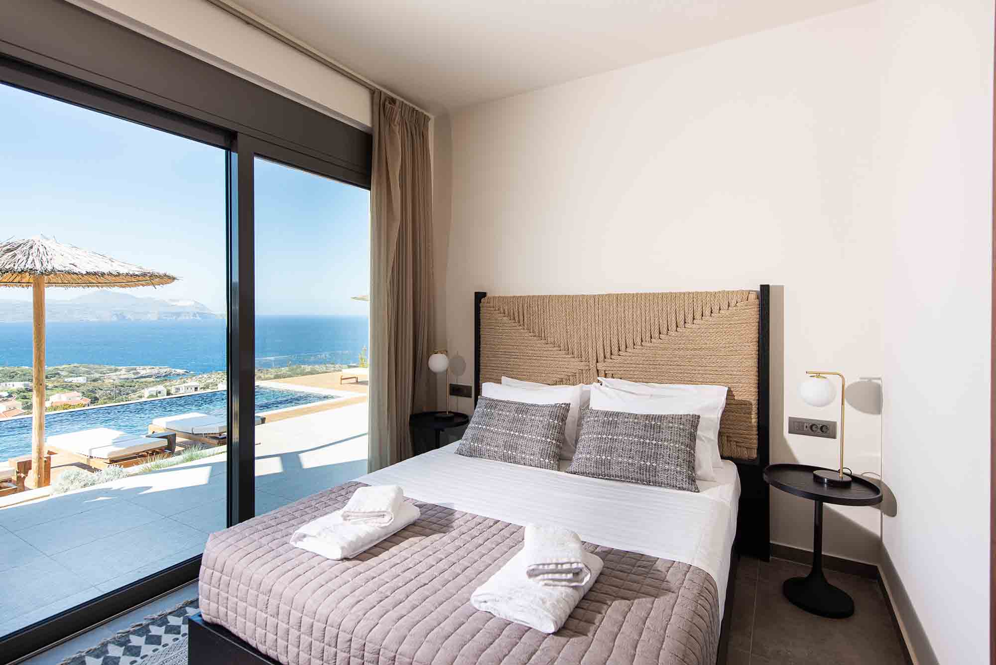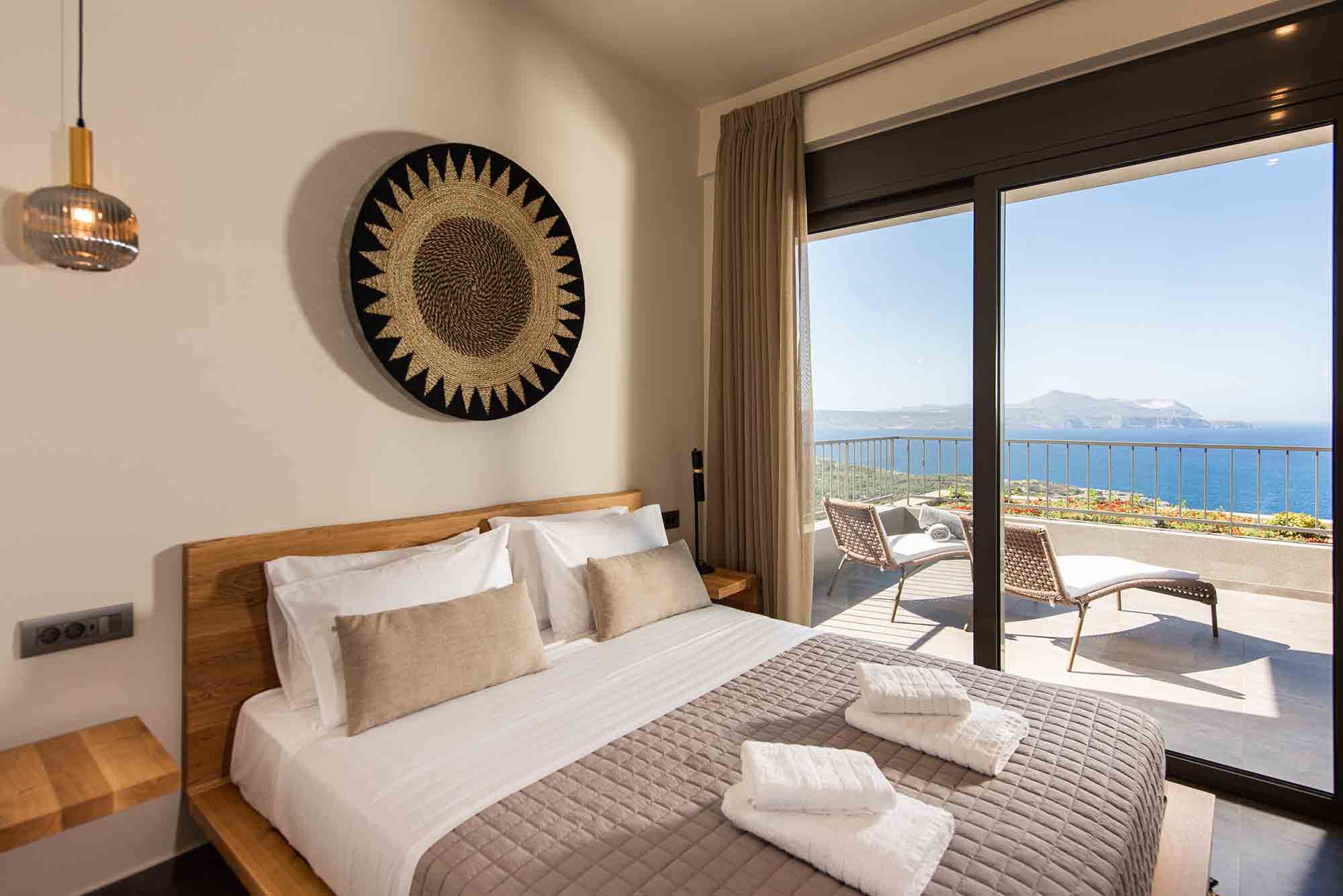 Perched high up but just 800 meters from the Cretan coast, it is located in a beautiful area, full of sleepy traditional Greek villages, and just a few minutes away from lovely sandy beaches and hidden coves.