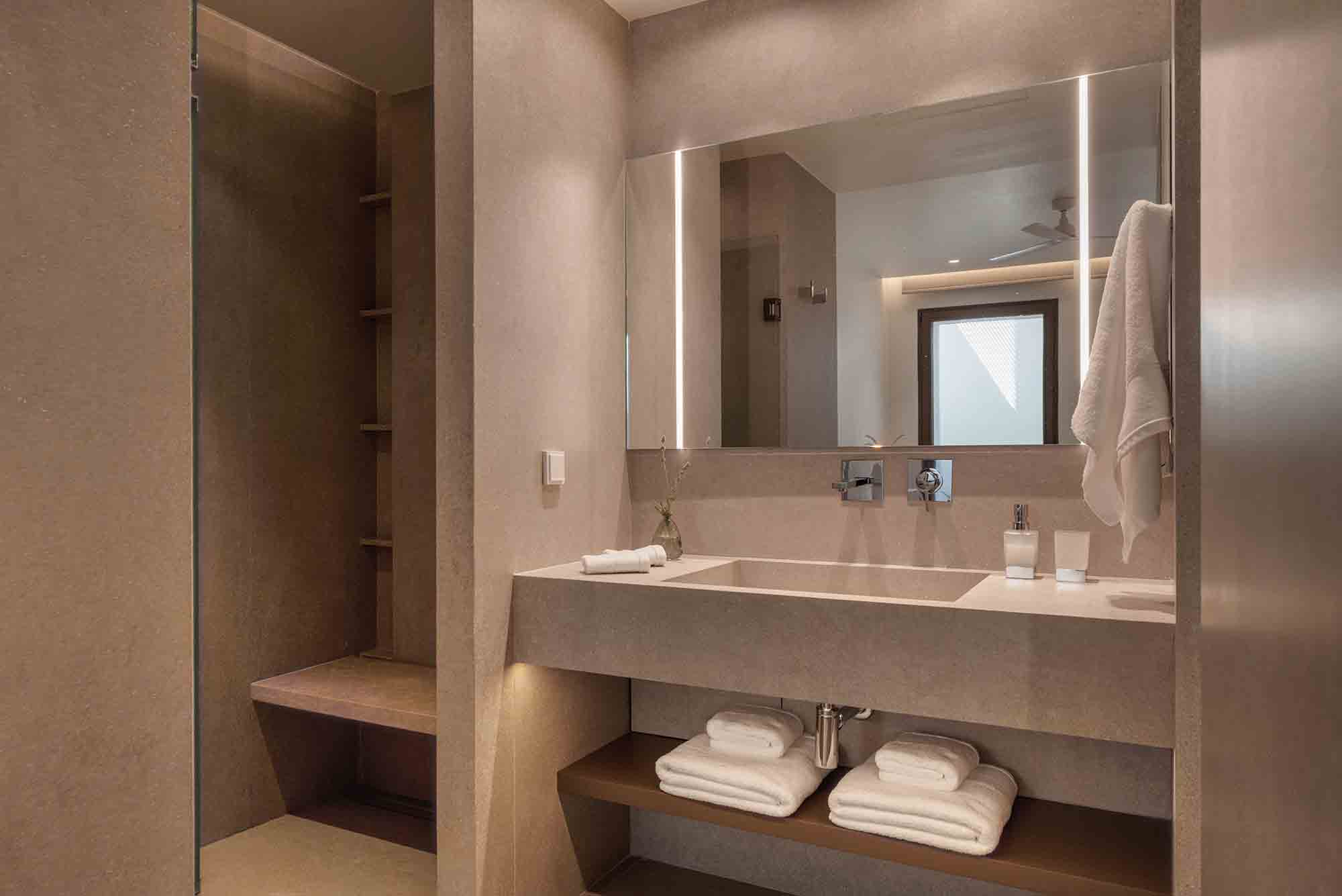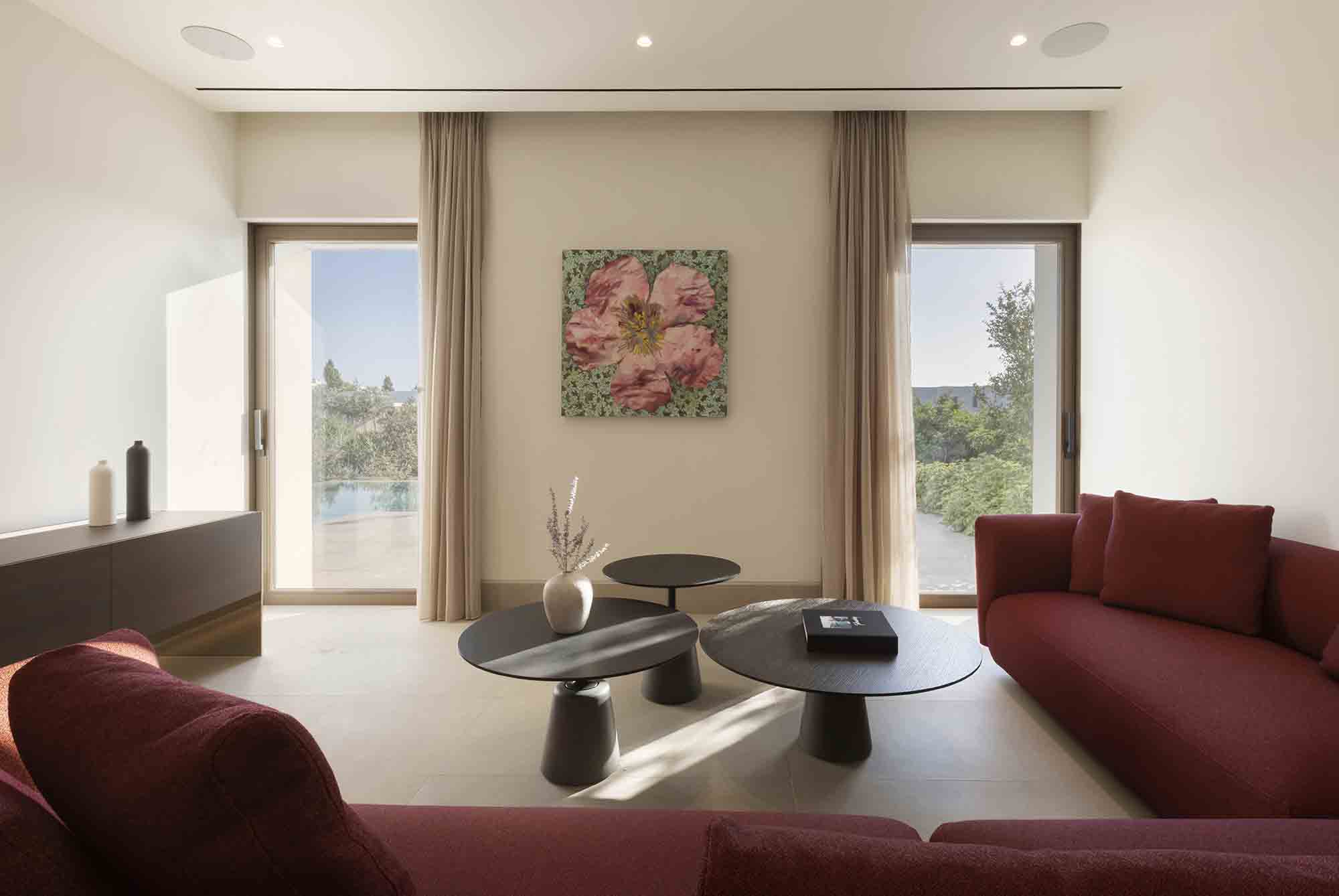 Villa Frances J is a refined exceptionally spacious villa designed for comfort and style. With two elegant bedrooms and three bathrooms, it can accommodate up to four guests in complete privacy.