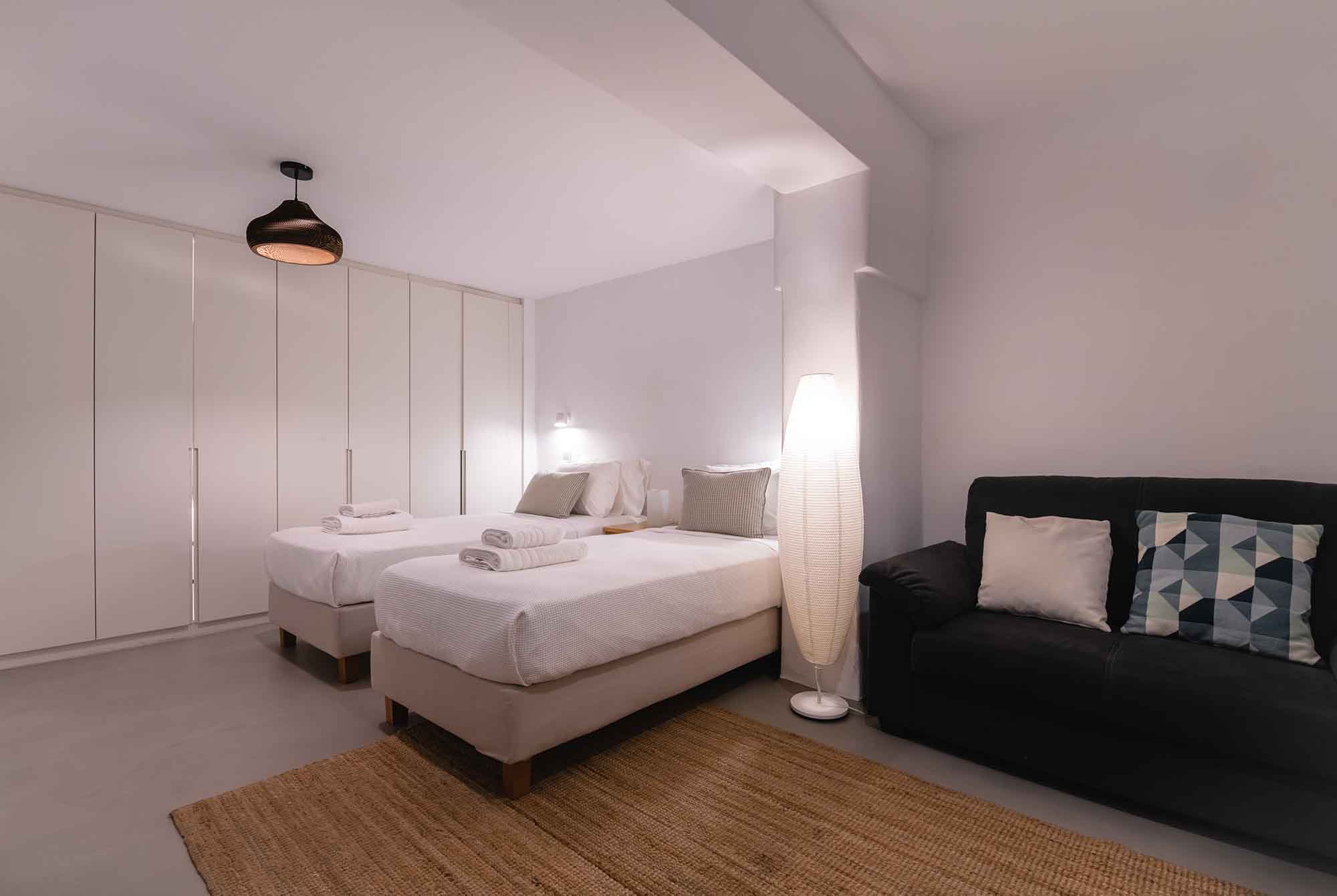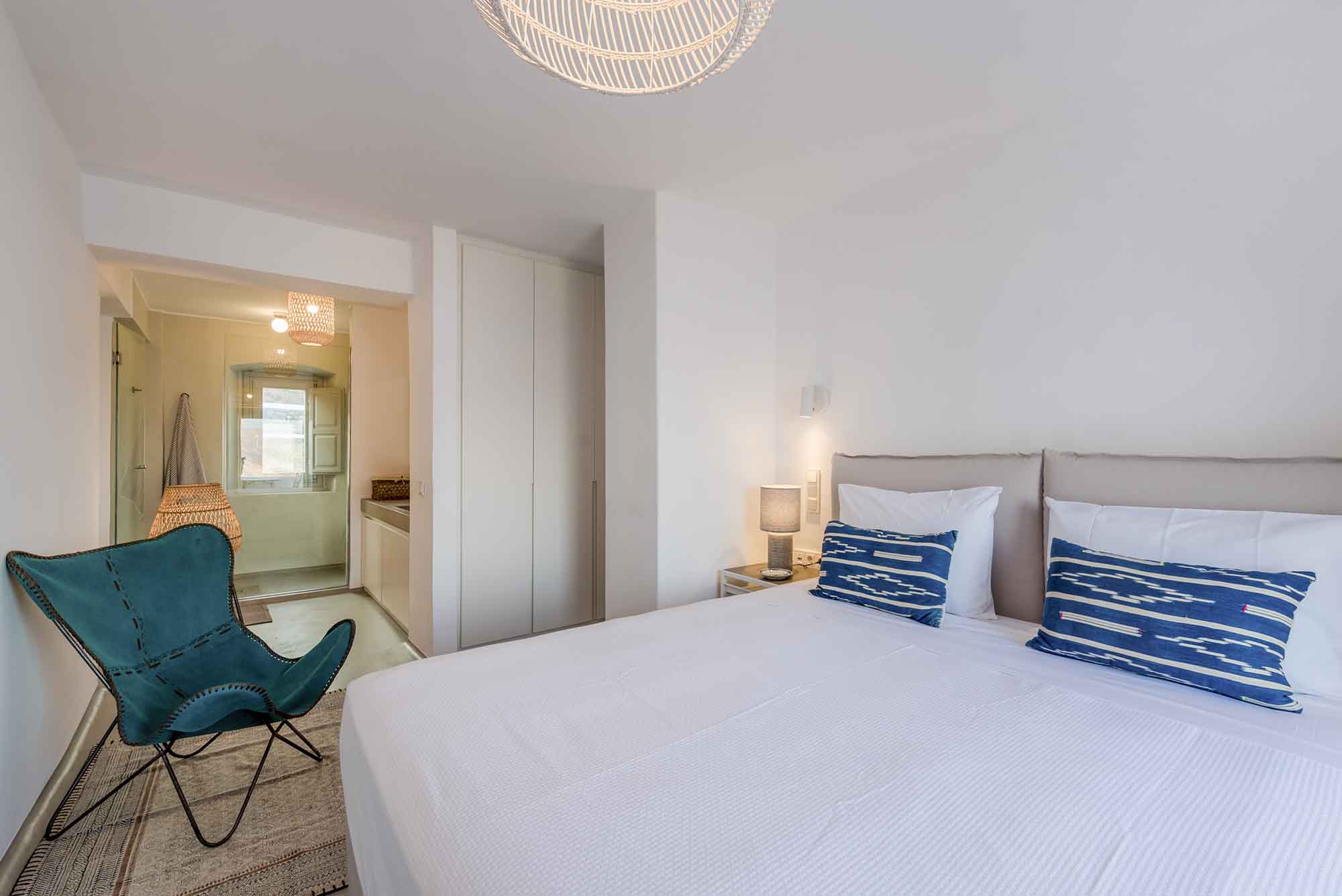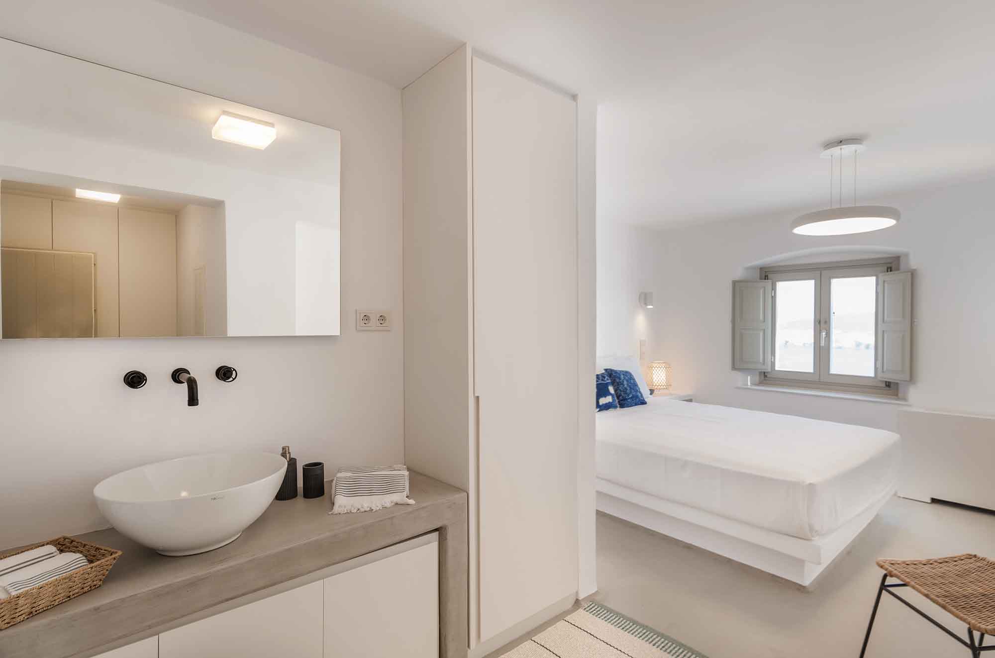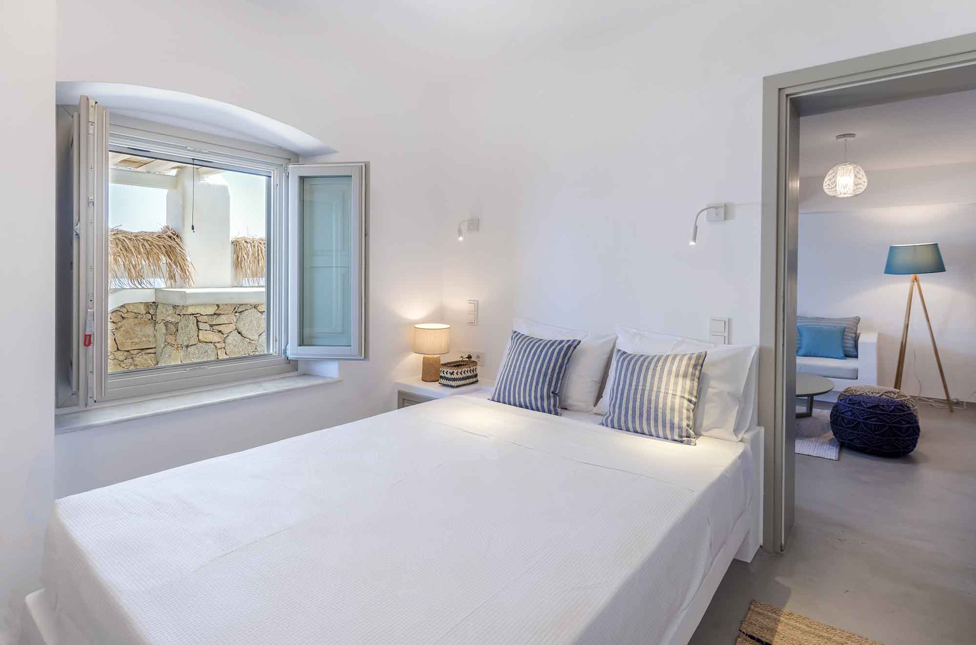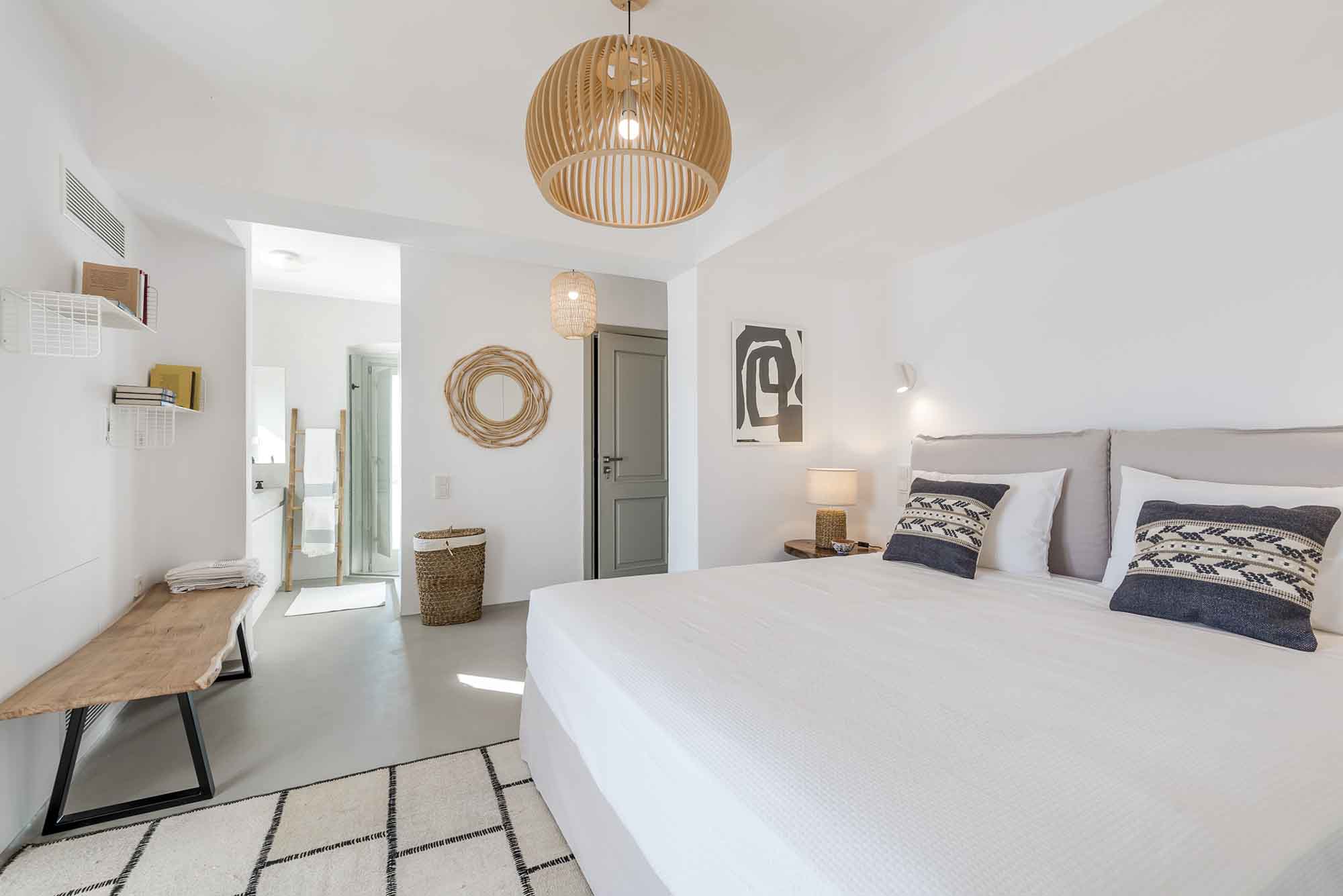 Villa Goldie unfolds in 435 sq.m and extends on a plot of 4,000 sq.m offering spaces to relax in privacy yet to gather to enjoy the sunset and drinks by the pool area. It has been fully renovated in 2019 and consisted of 3 levels, providing in total six double bedrooms to accommodate 12 guests. The interior is designed to find natural light in all spaces while white colour prevails in most furniture and fabrics. The natural ambience plays harmoniously with elements of light wood to create a home away from home feelings throughout all the living spaces. Same pattern prevails in all bedrooms and bathrooms which have been designed to offer all modern amenities and features. Yet the best highlight is the sea views and the uninterrupted gaze of the clear horizon.