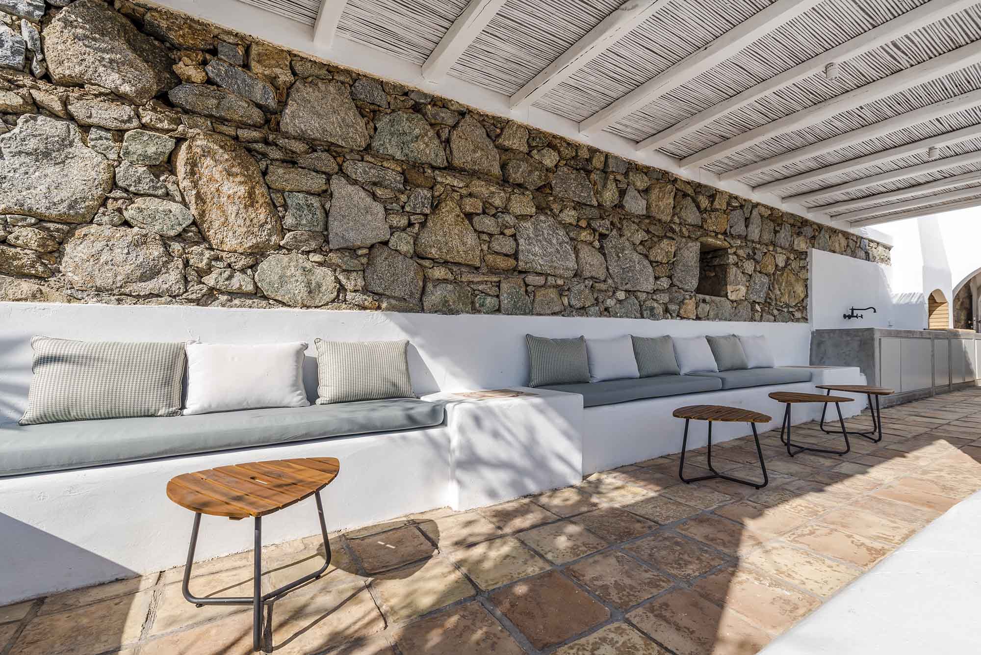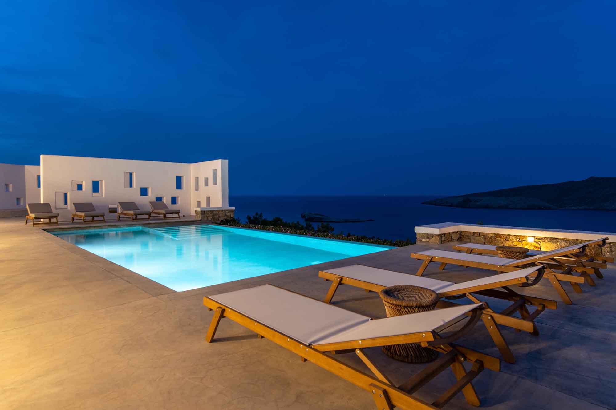 The outdoor area embracing the pool is exceptionally styled to offer a luxurious and comfortable outdoor living so the guests can enjoy the views and the unique location. Comfortable yet stylish furniture, ideal for all gatherings and moments.