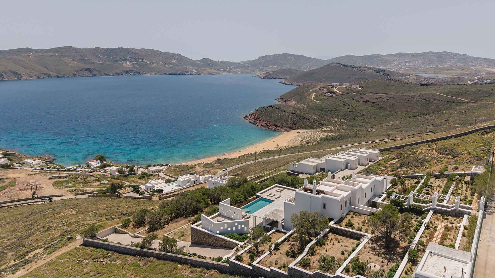 Villa Goldie is situated on a small hillside just above the blonde unorganized yet popular Agios Sostis beach, a truly privileged location which provides the ultimate Mykonian experience the old school. It offers its guests an unobstructed sea view of Panormos bay and Agios Sostis beach and within a 2-minute drive they can enjoy the crystal-clear waters of the beach. Villa Goldie is ideal for families and group of friends looking to immerse into the bohemian glamour of Mykonos island away from “noise” yet close to everything.