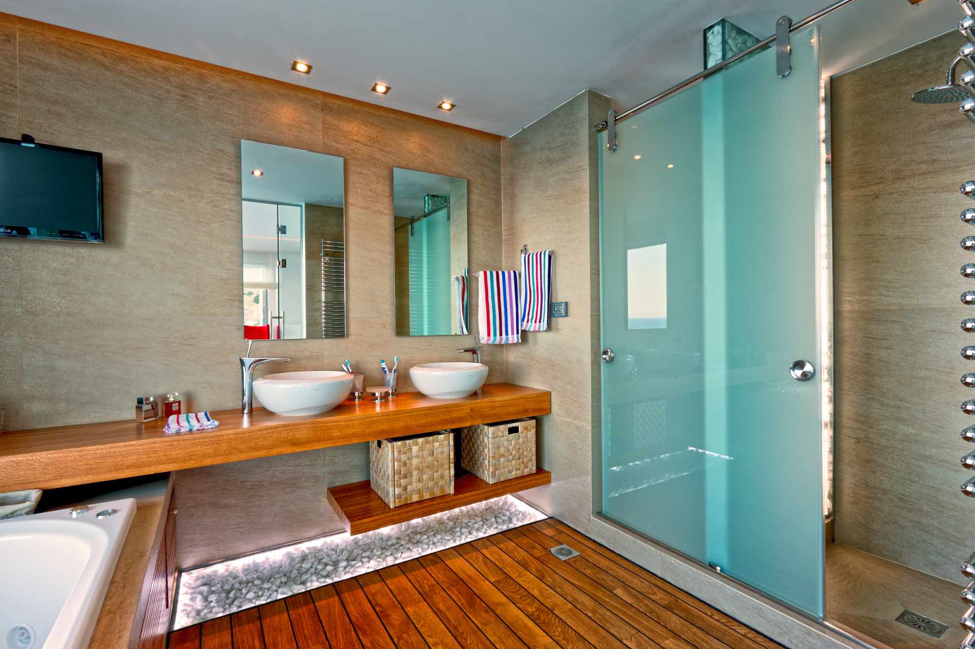 This is the ideal villa to relax and unwind, while for those looking to stay fit during their vacation there is a gym, sauna, hammam, changing rooms, two separate showers, and an elegant bathroom.