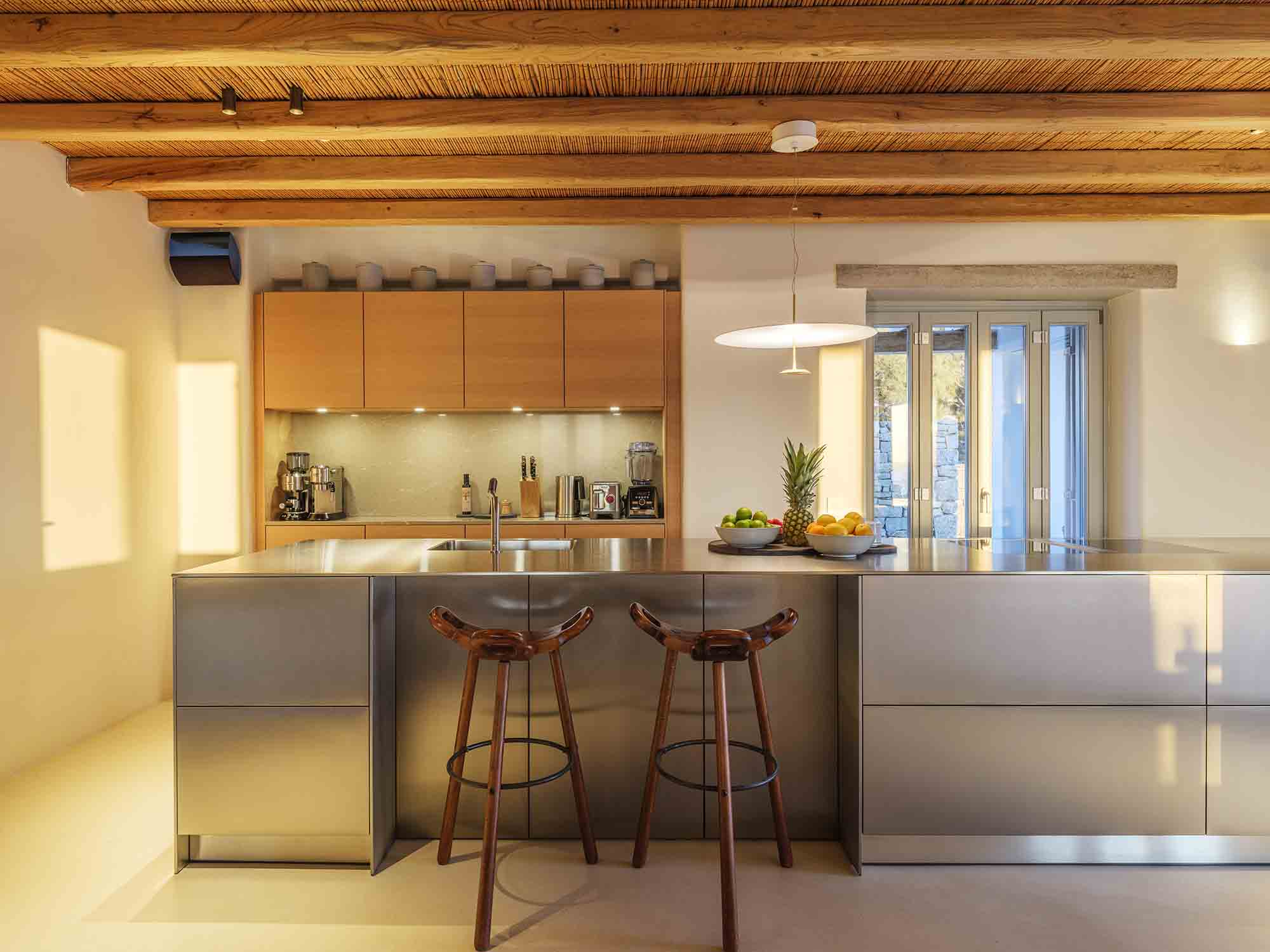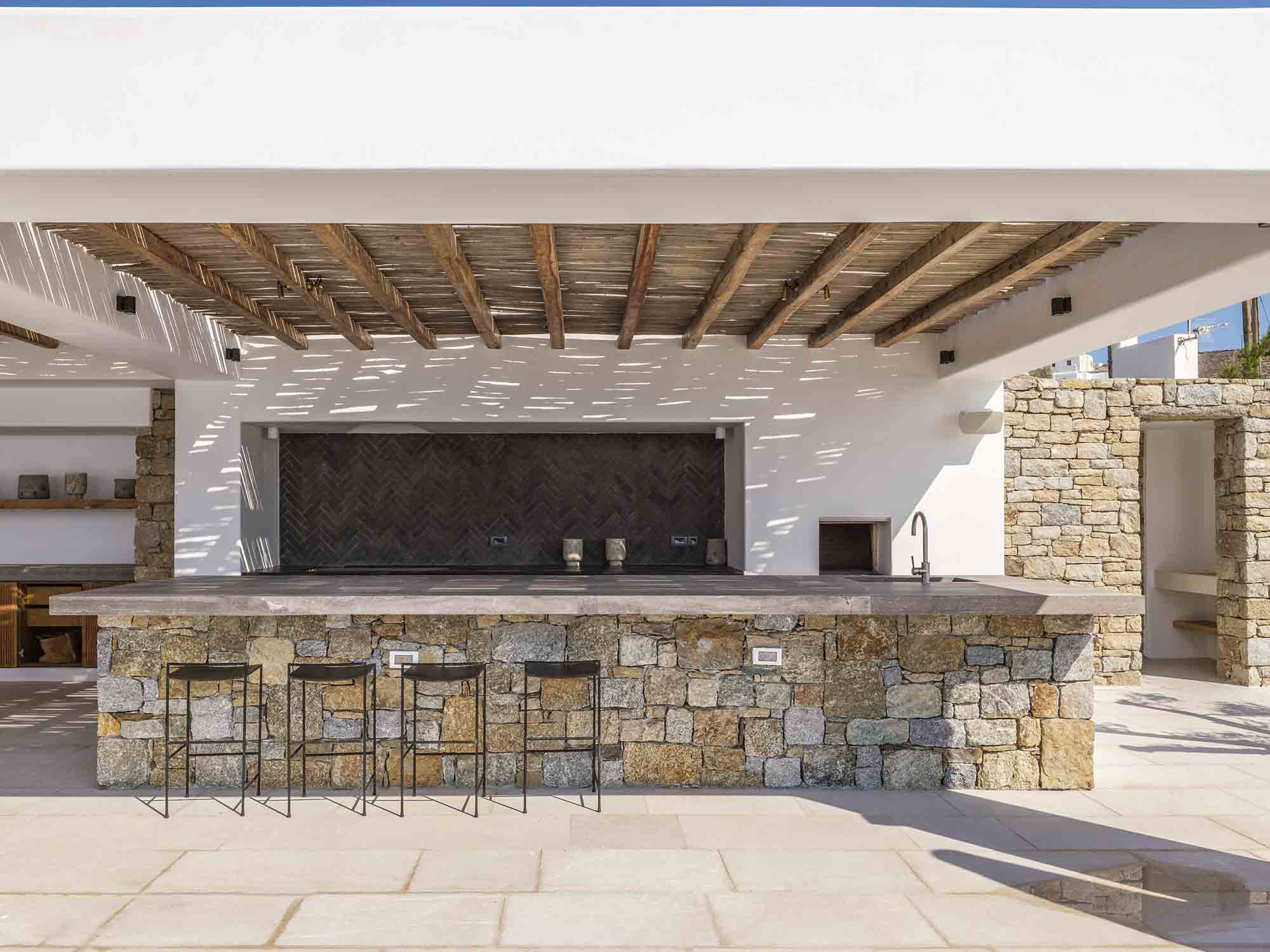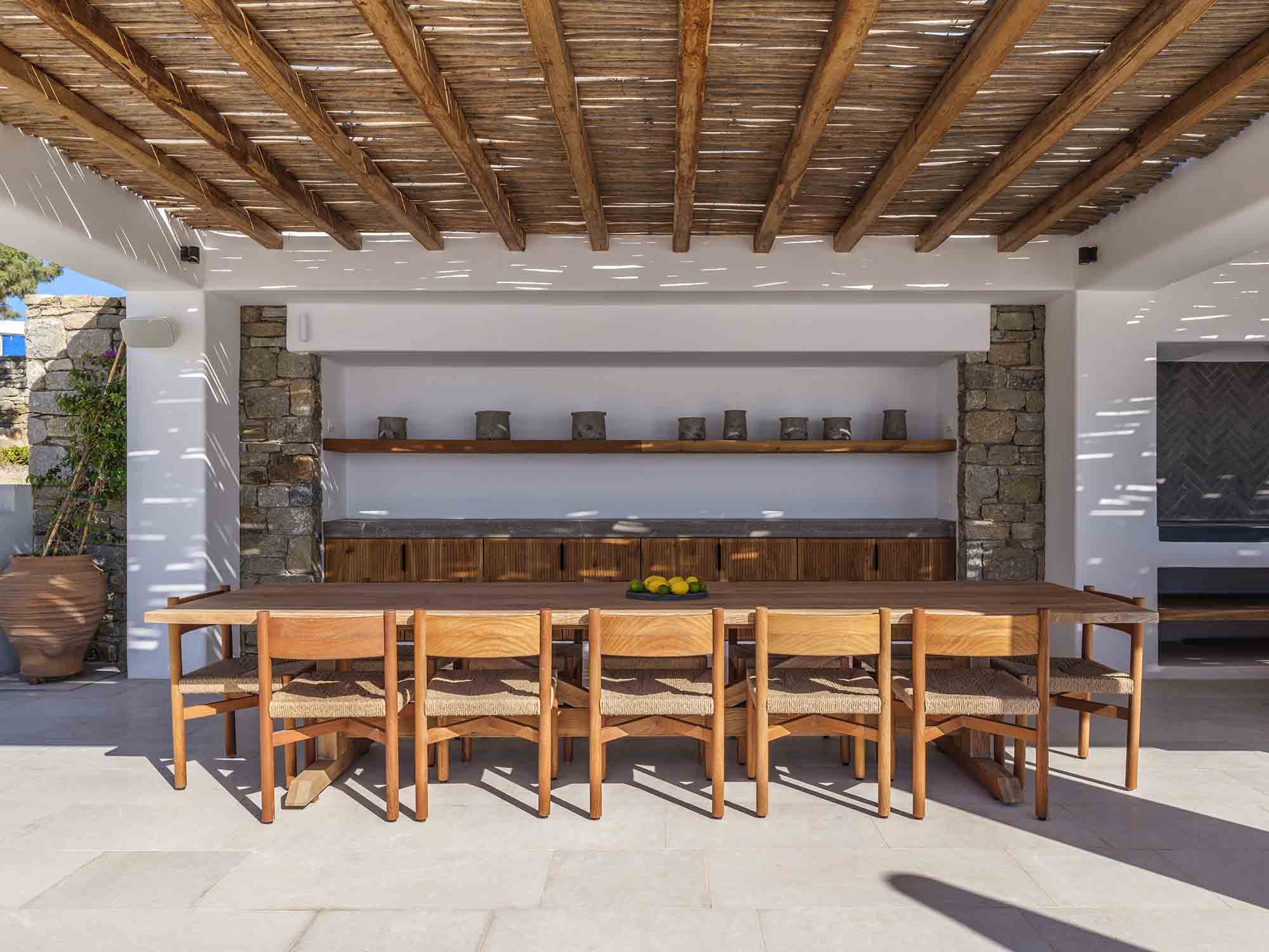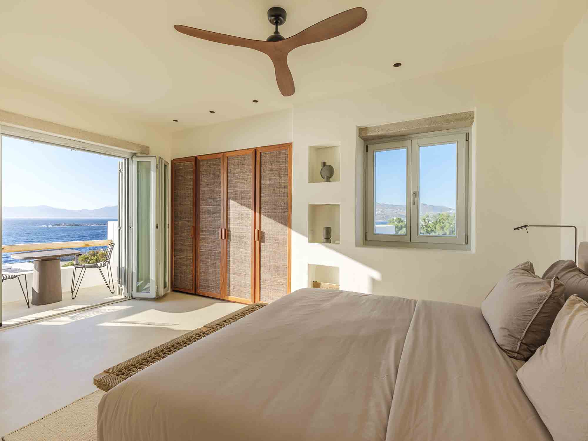 As the sun sets, the villa becomes a haven of color and serenity—ideal for poolside unwinding or elegant alfresco dining against the dramatic backdrop of the Aegean Sea. Villa Iocasti seamlessly blends authentic Greek heritage with understated luxury, creating an experience that transcends beyond spaces.