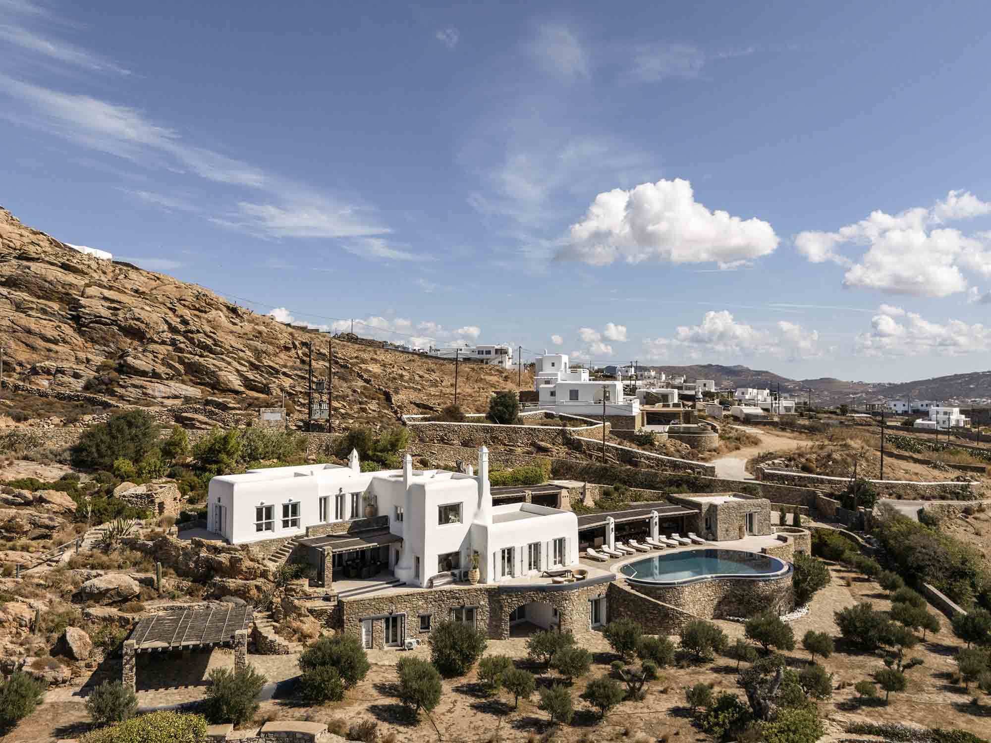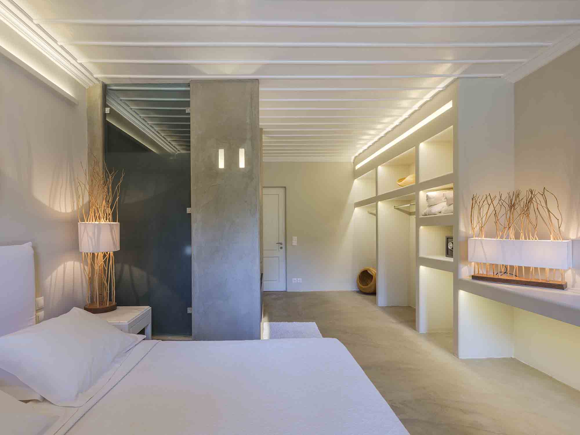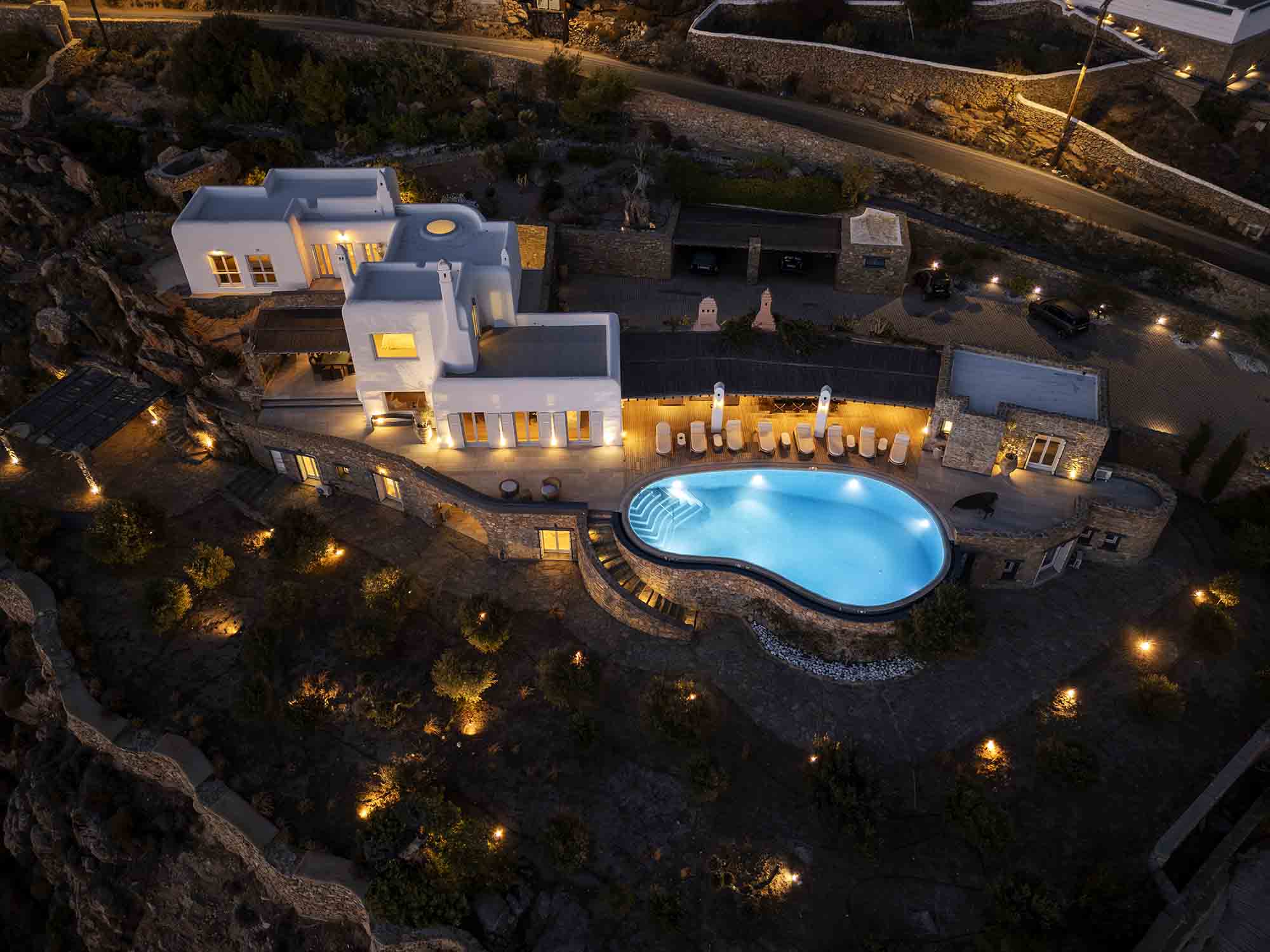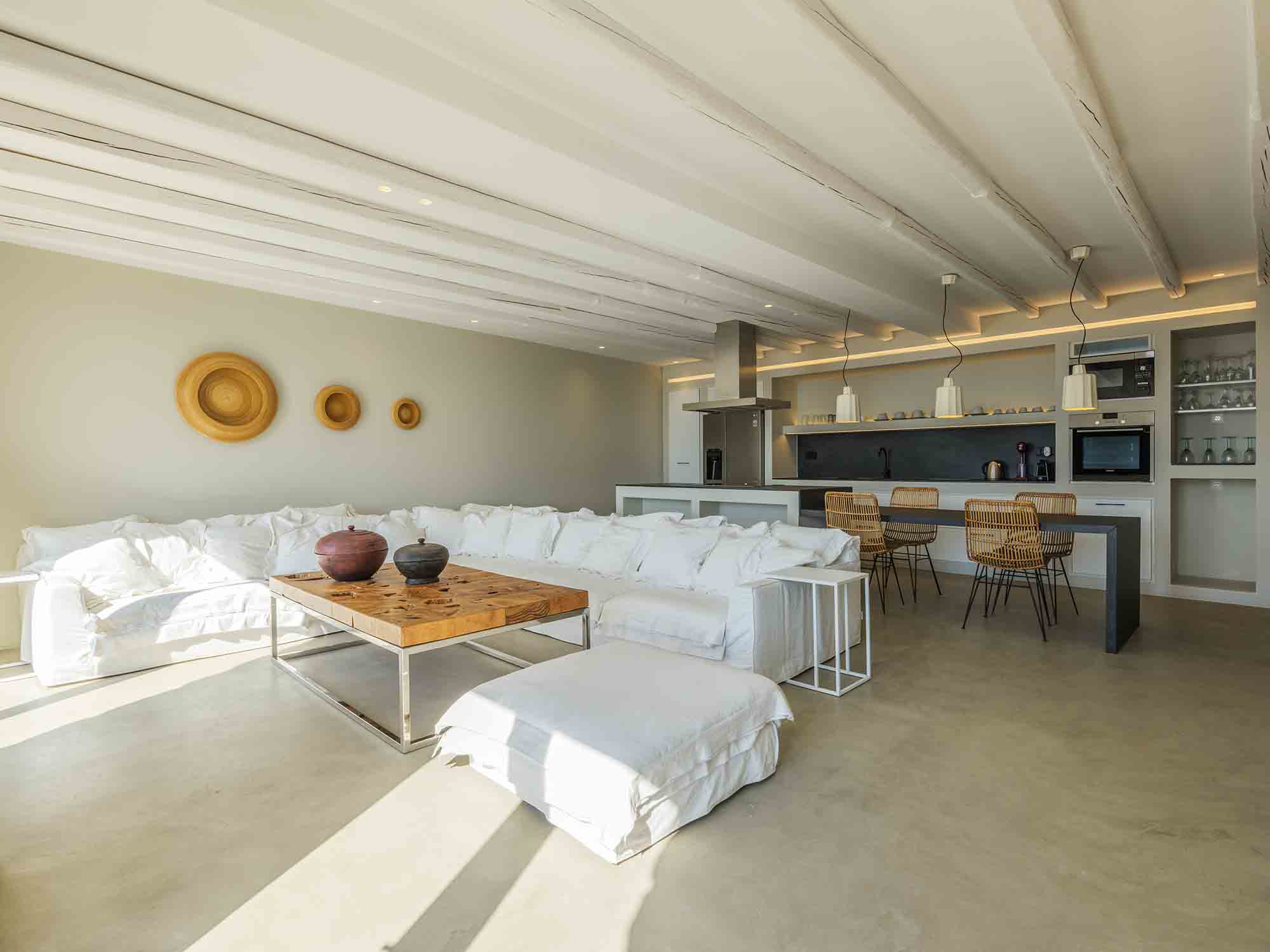 The decoration and the style of the interior is carefully cared with fine materials and elegant lines. Cycladic architecture style finds a fascinating expression in this luxurious property, with whitewashed areas retaining the minimal flair, so that the overall design details to be displayed at the most.