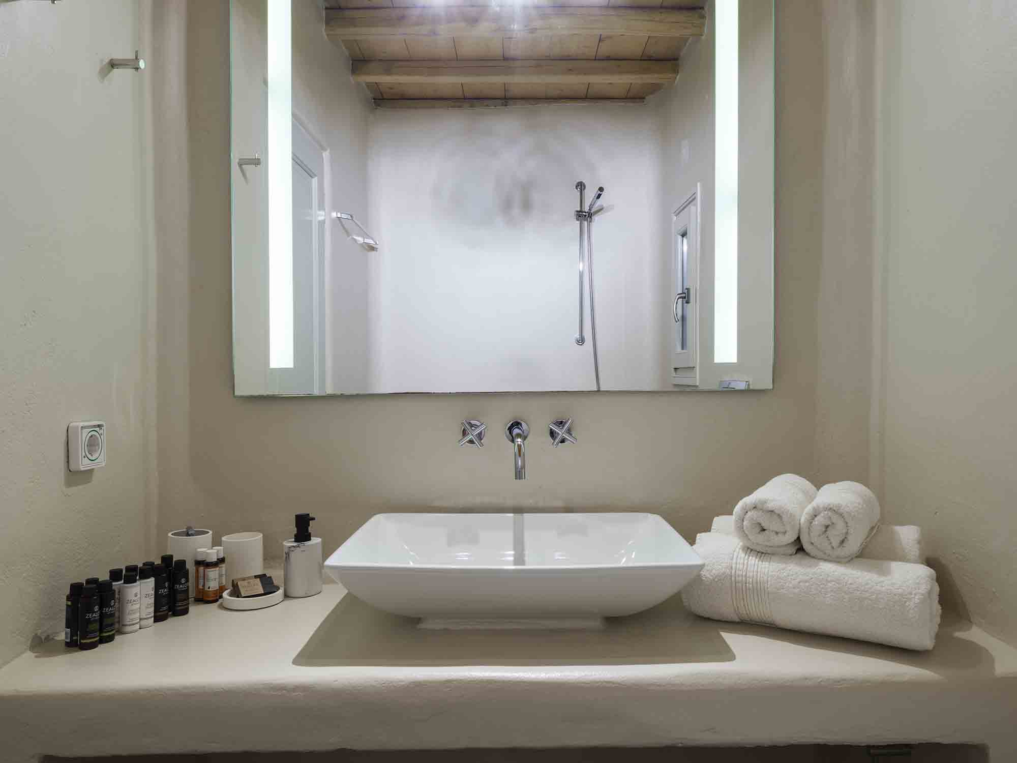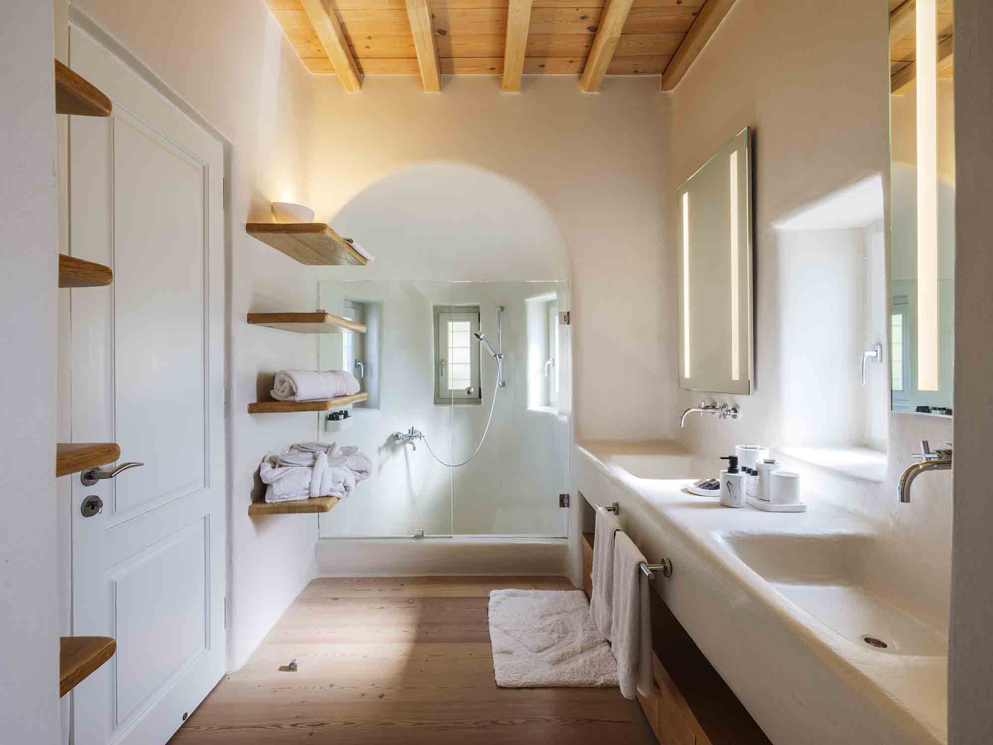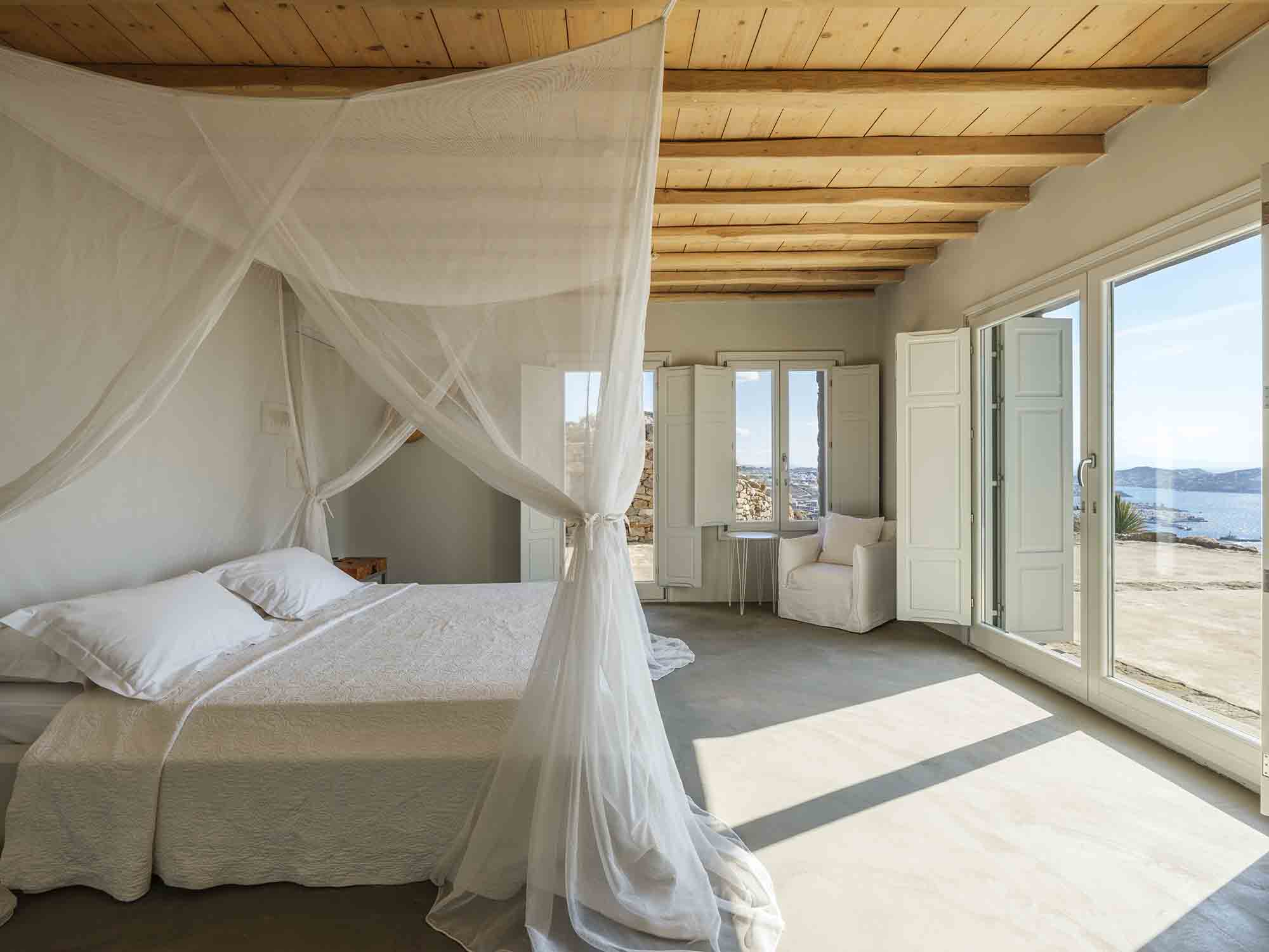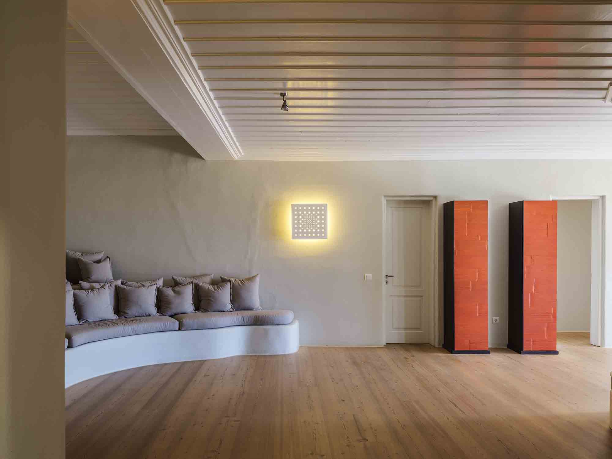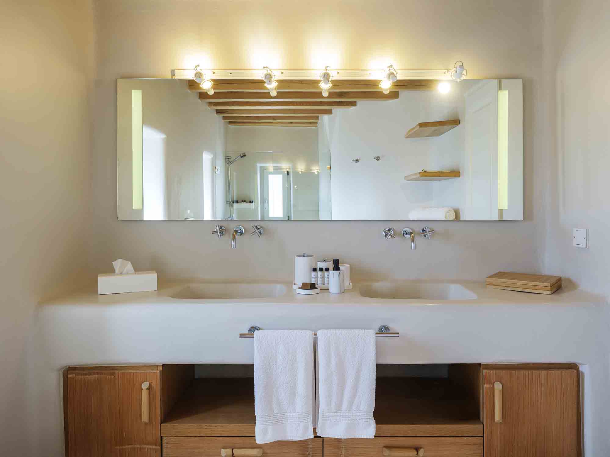 The decoration and the style of the interior is carefully cared with fine materials and elegant lines. Cycladic architecture style finds a fascinating expression in this luxurious property, with whitewashed areas retaining the minimal flair, so that the overall design details to be displayed at the most.