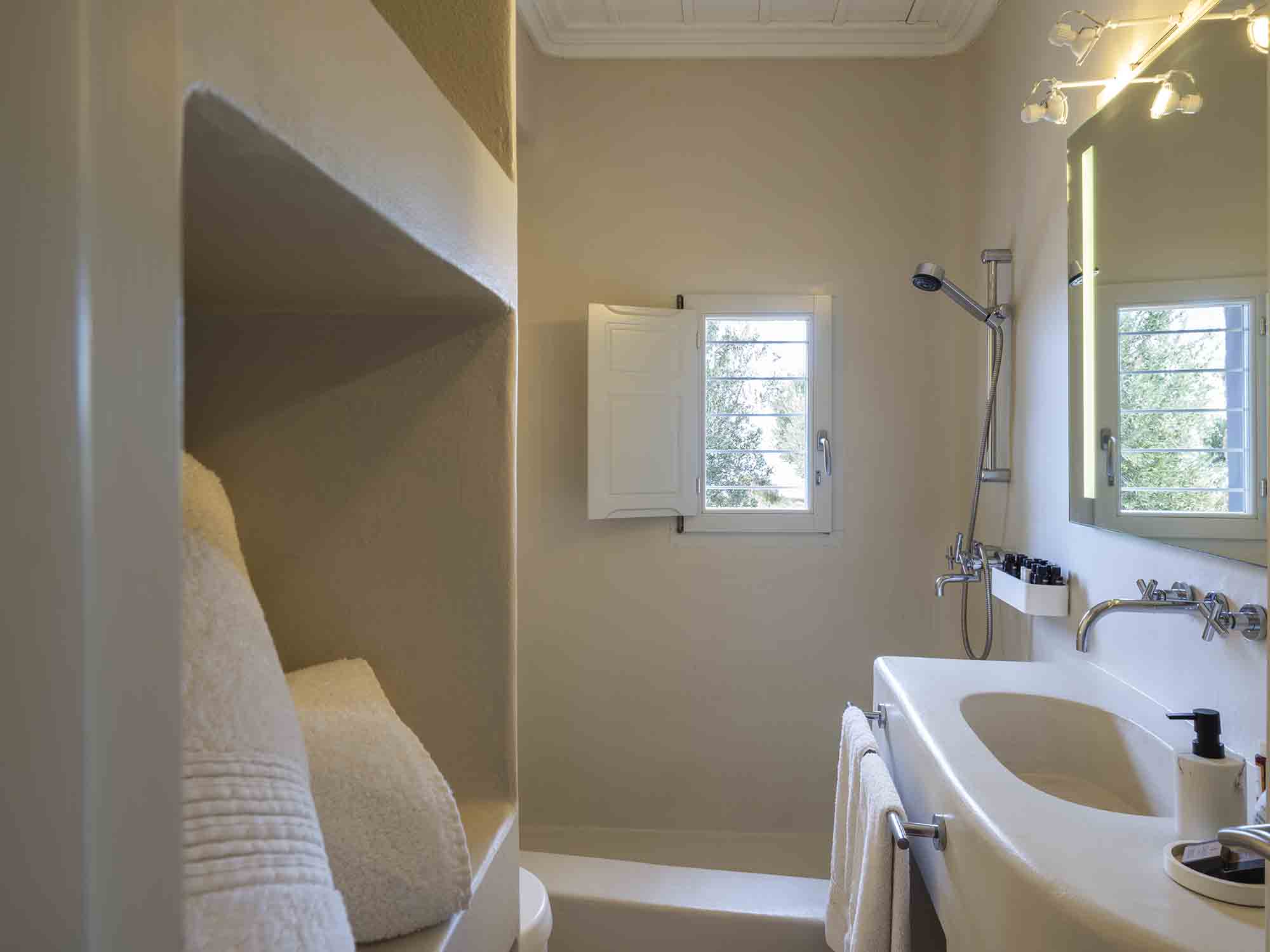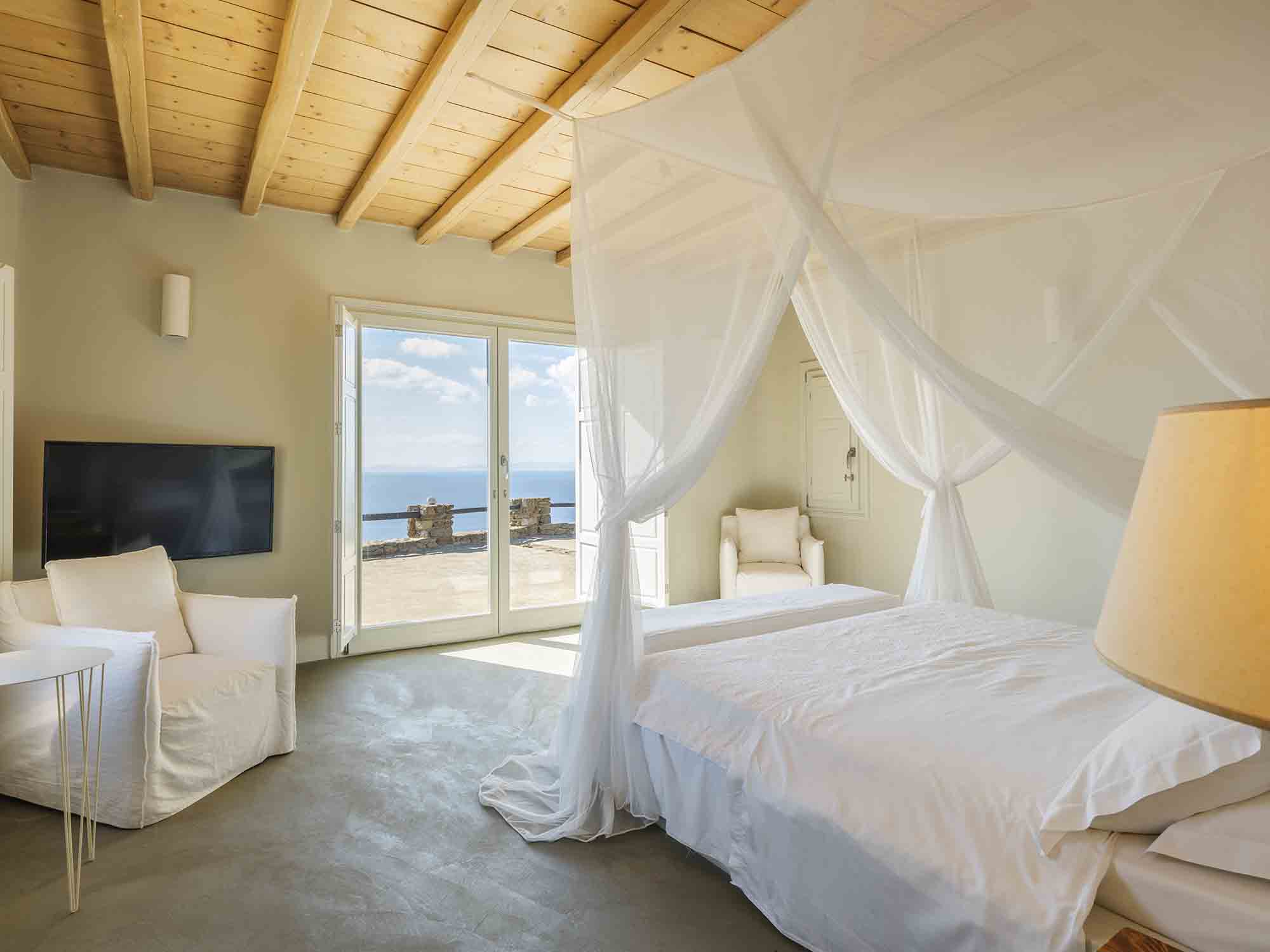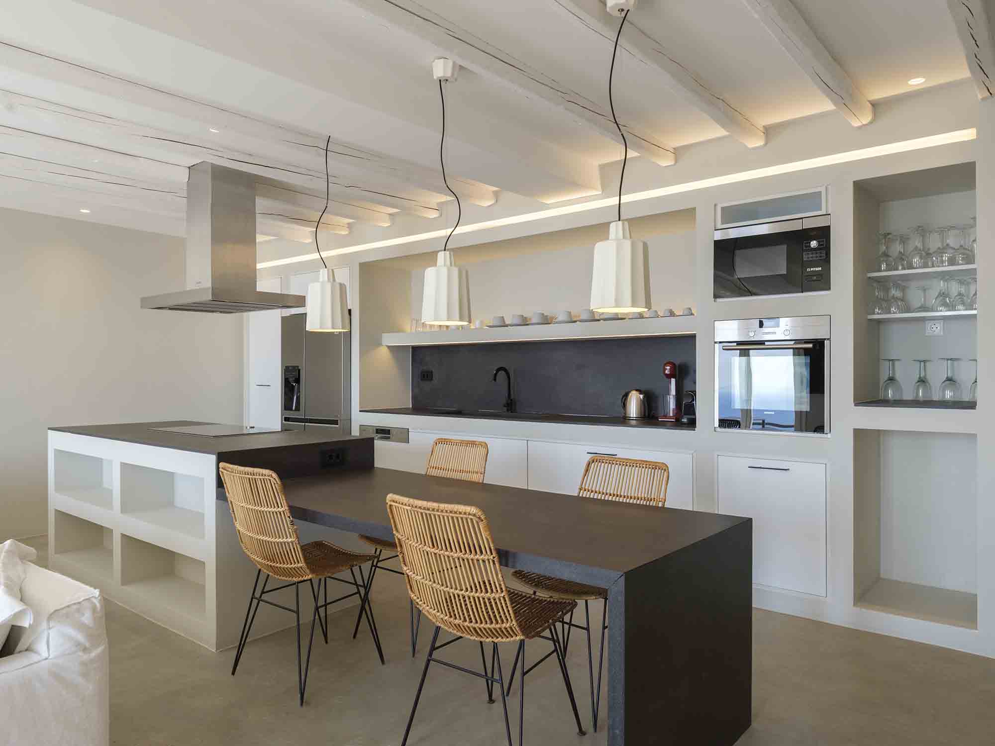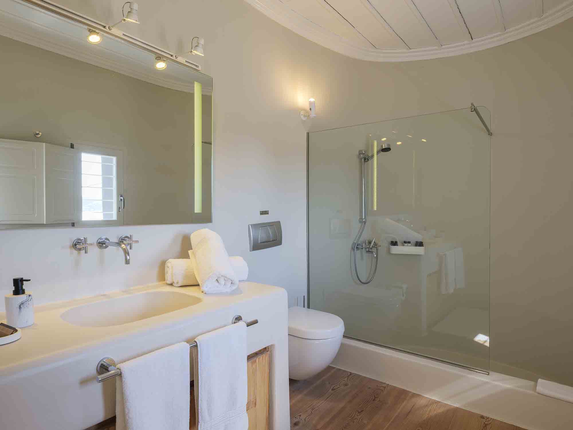 The decoration and the style of the interior is carefully cared with fine materials and elegant lines. Cycladic architecture style finds a fascinating expression in this luxurious property, with whitewashed areas retaining the minimal flair, so that the overall design details to be displayed at the most.