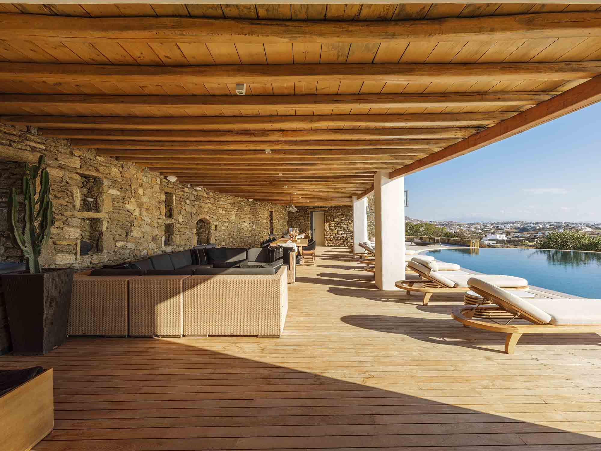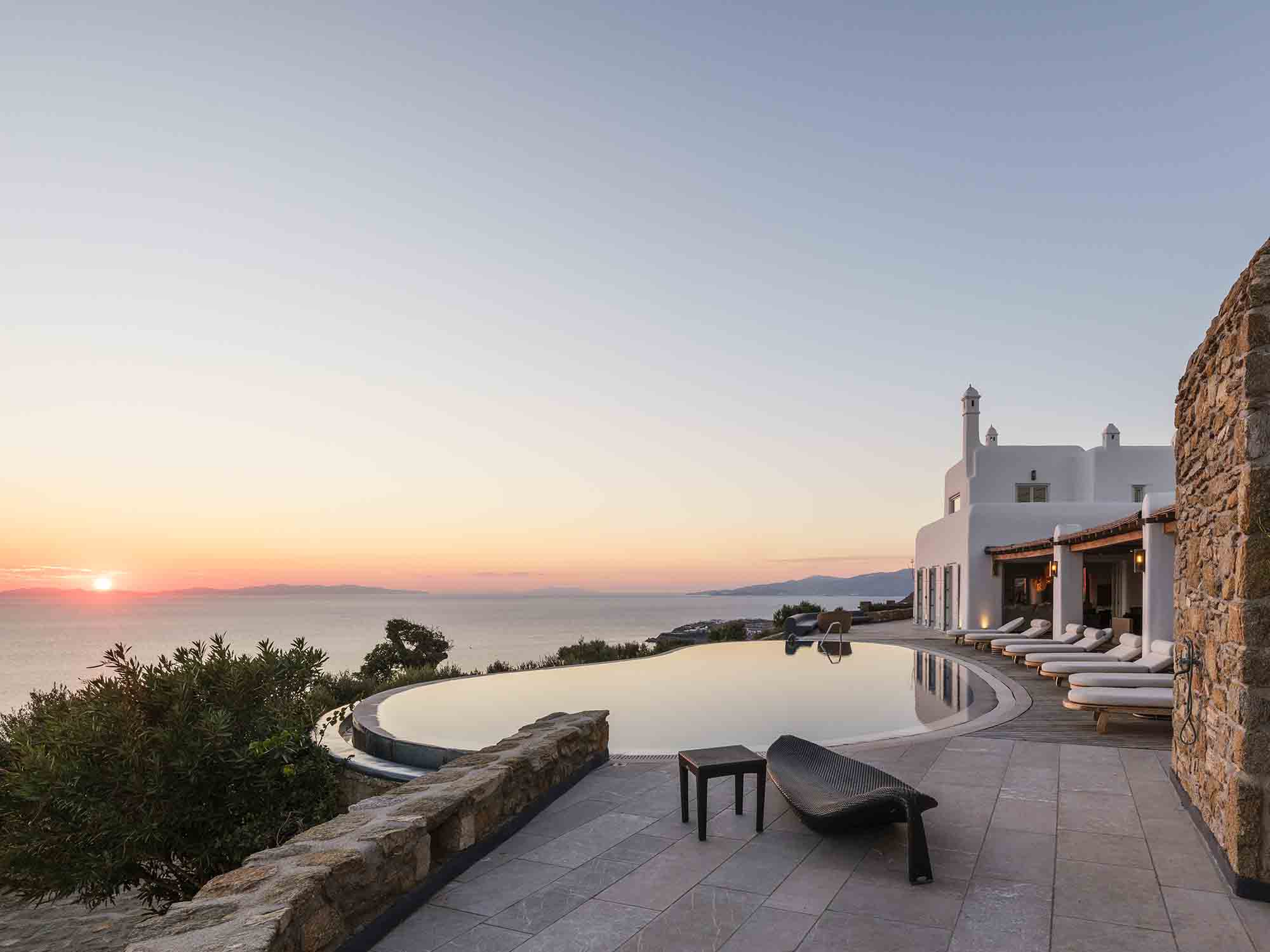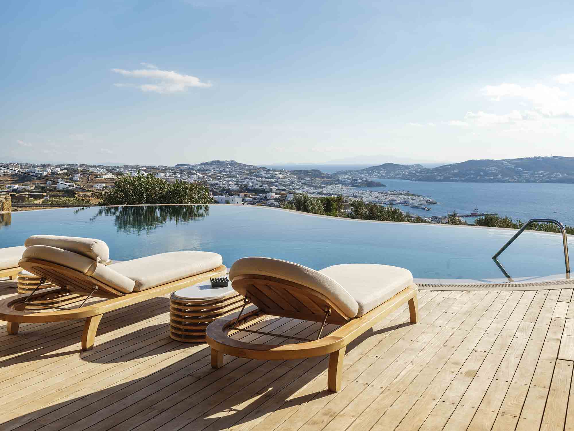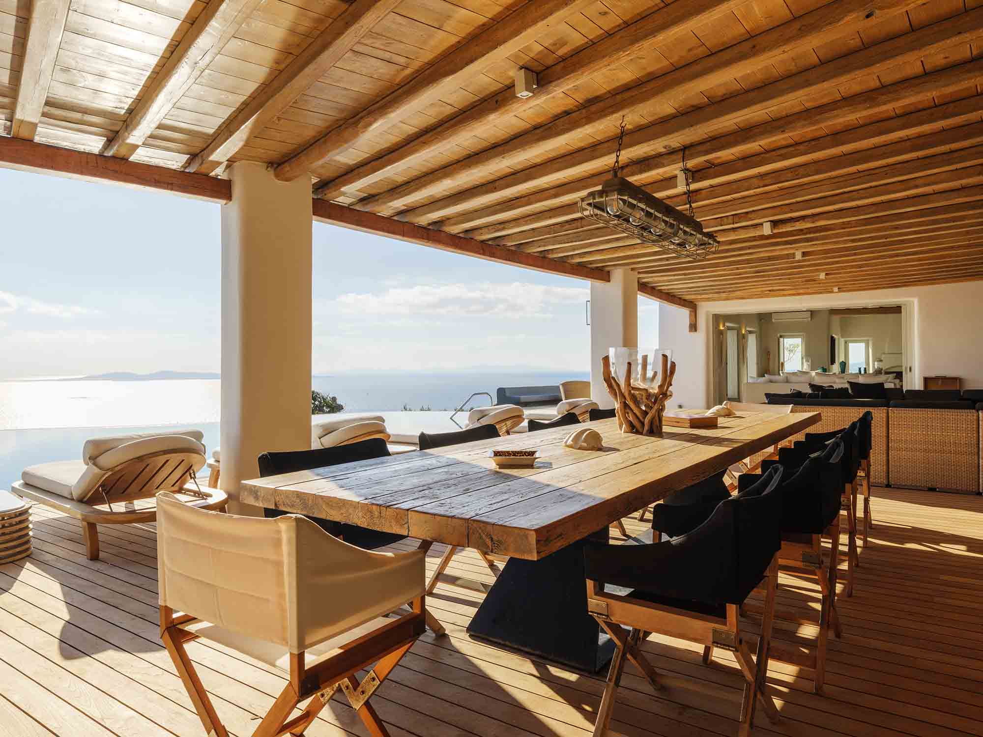 Wide terraces and lounge areas surround the property offering overlooking views to the sea and the vibrant horizon. An infinity-heated pool also in front of the villa will centralize your gatherings during your holidays!