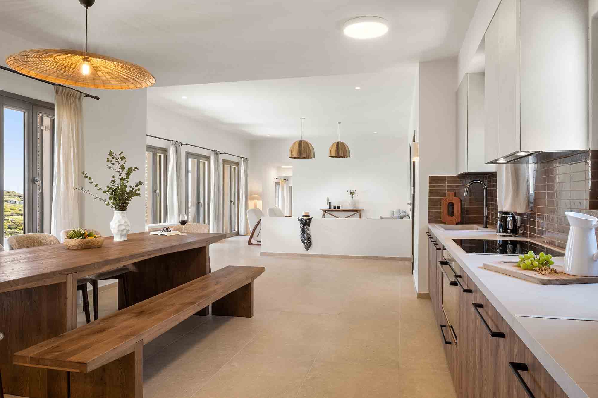 Villa Ivonne embodies the very definition of Cycladic luxury, redefining the essence of authentic hospitality. The villa blends clean lines with minimalist aesthetics, where each carefully selected piece of furniture harmonizes seamlessly with the natural landscape, creating a space where elegance meets functionality.