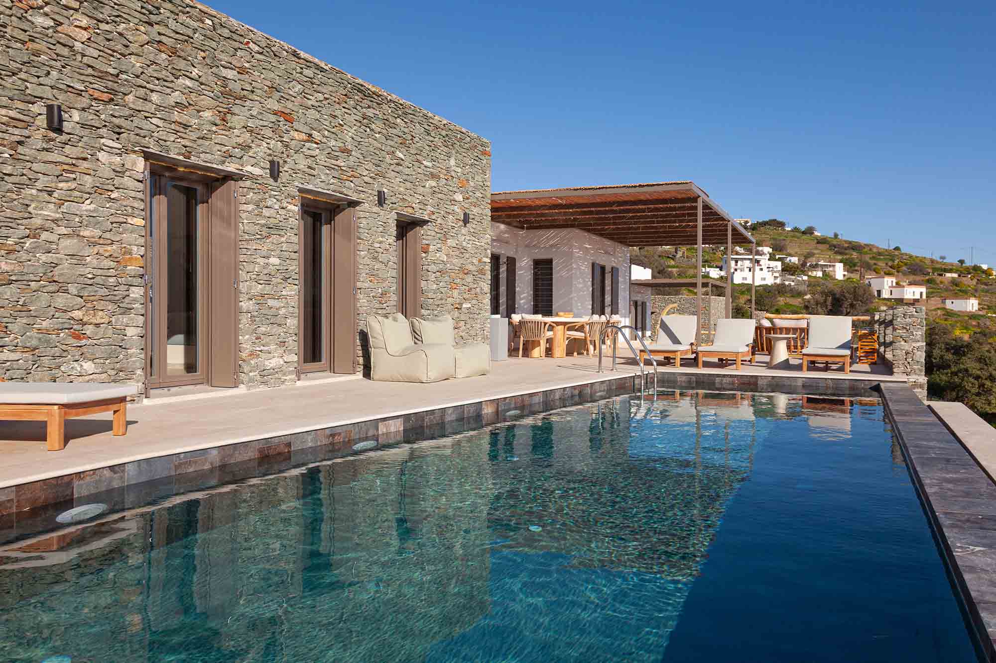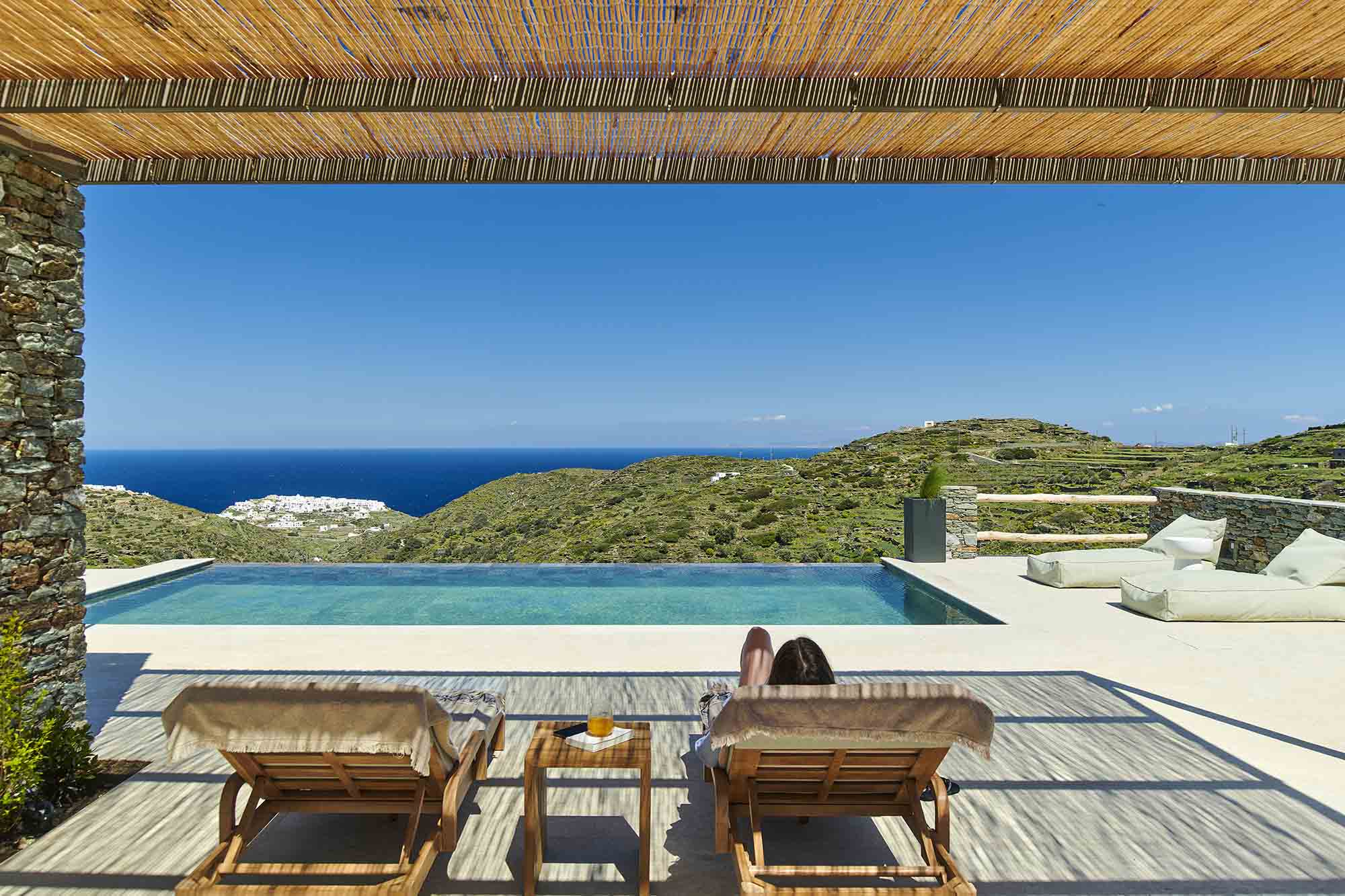 Villa Ivonne in Sifnos, a luxury retreat. Designed with minimalistic aesthetics and modern comfort, every space invites calm and rest. Spread over 8.000 m2, Villa Ivonne offers privacy, style, and a slower pace of life—your own quiet corner of Sifnos.