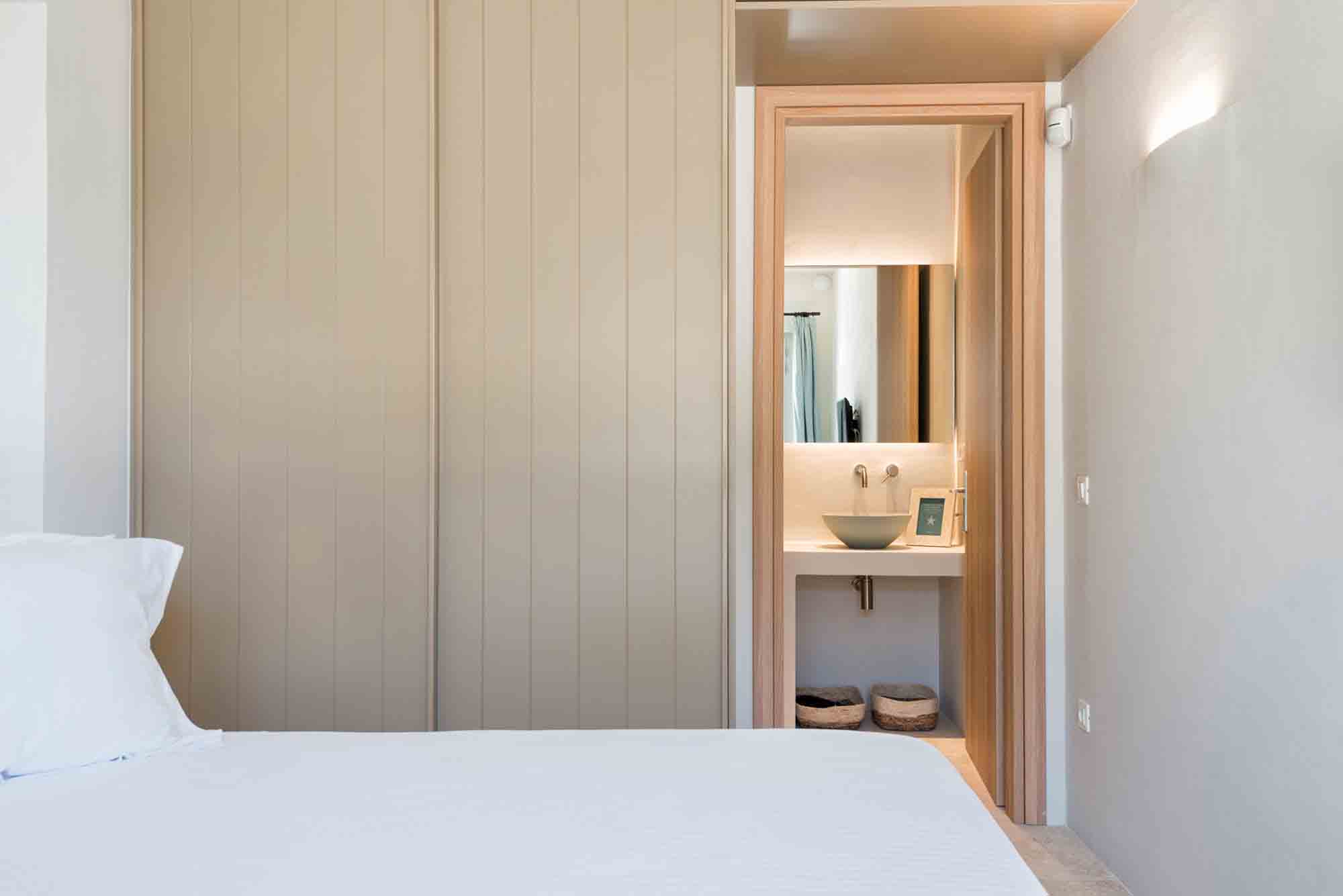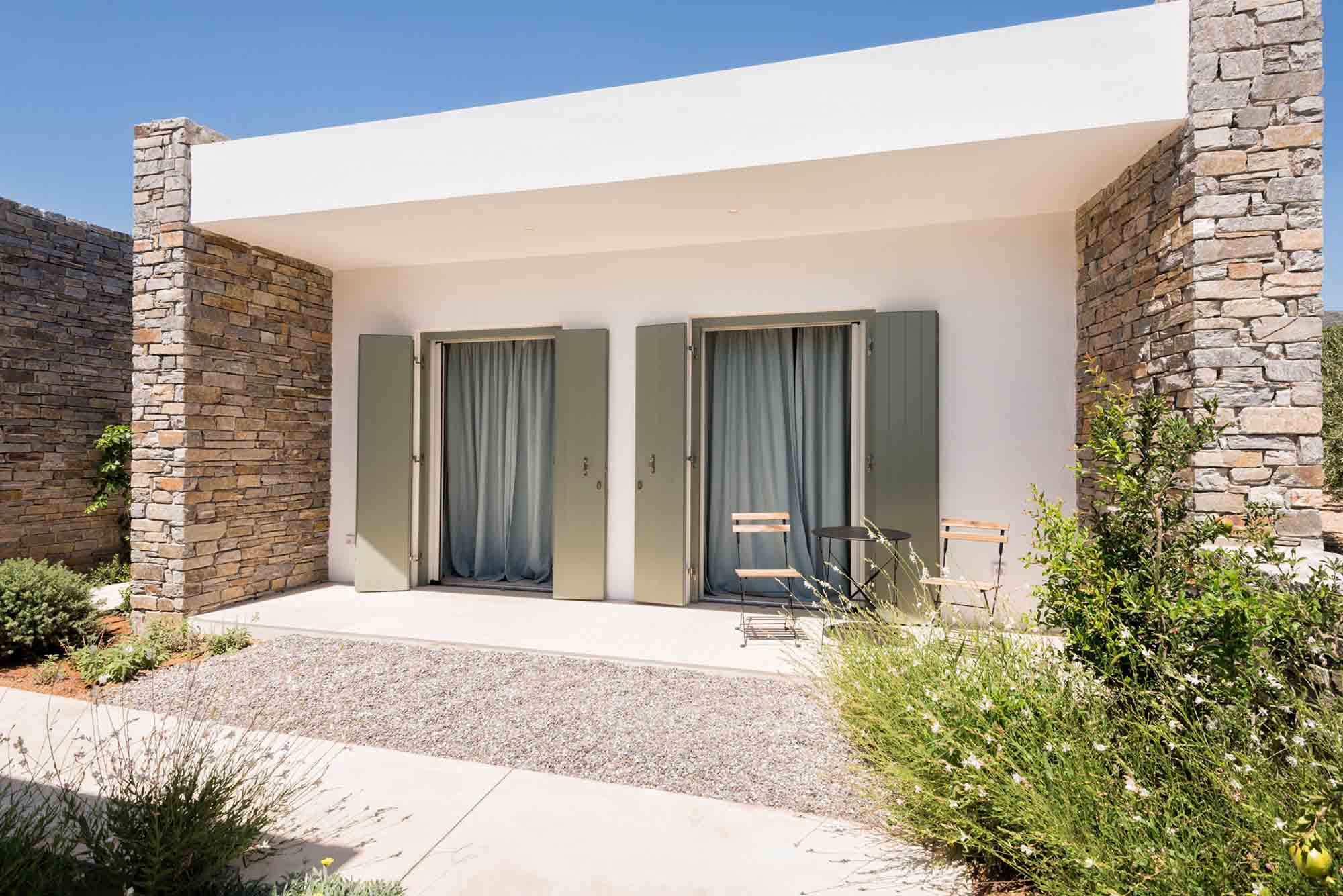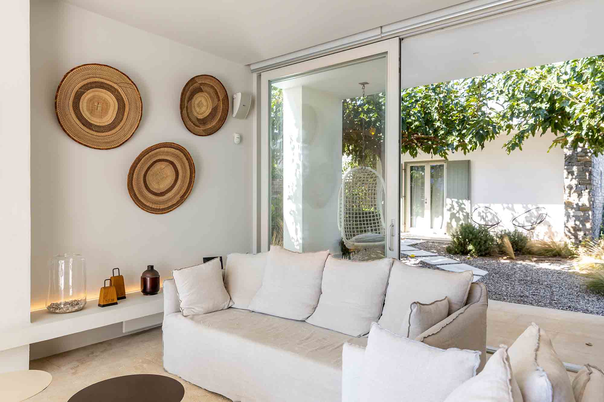 Each villa consists of 3 different settlements. The main house which is at the front side and offers a fully equipped kitchen, living and dining at the ground level, as well as an en-suite master bedroom on the upper level with private terrace and splendid views. Then there are two independent guesthouses, one with a double bedroom en-suite and one with two double bedrooms, both en-suite.