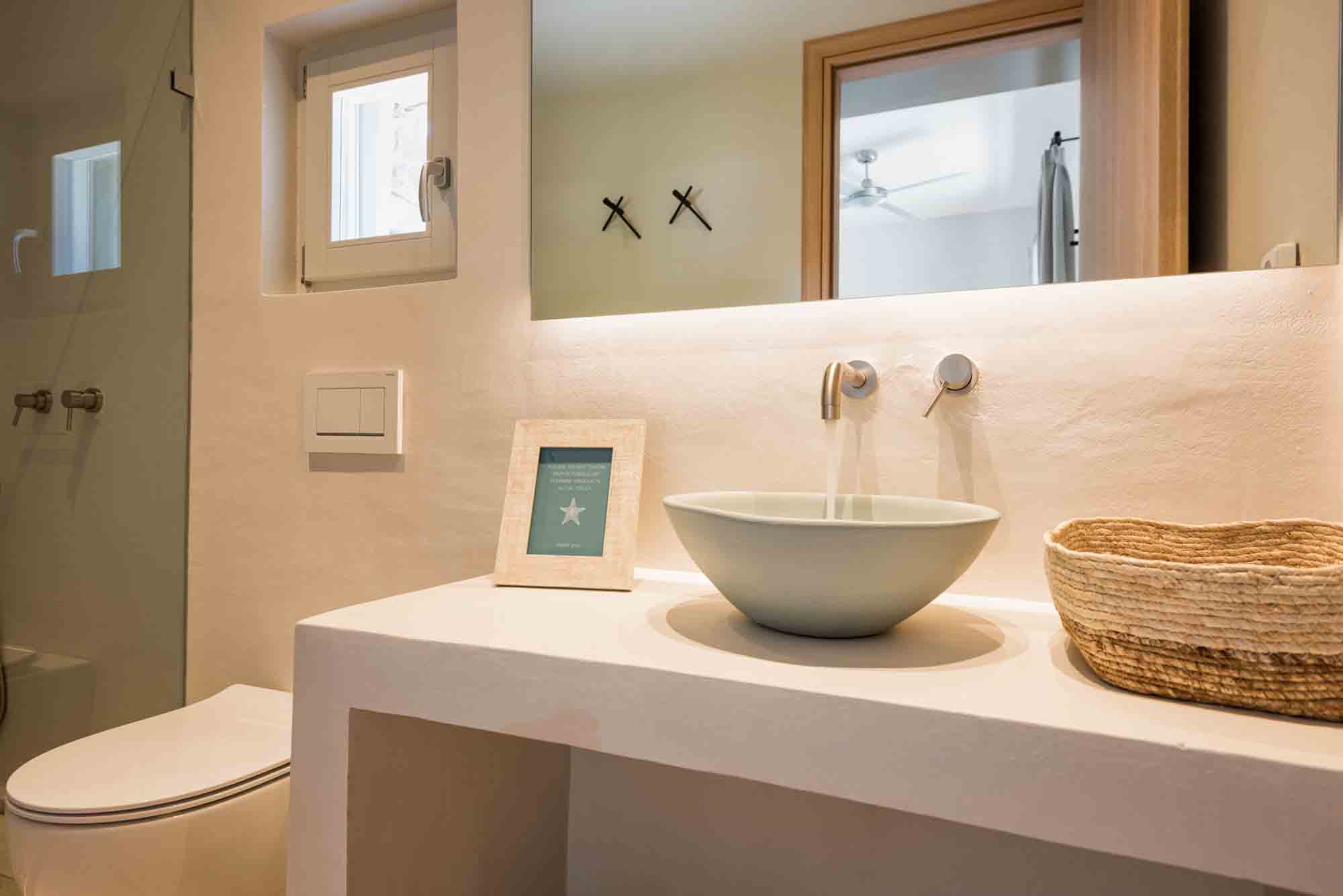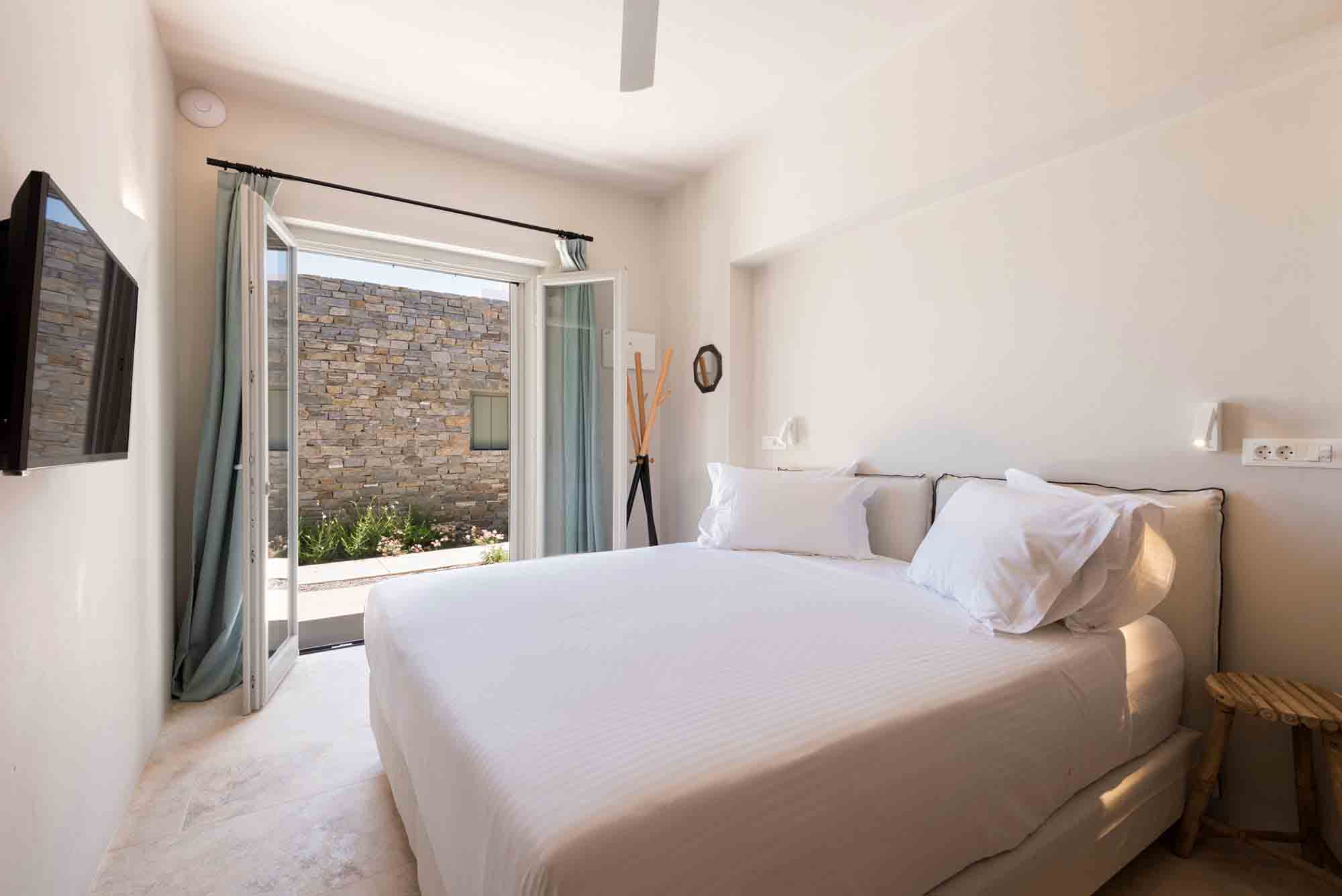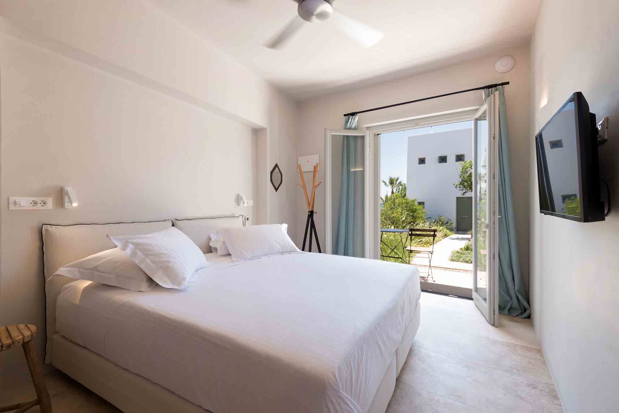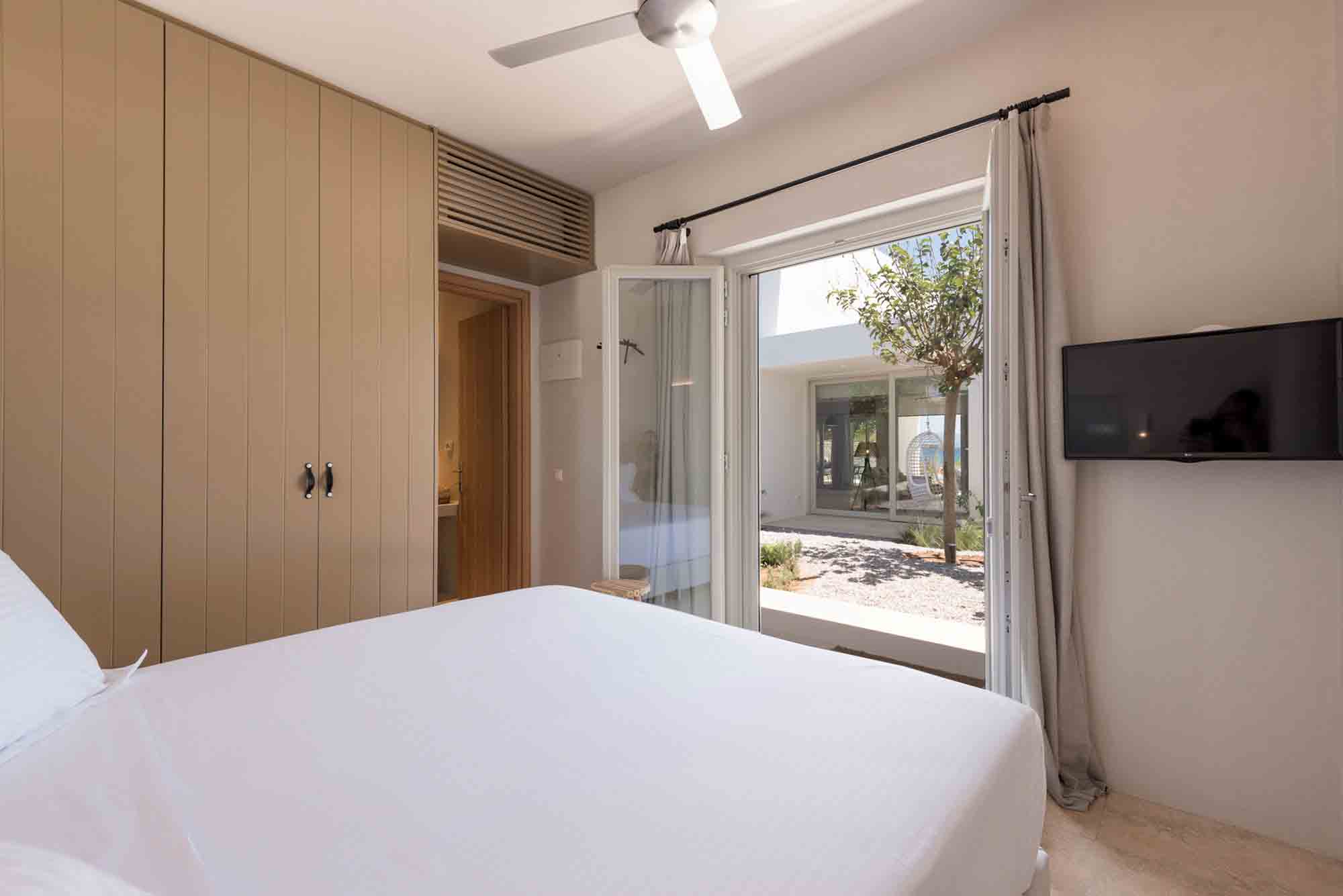 Each villa consists of 3 different settlements. The main house which is at the front side and offers a fully equipped kitchen, living and dining at the ground level, as well as an en-suite master bedroom on the upper level with private terrace and splendid views. Then there are two independent guesthouses, one with a double bedroom en-suite and one with two double bedrooms, both en-suite.