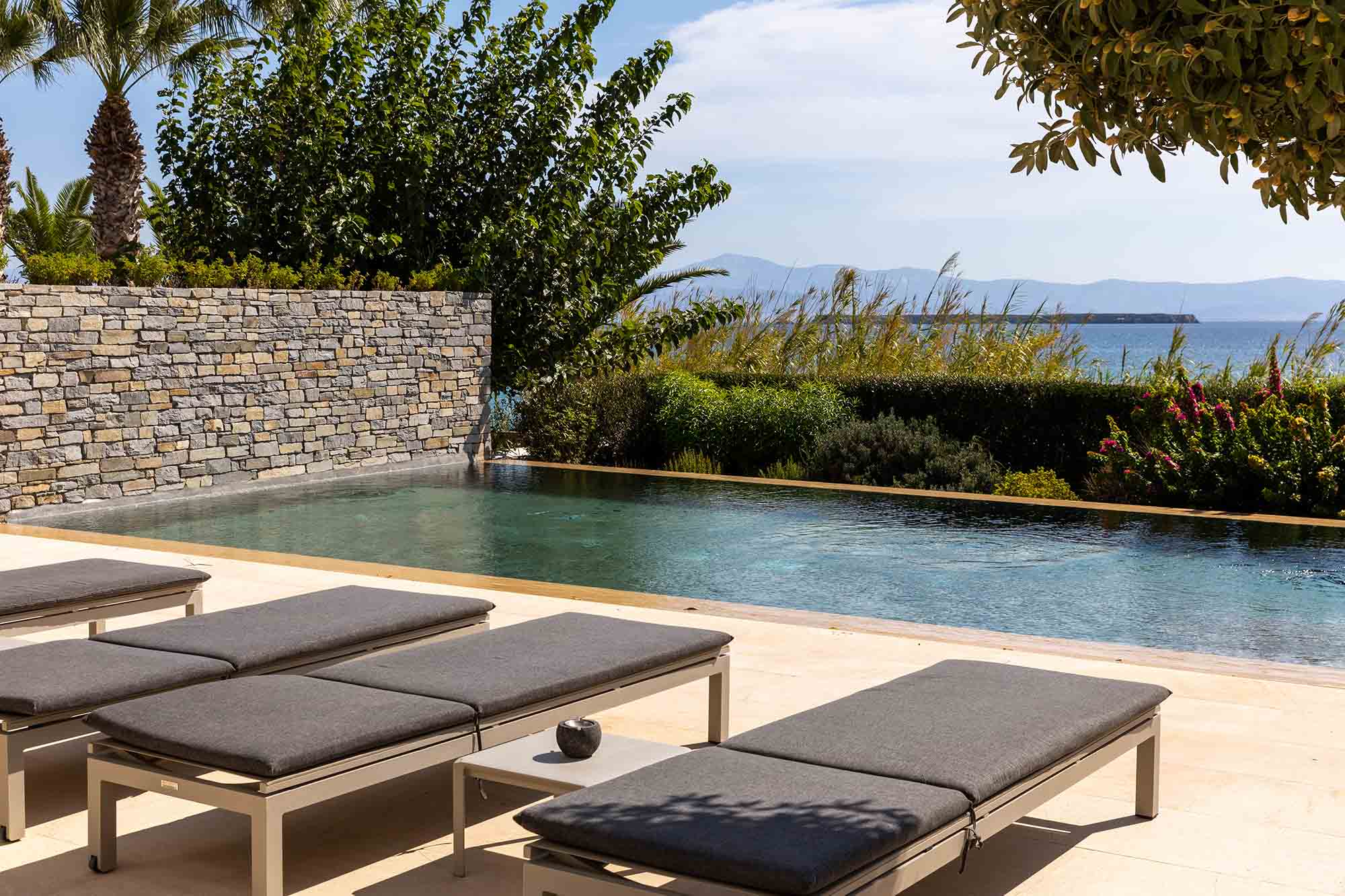 The main meeting point is the pool area, which is at the front side of each villa, right on the sea! The villas were built in 2018 and do offer everything our guests need for a beyond spaces vacation.