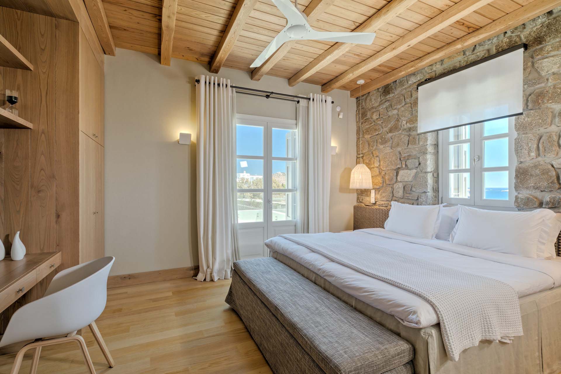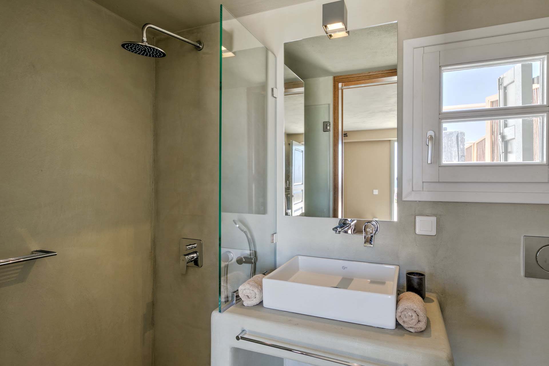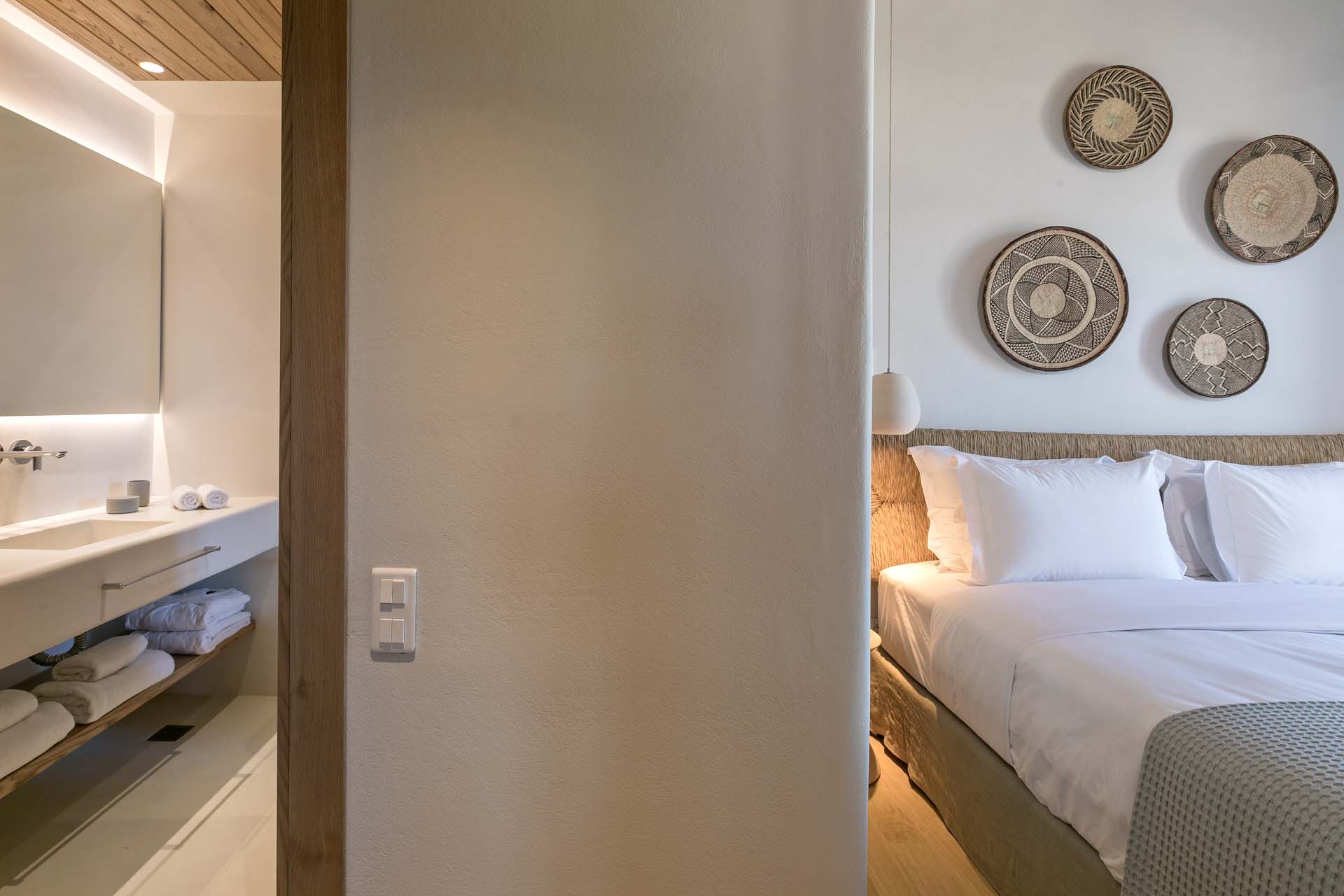 The interior is a blend of minimal, ethnic and wood surfaces, joyfully blending to create a warm ambience of hotel style quality and standards. The choice of furniture, fabrics and materials is of the highest quality. Amenities such as the gym and the massage room, which are located below the pool, offer guests even more comfort and amenities beyond the standards usually expected.