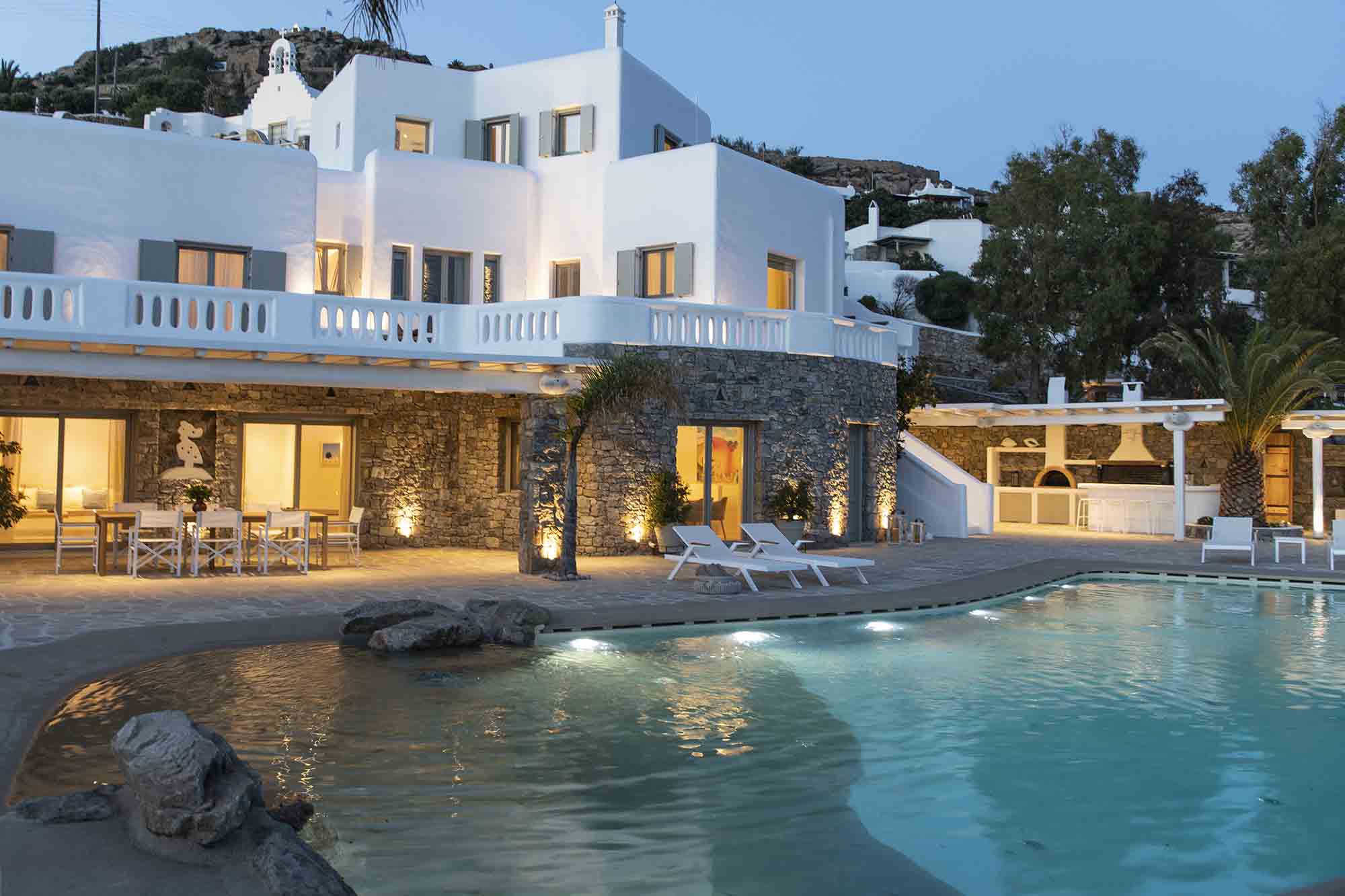 Discover modern extravagance and island allure at 5-star Villa Luna in Mykonos Island. With a main villa of 5 bedrooms & 6 baths and three exclusive guesthouses, the property accommodates up to 16-18 guests, epitomizing luxurious comfort on Mykonos Island.