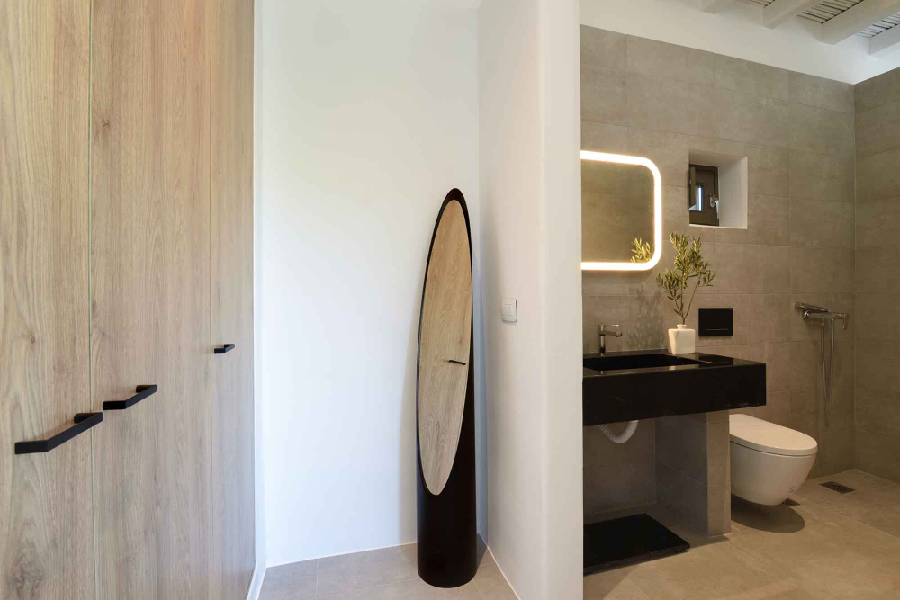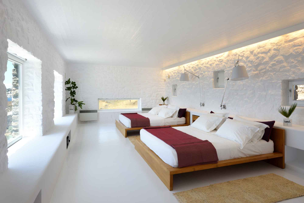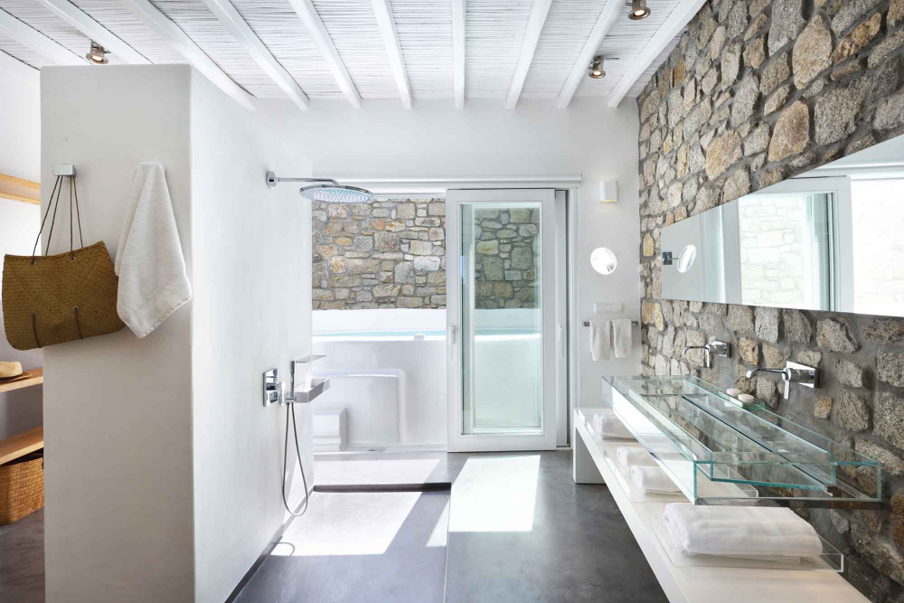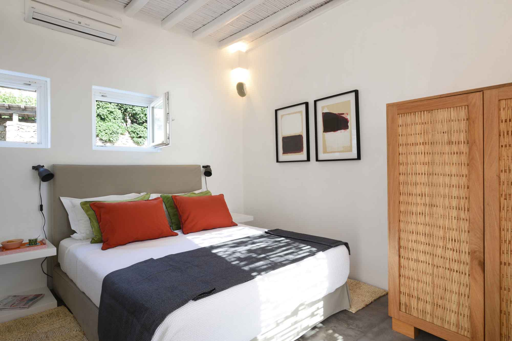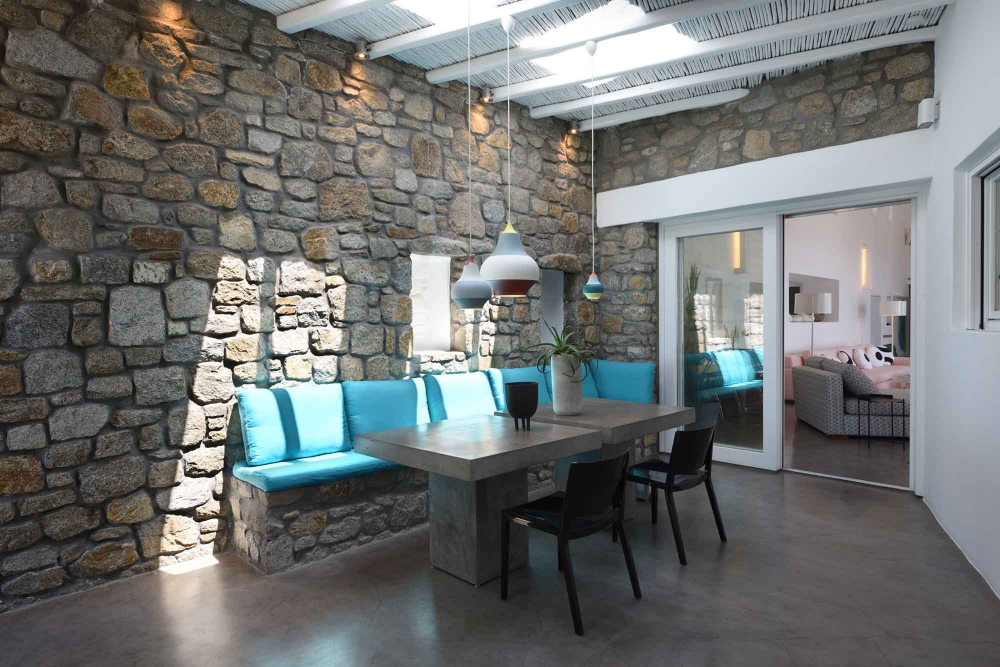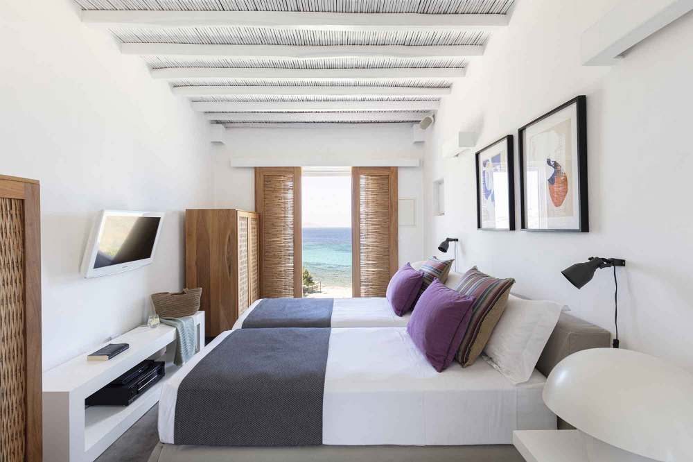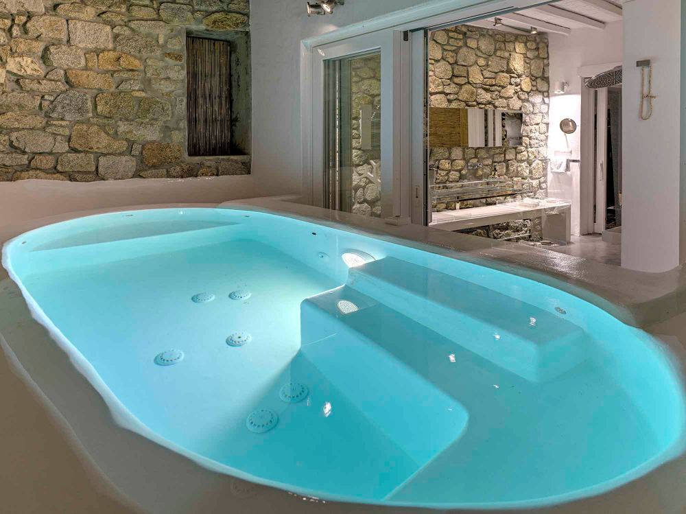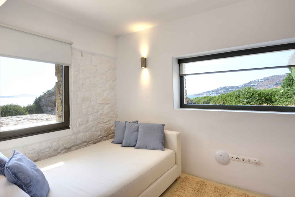 The Villa Mare Mykonos interiors are modern but cosy, the furniture being a mixture of funky and conservative, giving it a unique feel and look. The bedrooms have superb views of the sea and the bamboo cupboards give it a feeling of freshness and breeze. The bathrooms, especially the master bathroom, are an experience unto their own, with modern appliances and sensual lighting at night.
