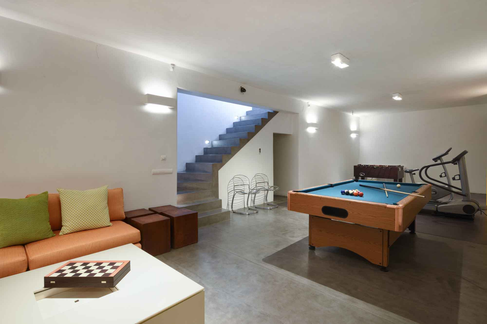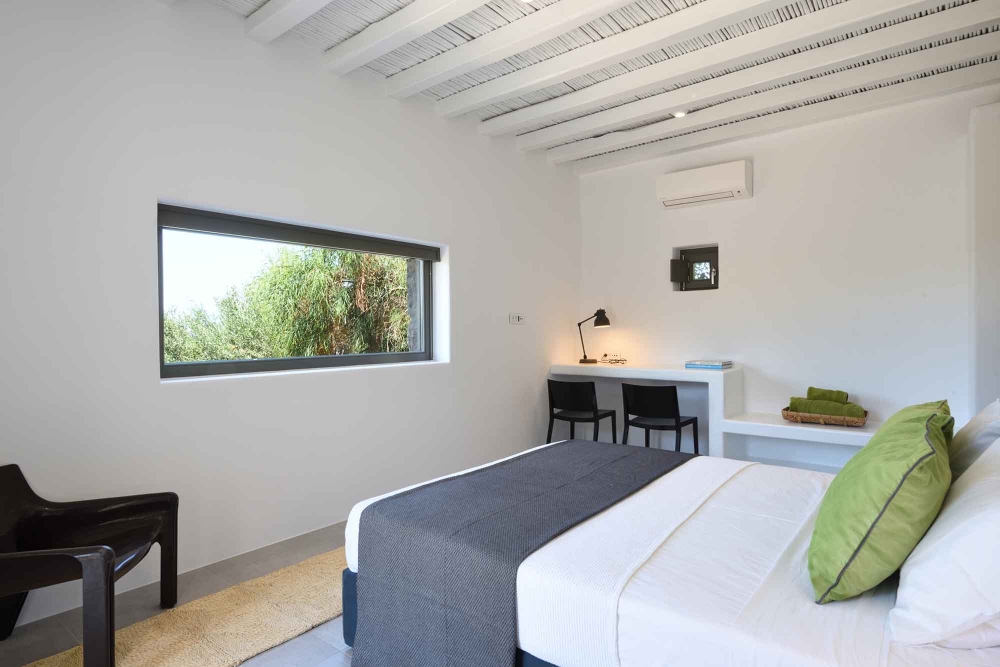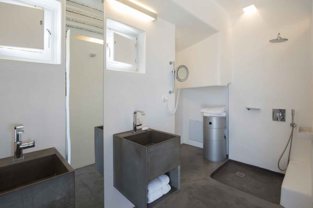 The outdoor space consists of lounge and dining areas together with a swimming pool. From its vast veranda, you can enjoy privacy by gazing not only the small island of Anafi but also the chromatic combinations of the sunset beyond spaces.