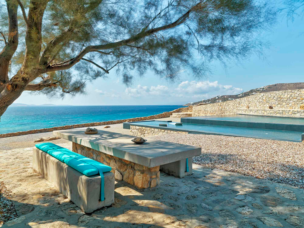 Villa Mare Mykonos is a true masterpiece. A modern and luxurious property, only 10 minutes from Mykonos town but set directly by the sea, offering magical views to Delos Island and the outstanding sunset.
