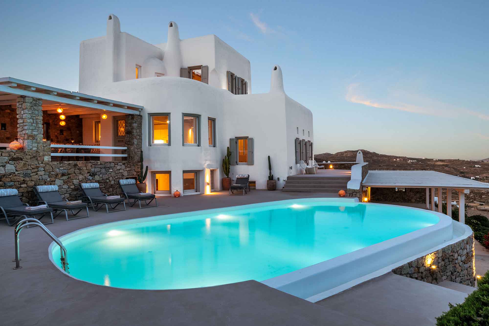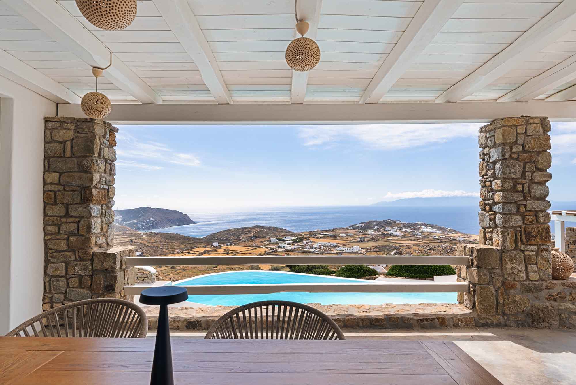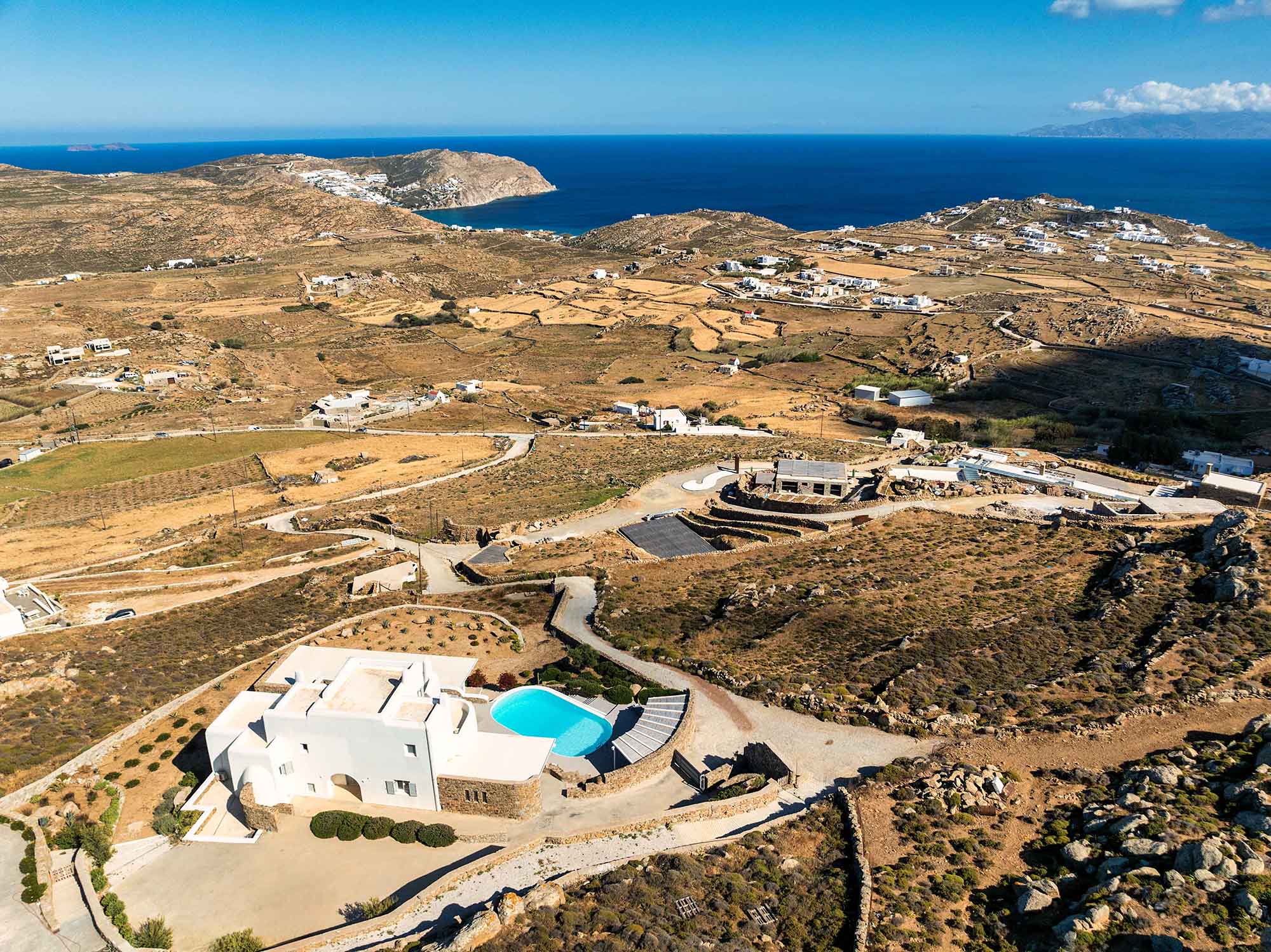 Villa Marpesia is an elegant family villa, facing South in a privileged wind-sheltered location at the top of the hill Kounoupas with breathtaking view over the Aegean Sea. It offers a total of six bedrooms and can comfortably accommodate up to twelve guests.