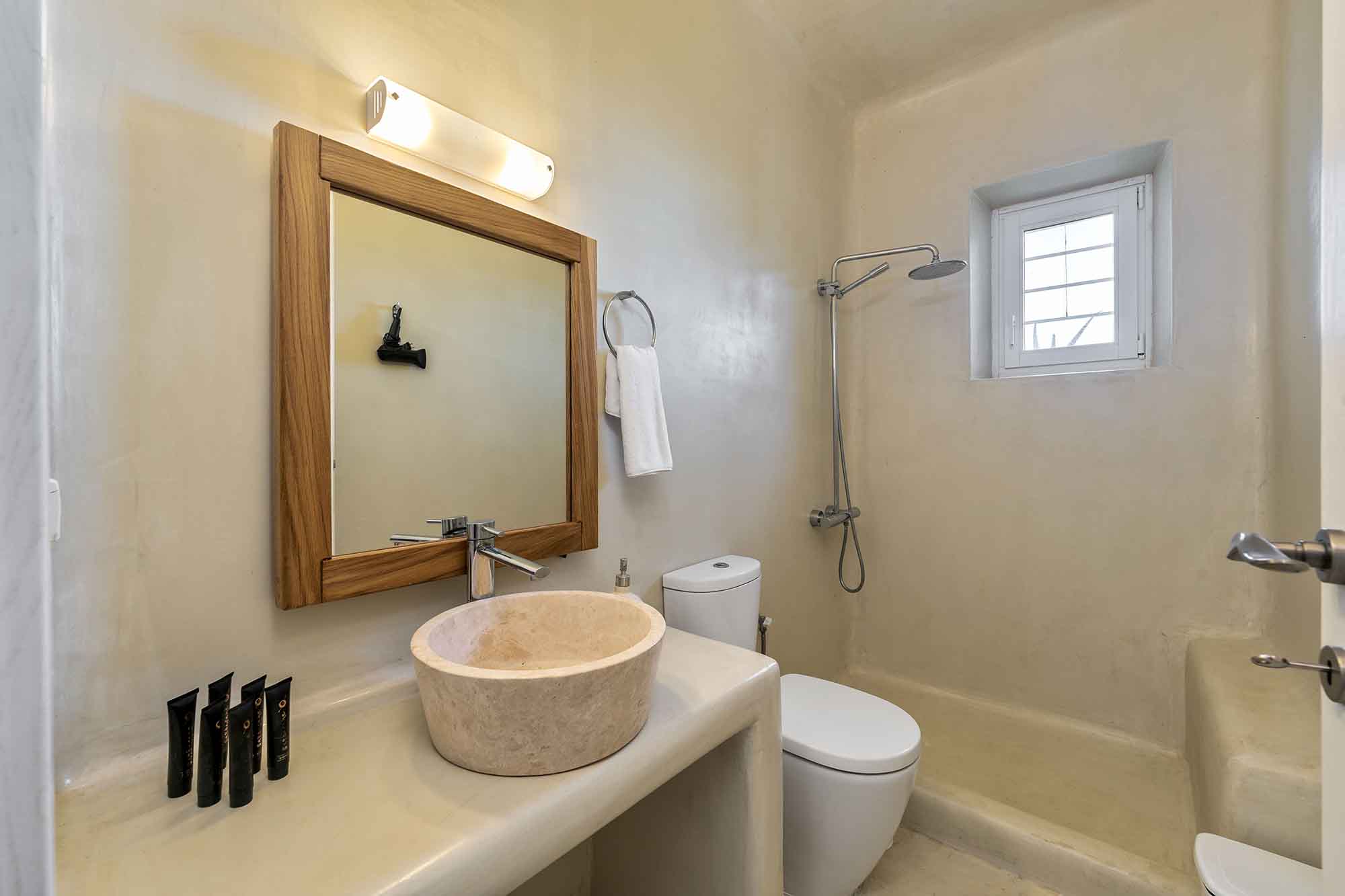 The villa is surrounded by rocky hills and the rich Mediterranean herbs, embracing the true spirit of the summer life. An elegant infinity pool accompanied by very spacious terraces with comfortable summer furniture, allows guests to enjoy the Greek sun while pergolas provide refreshing shade.