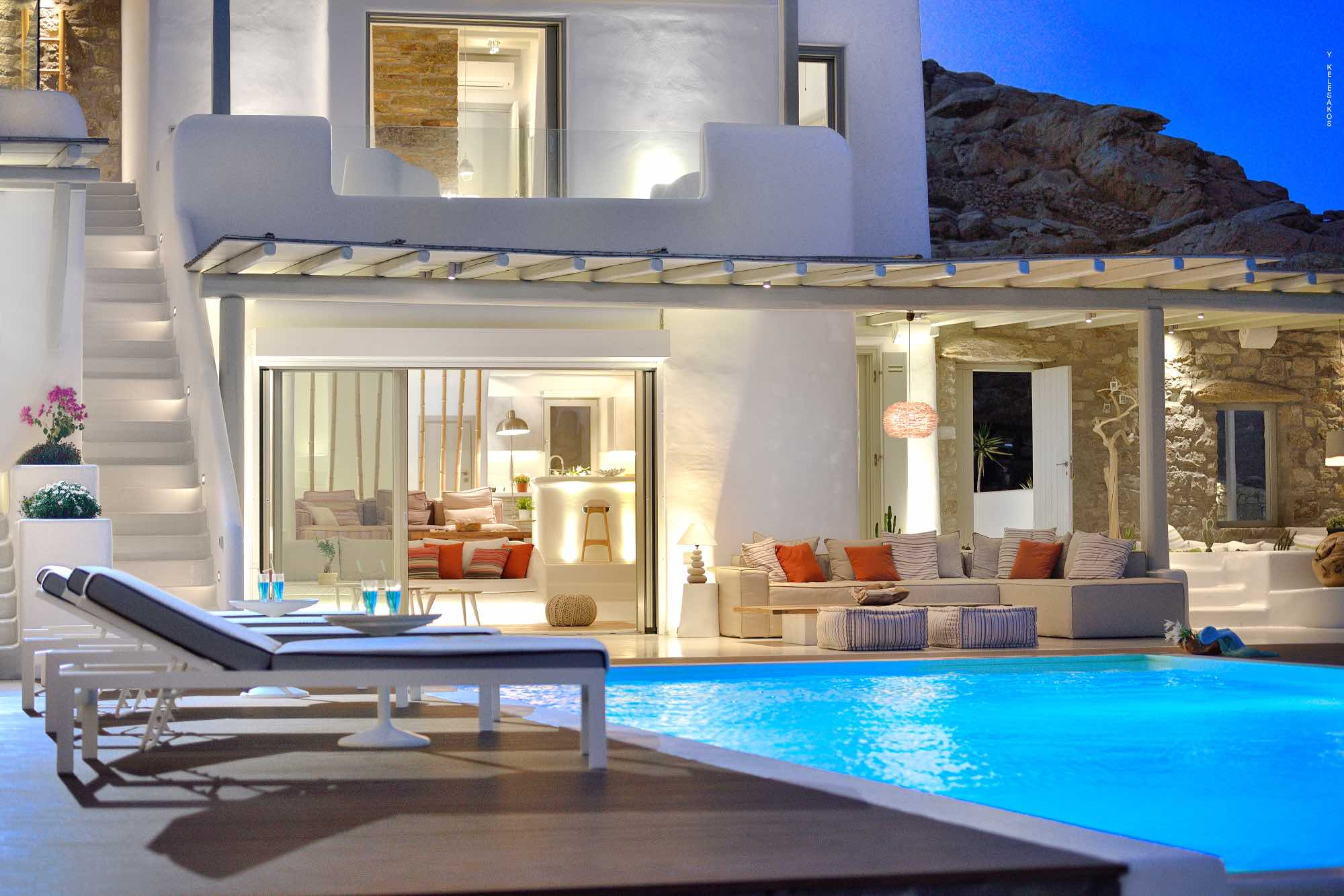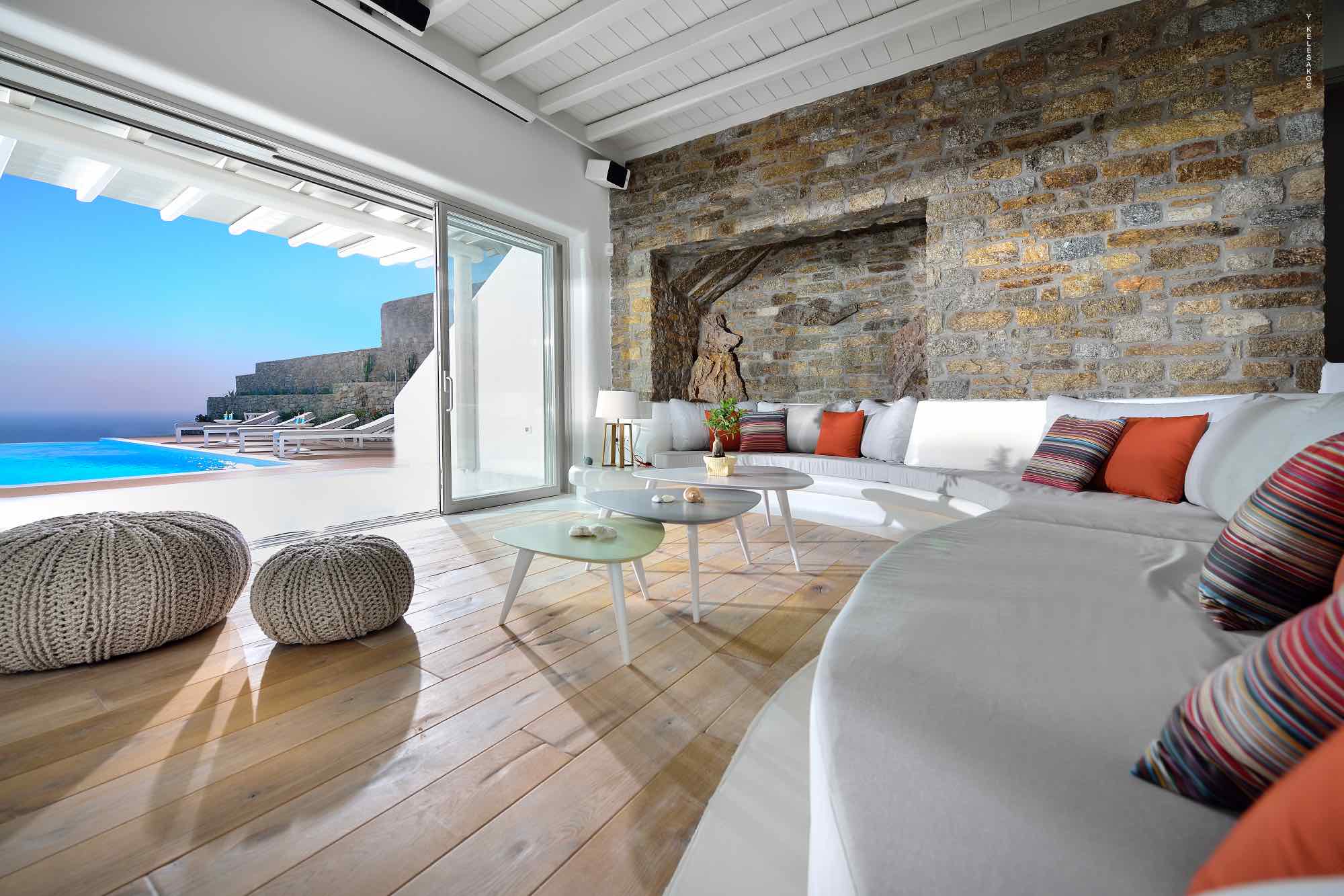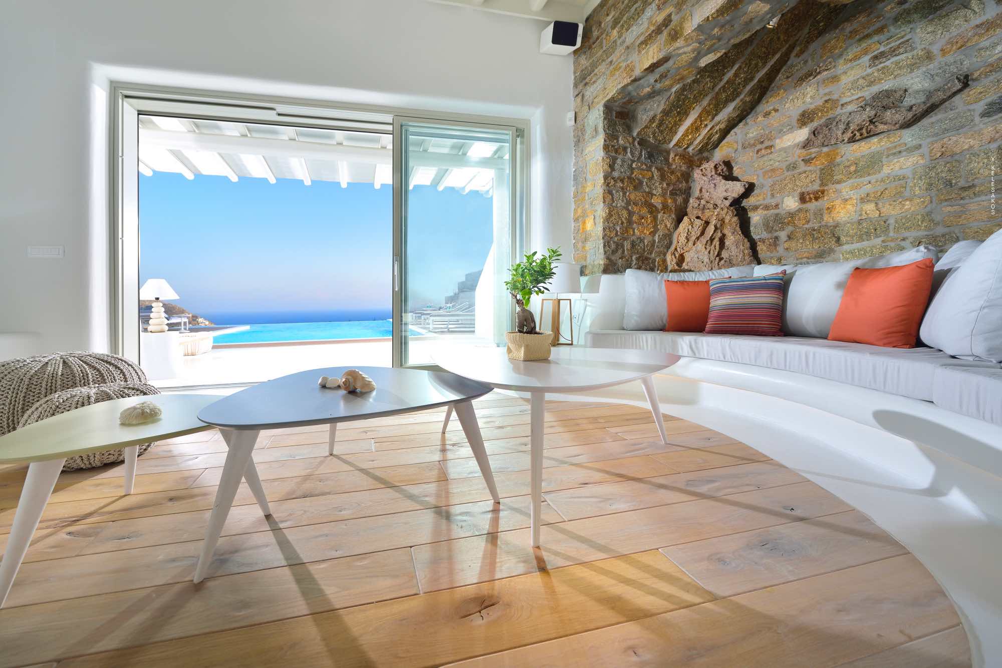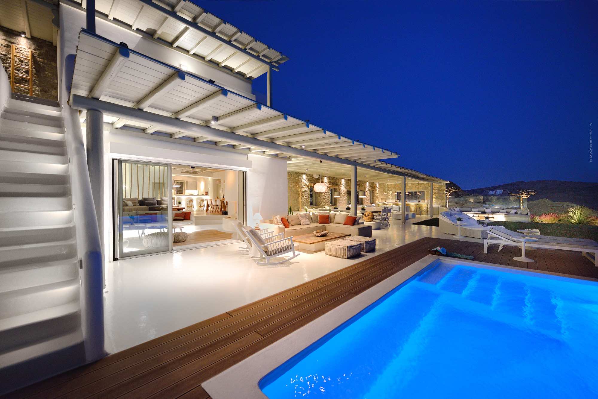 Villa Savina is situated in the northern part of the island of Mykonos, near the sandy beach of Elia. The location enjoys close proximity to the sandy beaches of Lia and Kalo Livadi, while still 15 min away form Chora and the main nightlife happenings.