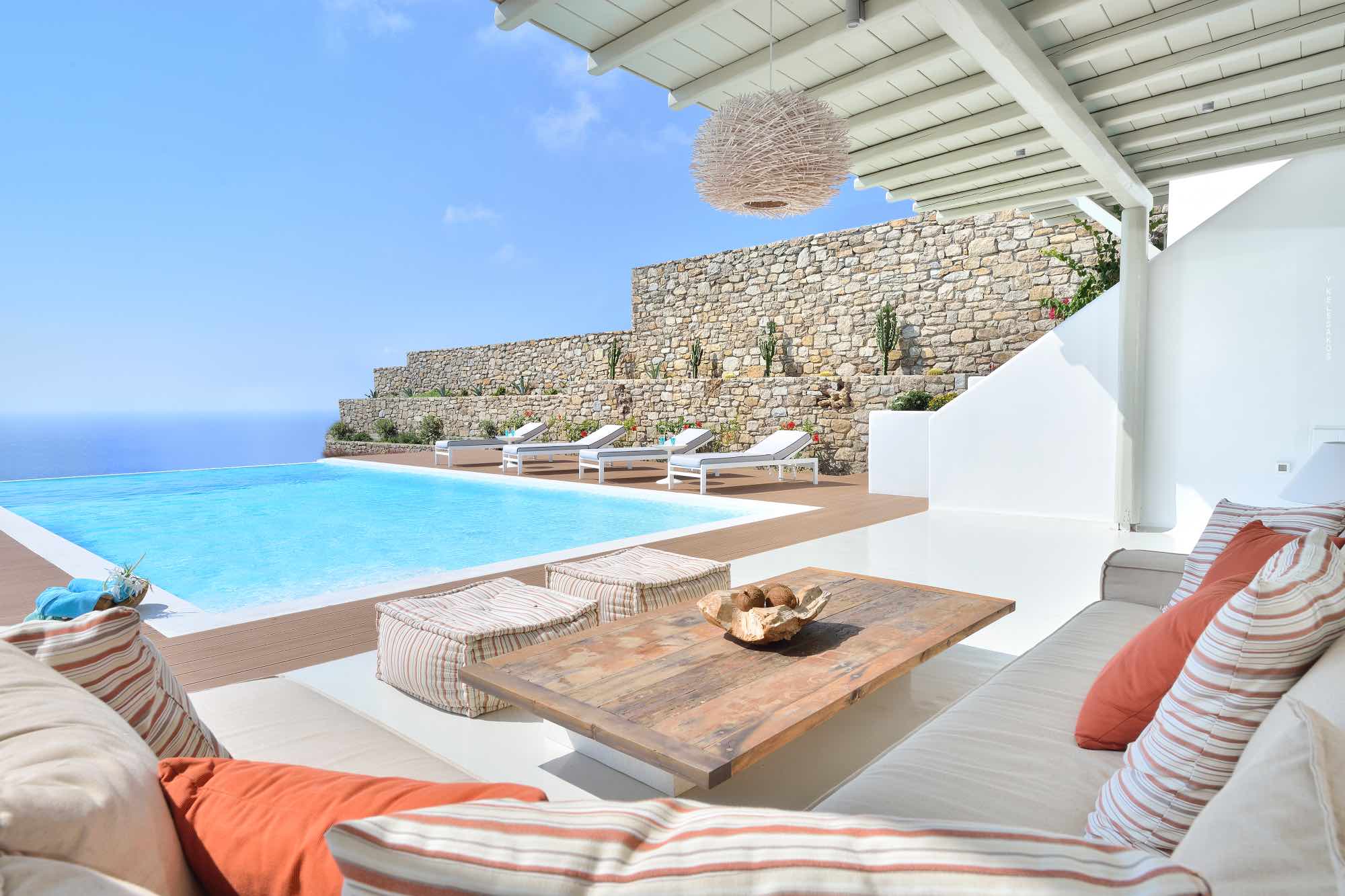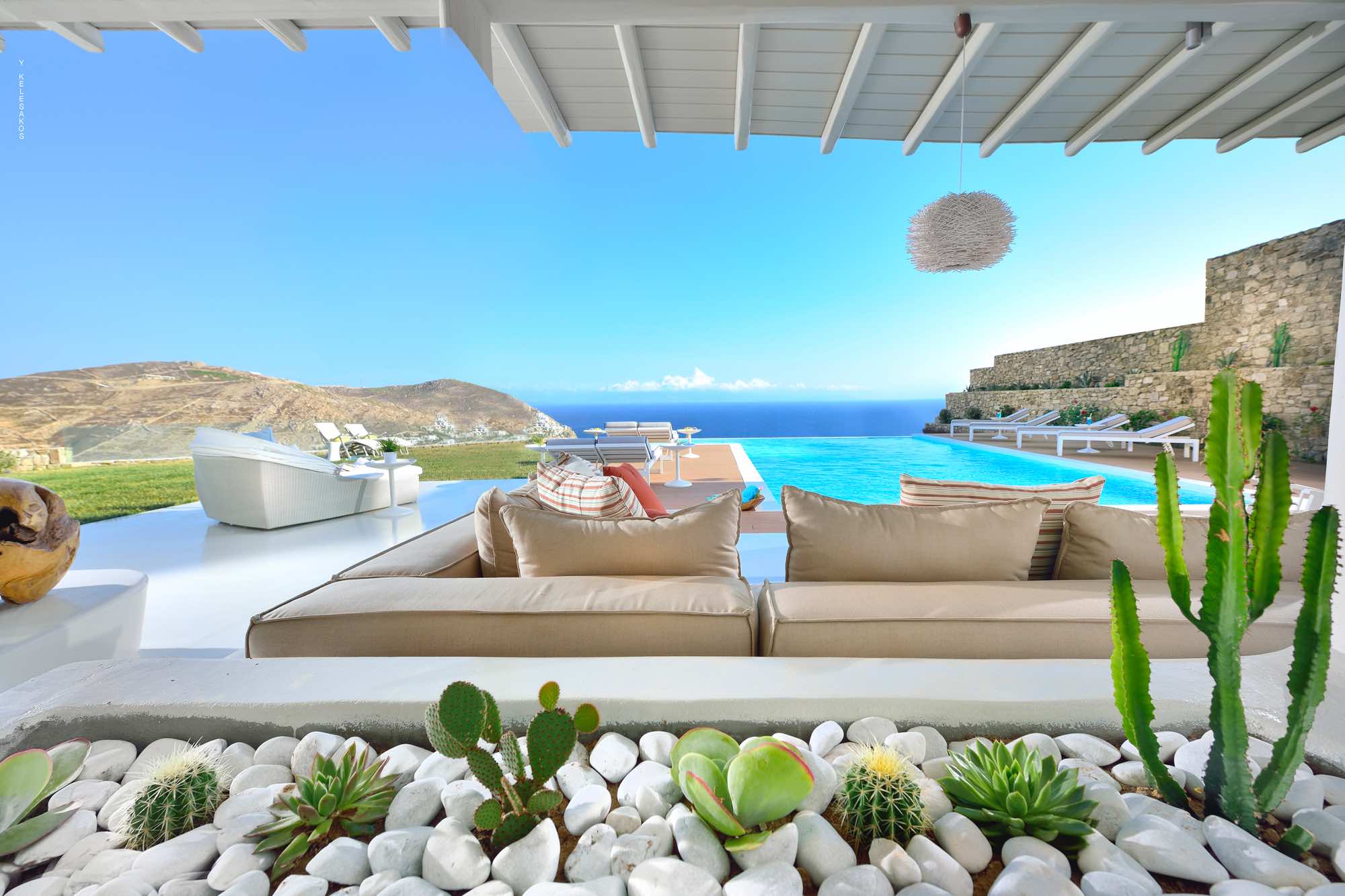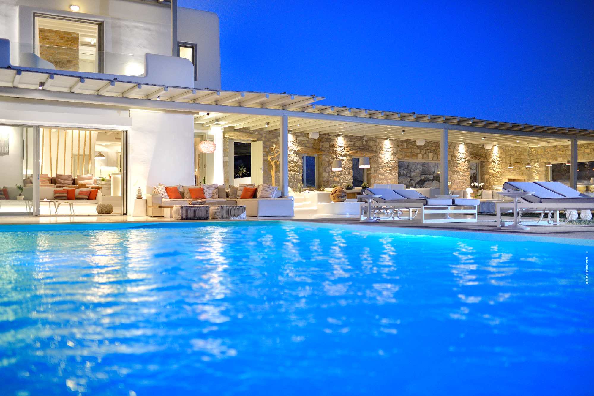 Villa Savina is situated in the northern part of the island of Mykonos, near the sandy beach of Elia. The location enjoys close proximity to the sandy beaches of Lia and Kalo Livadi, while still 15 min away form Chora and the main nightlife happenings.