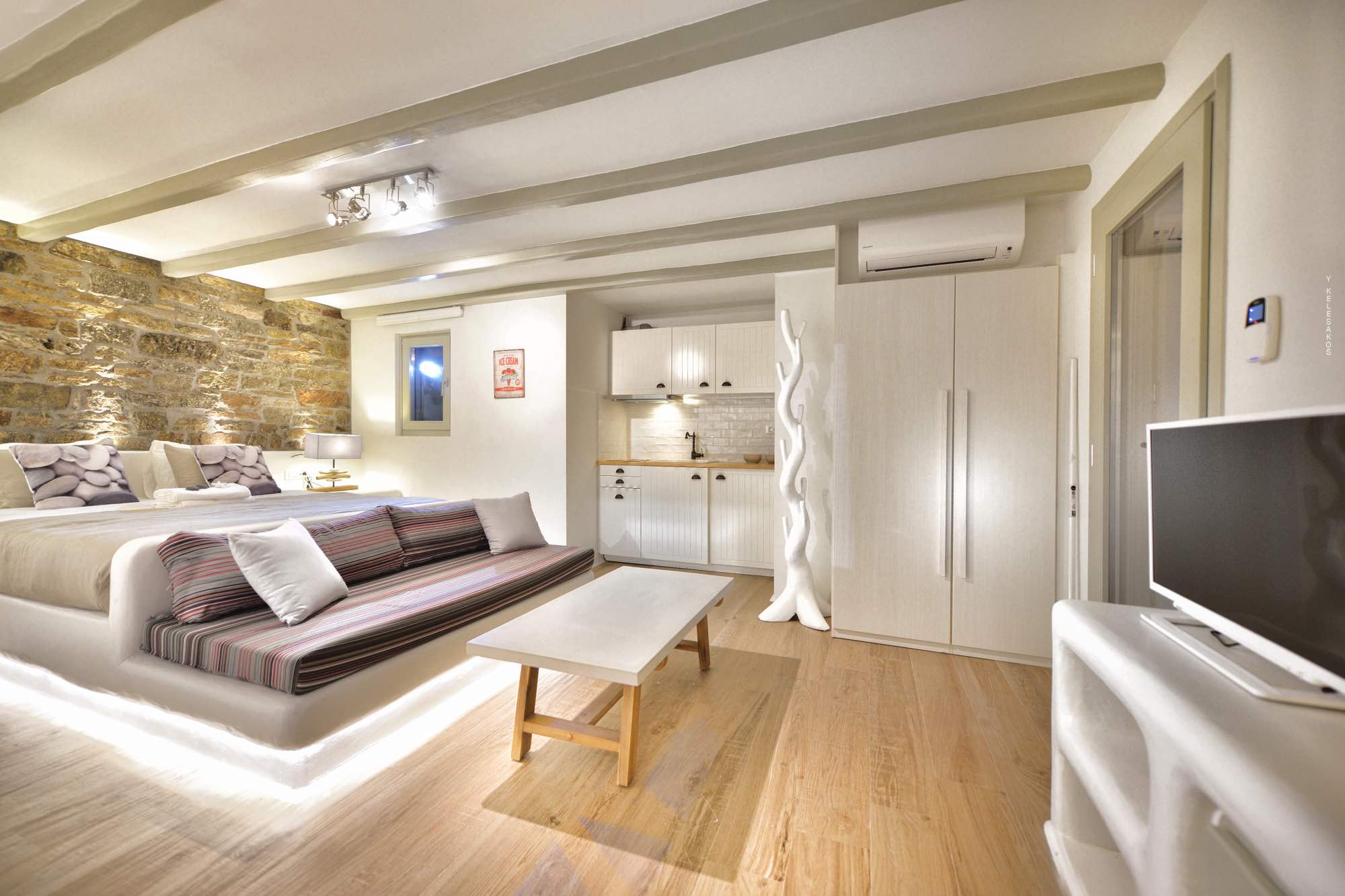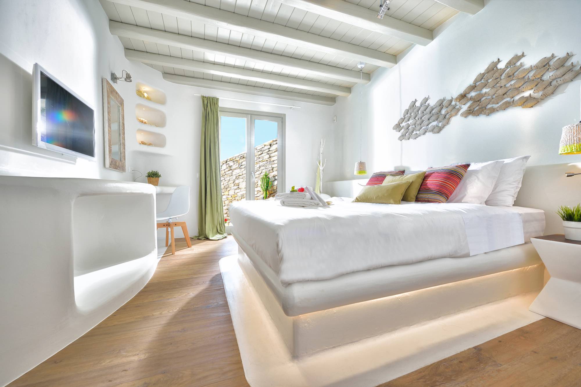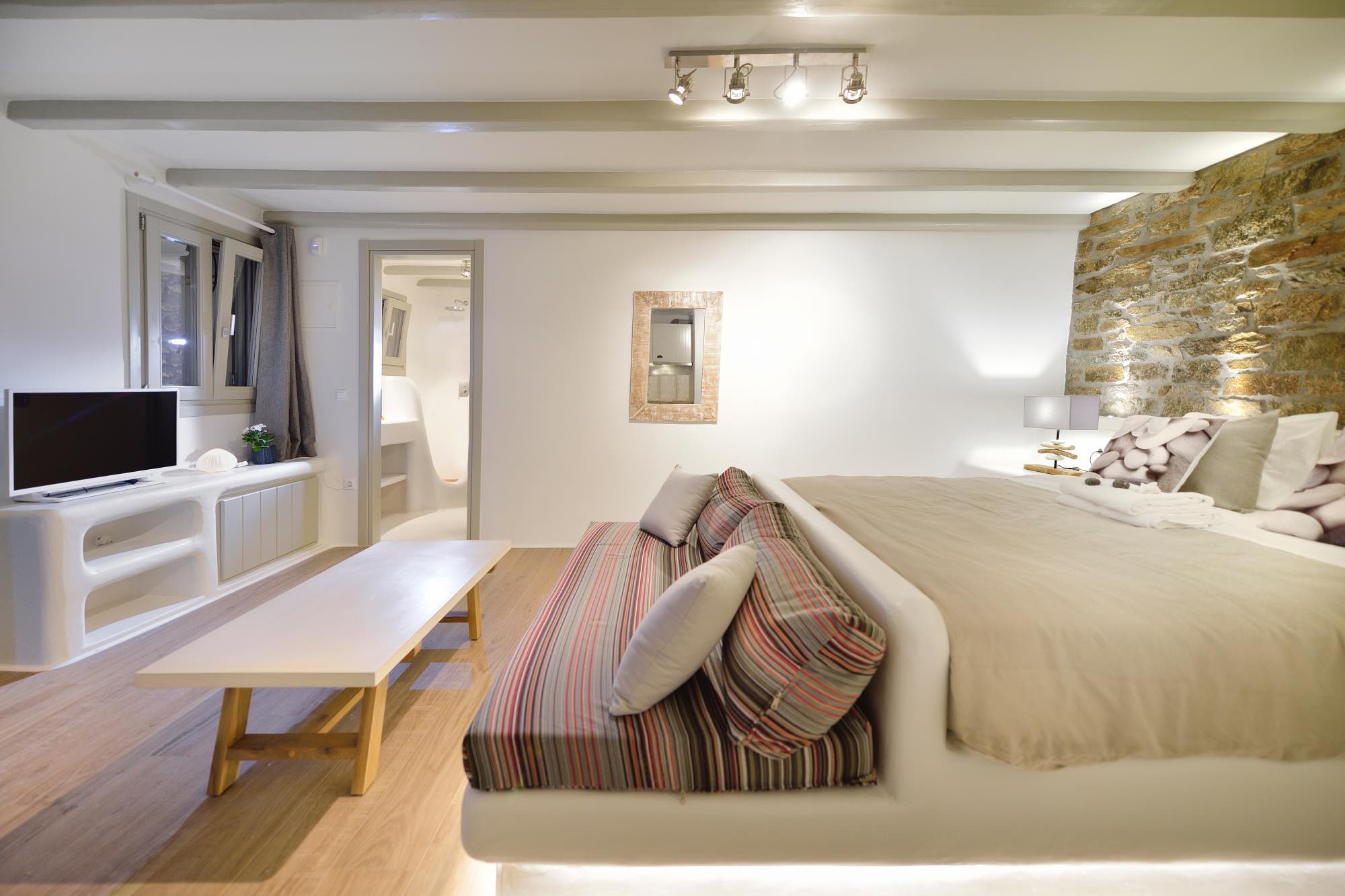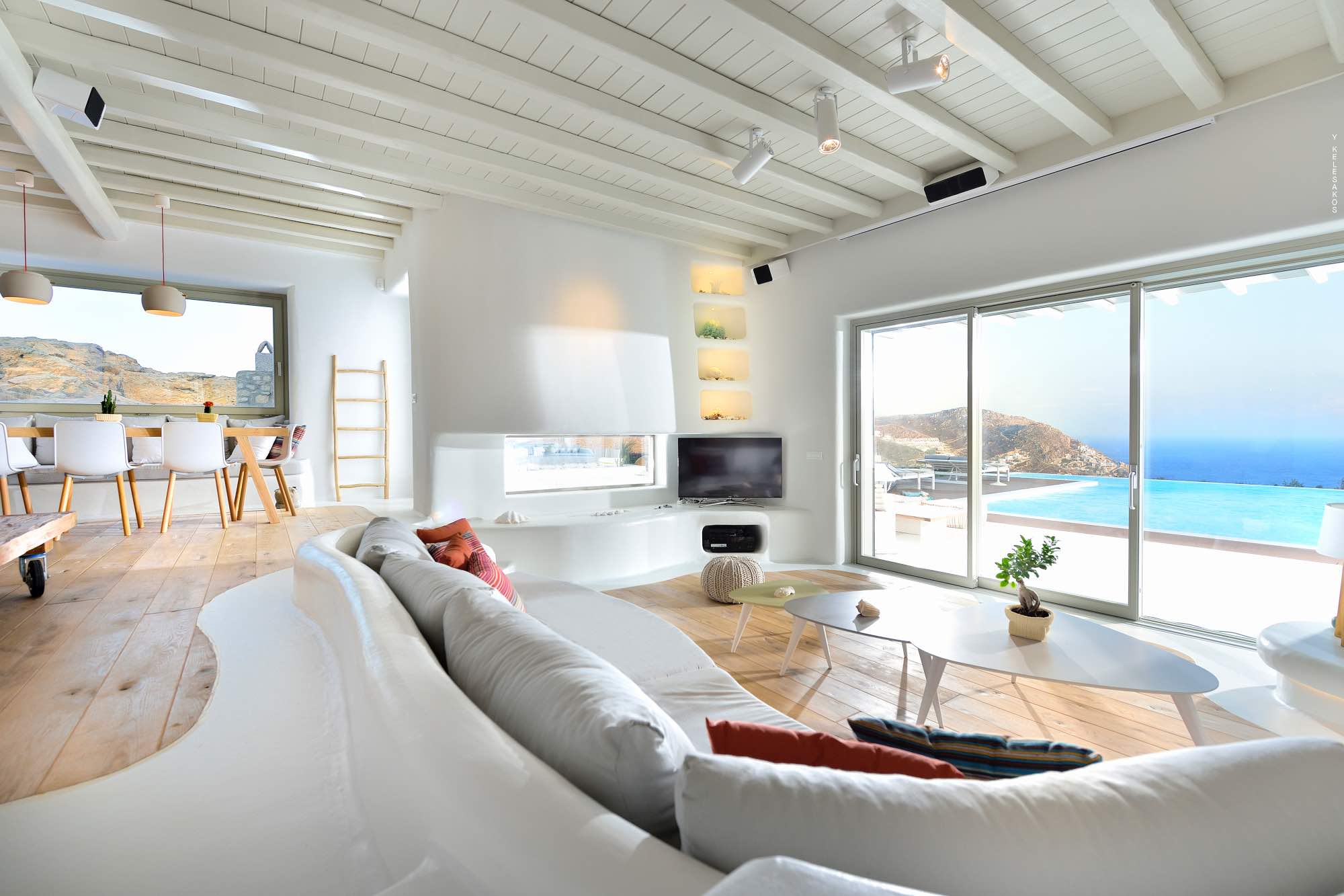 Villa Savina is situated in the northern part of the island of Mykonos, near the sandy beach of Elia. The location enjoys close proximity to the sandy beaches of Lia and Kalo Livadi, while still 15 min away form Chora and the main nightlife happenings.