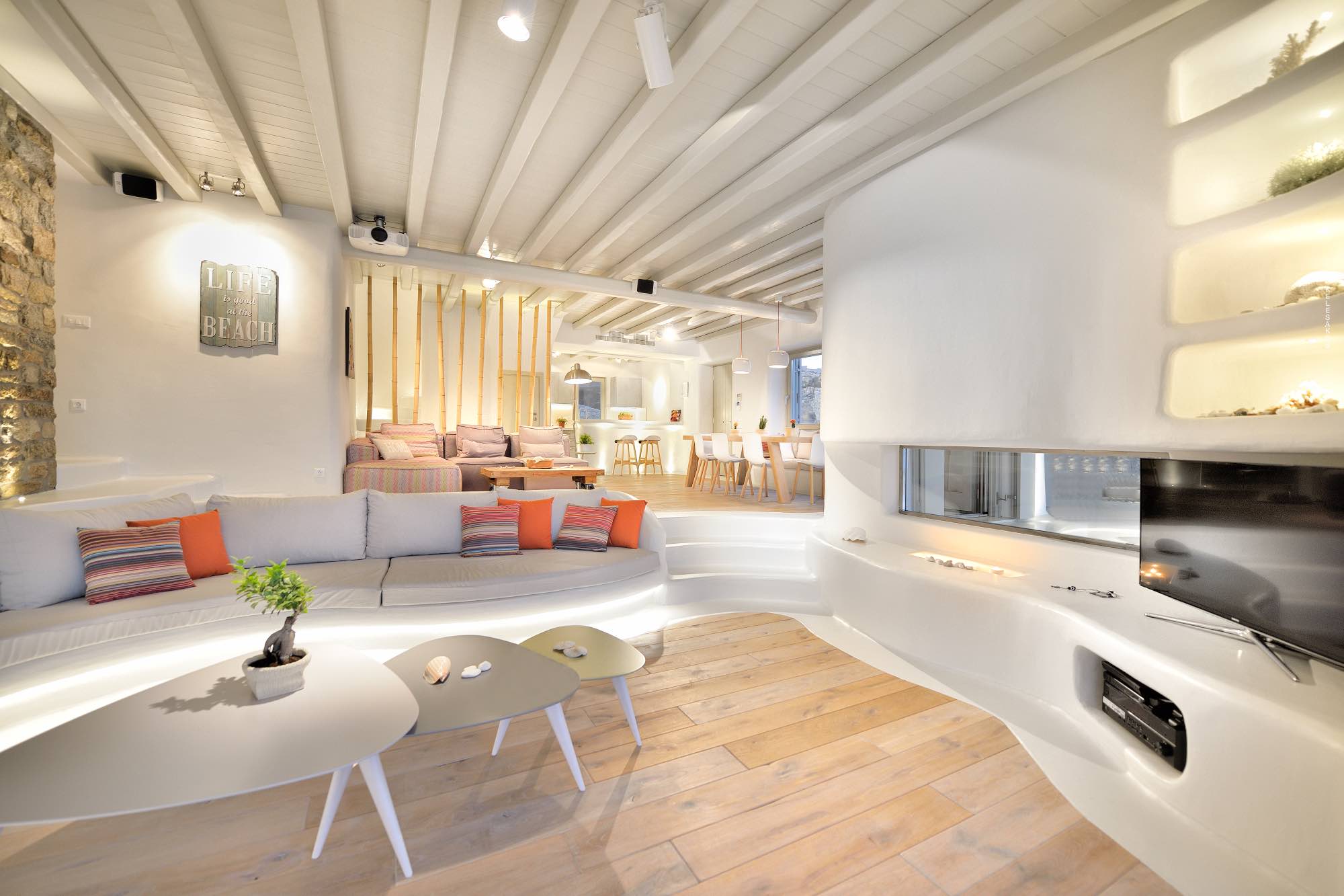 This villa of 270 sqm has been designed by an awarded architect studio and consists of five spacious bedrooms, where up to 11 guests can comfortably be accommodated. Villa Savina has an abundance of indoor and outdoor spaces, which are luxuriously furnished to the highest quality and detailed according to the latest design trends.