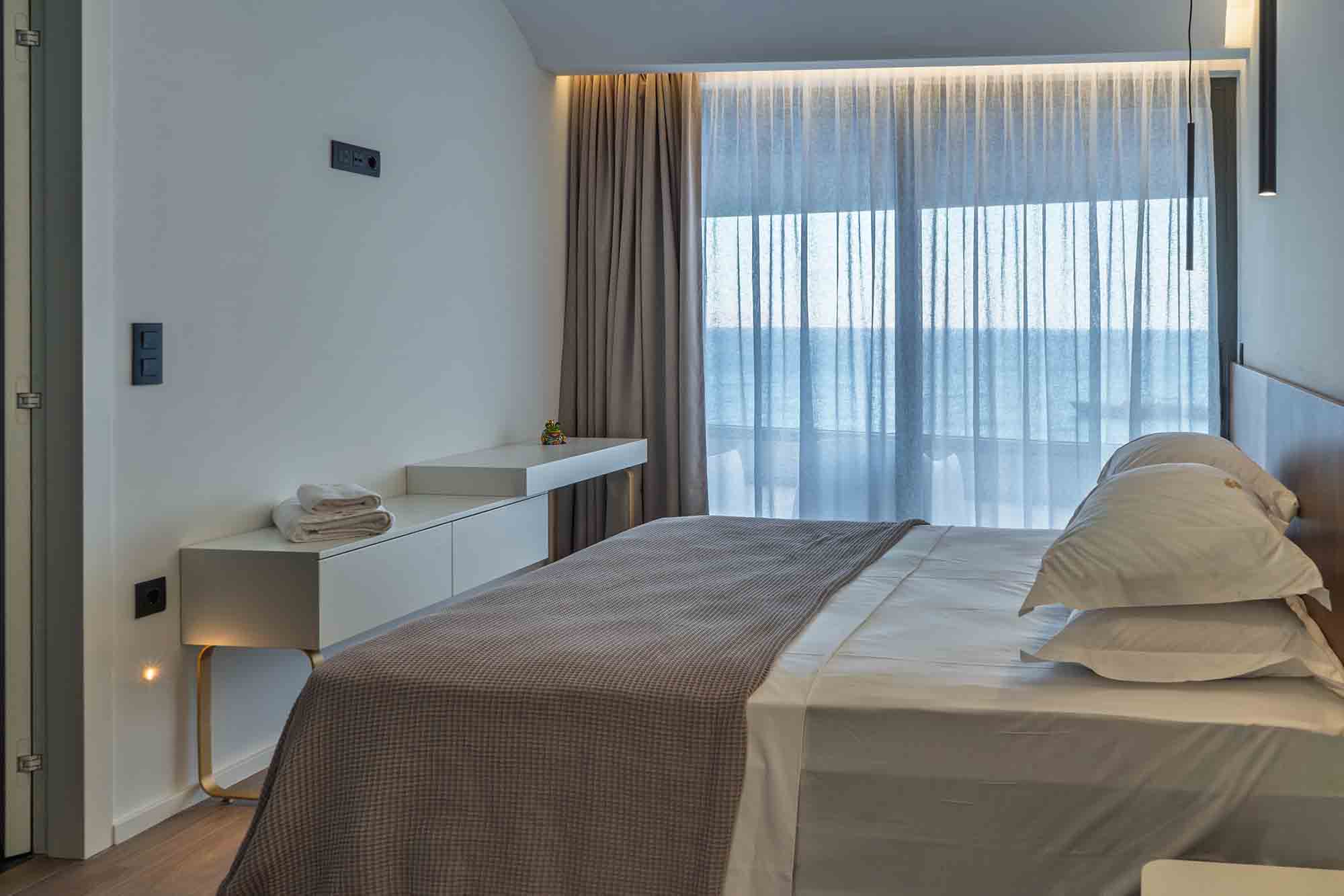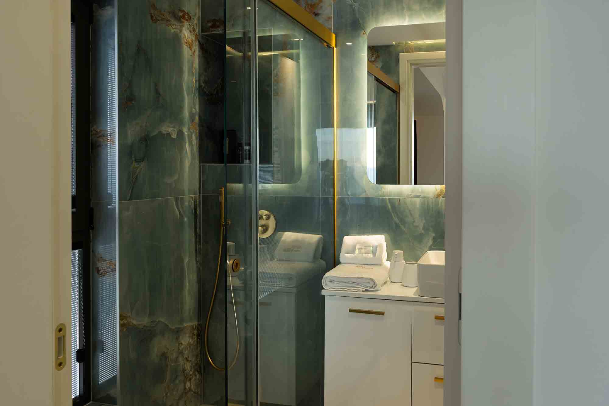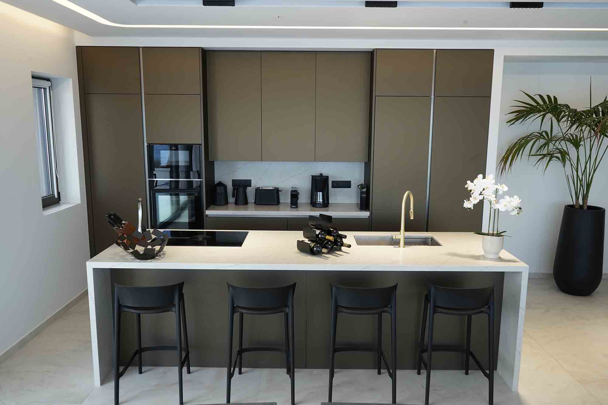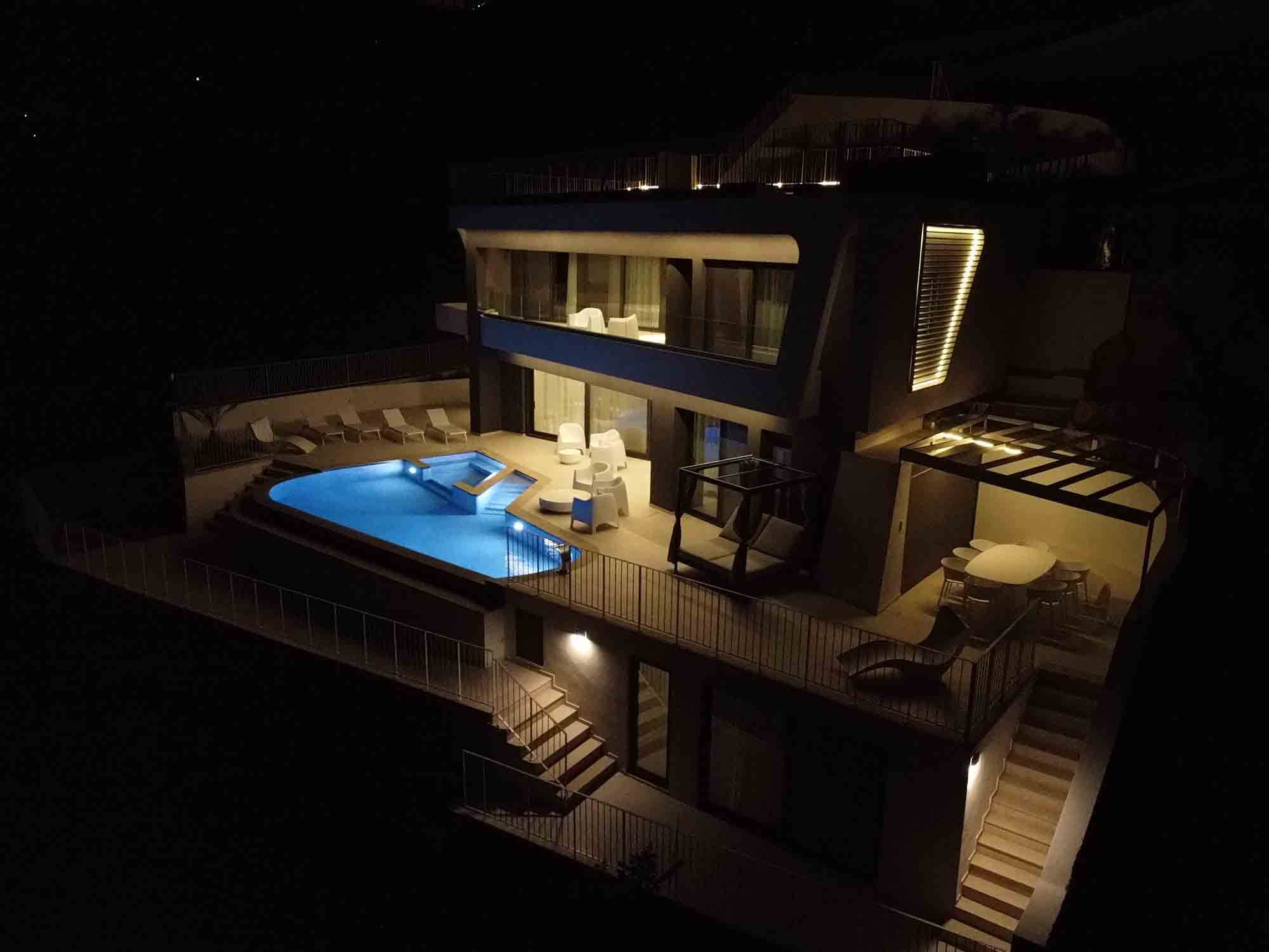 Outdoors, Sea Stone presents an extraordinary setting. A stunning infinity pool appears to blend seamlessly with the horizon, enhanced by hydromassage jets and a cascading waterfall. The fully equipped BBQ and dining area provides the perfect space for elegant outdoor gatherings, where evenings are enjoyed under the stars in effortless style. The villa also offers private sea access, allowing guests to descend directly to the water and explore hidden coastal sea caves—an experience reserved for the few.