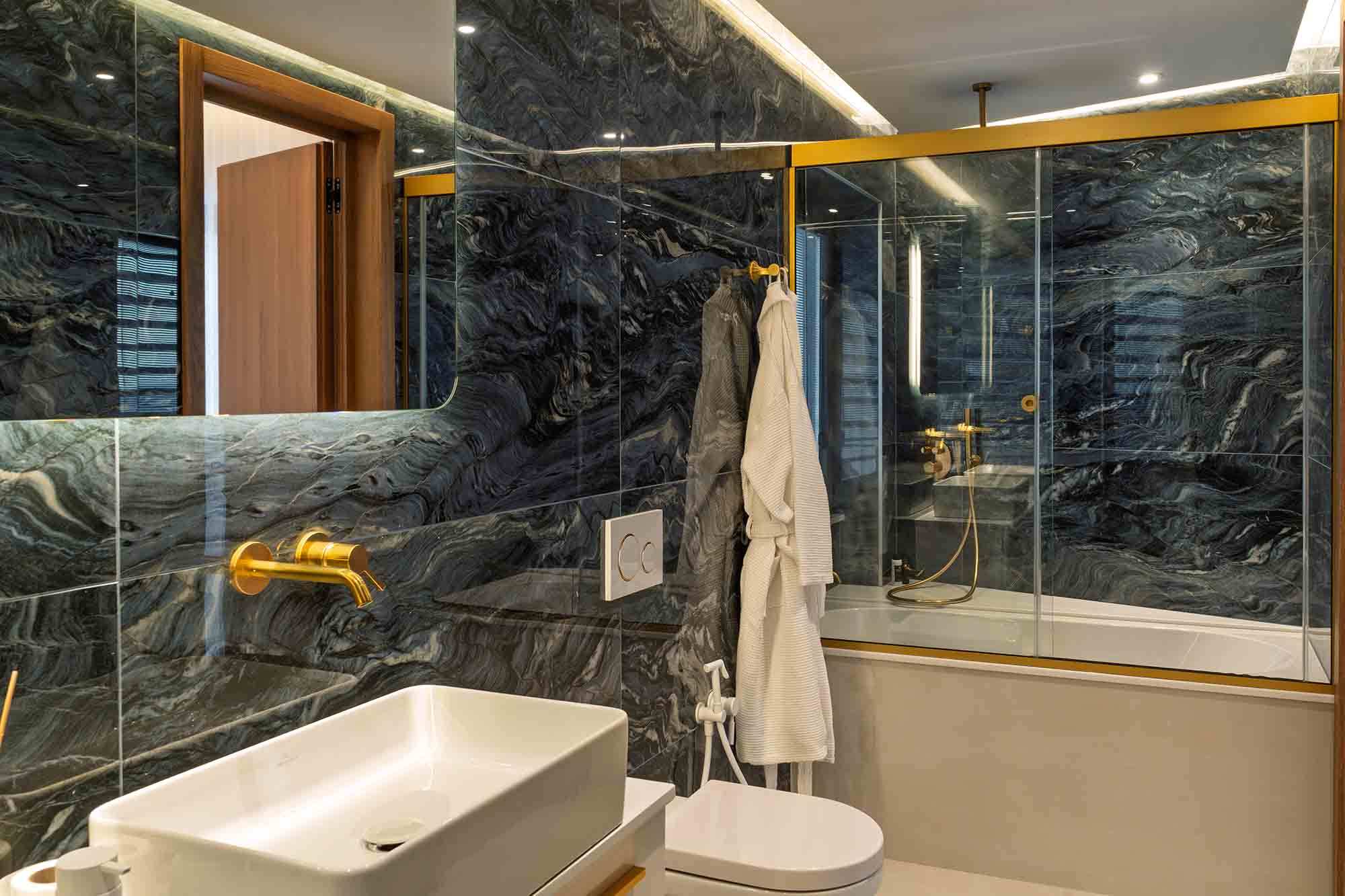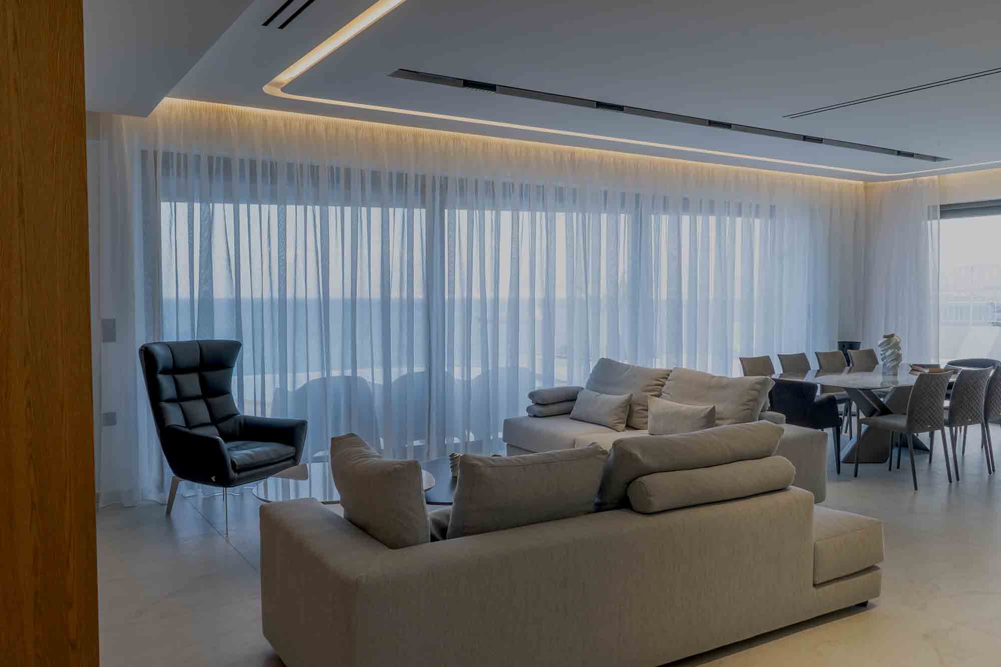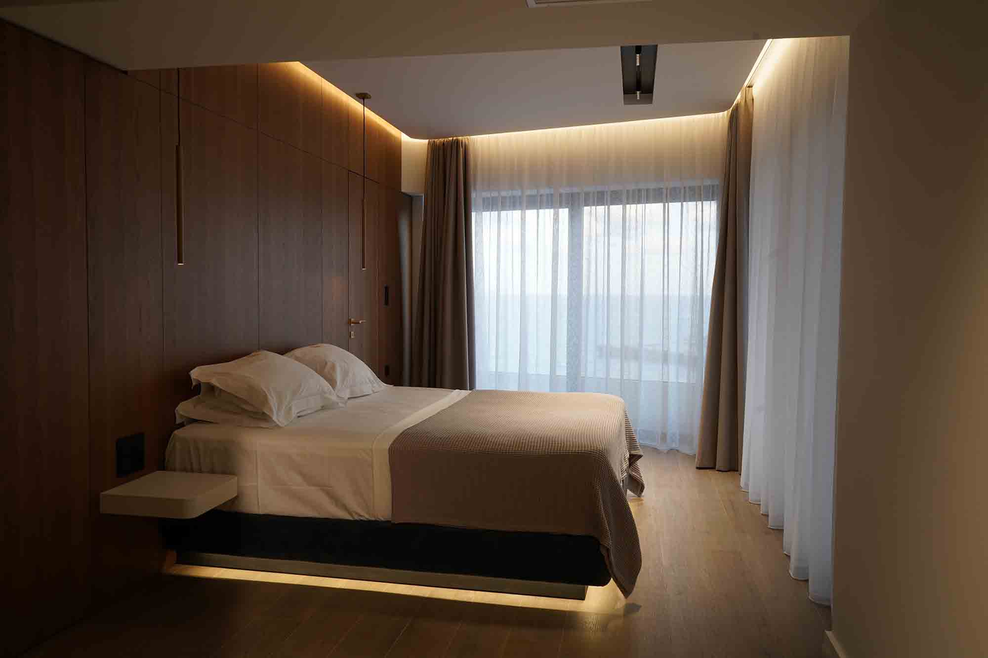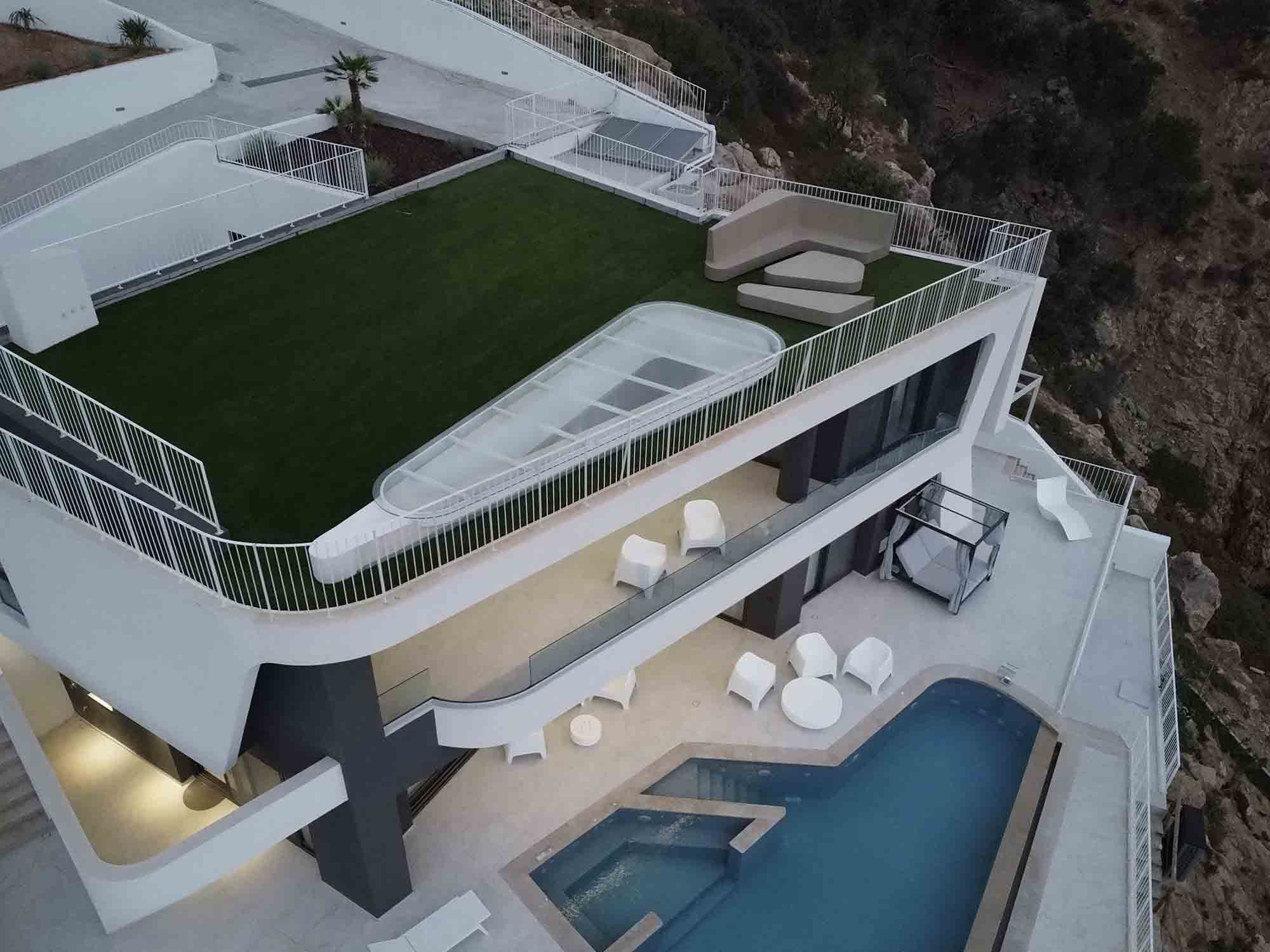 The lower level is dedicated to leisure and entertainment, featuring a modern gym with panoramic sea views, a private cinema, and a sophisticated bar—creating a perfect balance between activity and relaxation beyond spaces.