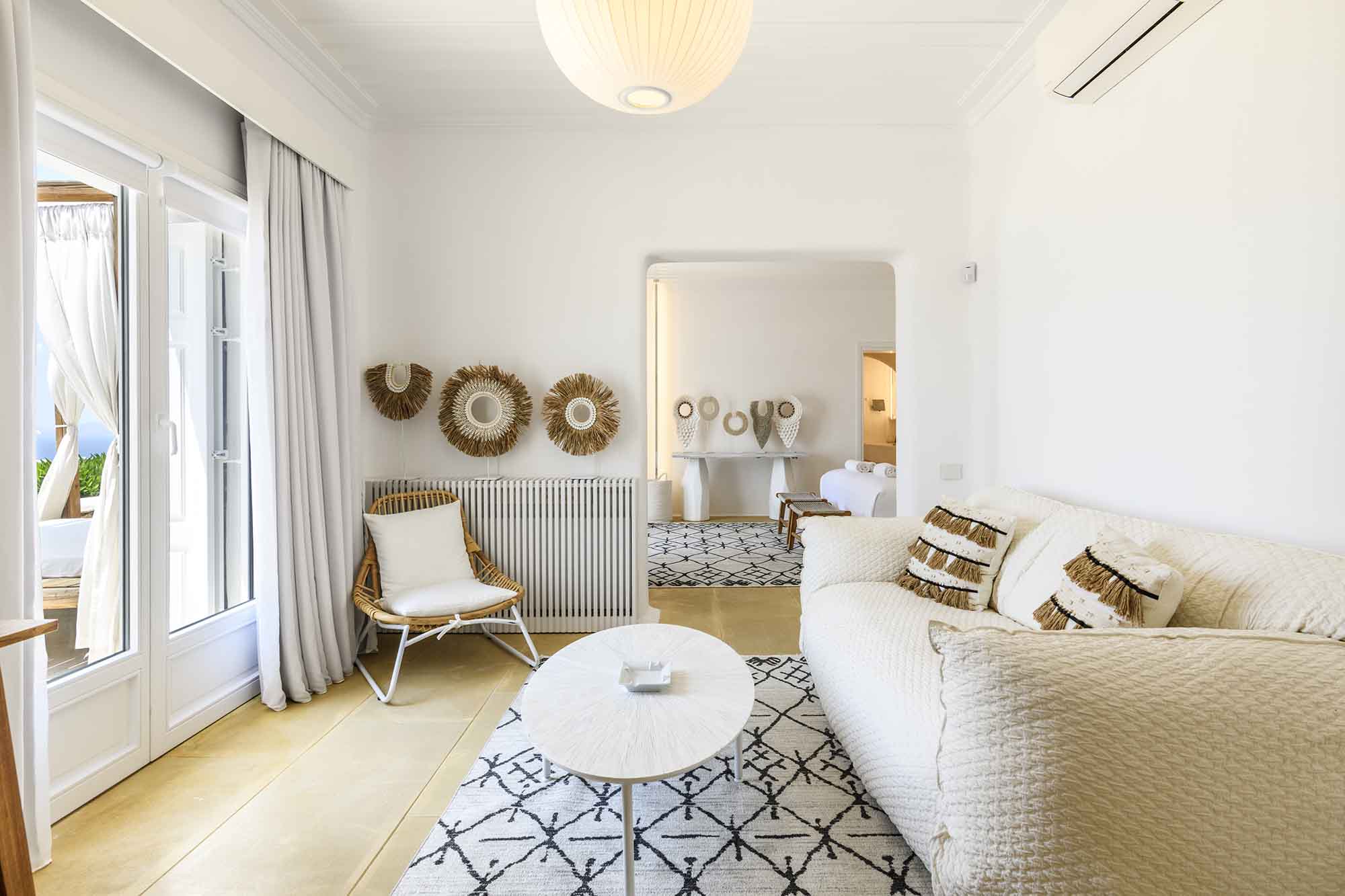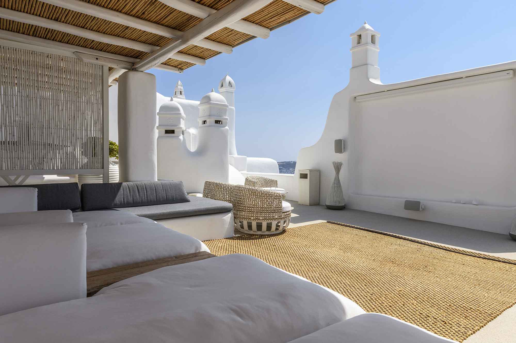 As the night falls, spend fun movie nights in your own private outdoor home cinema or take a quick drive to the action of Mykonos Town!