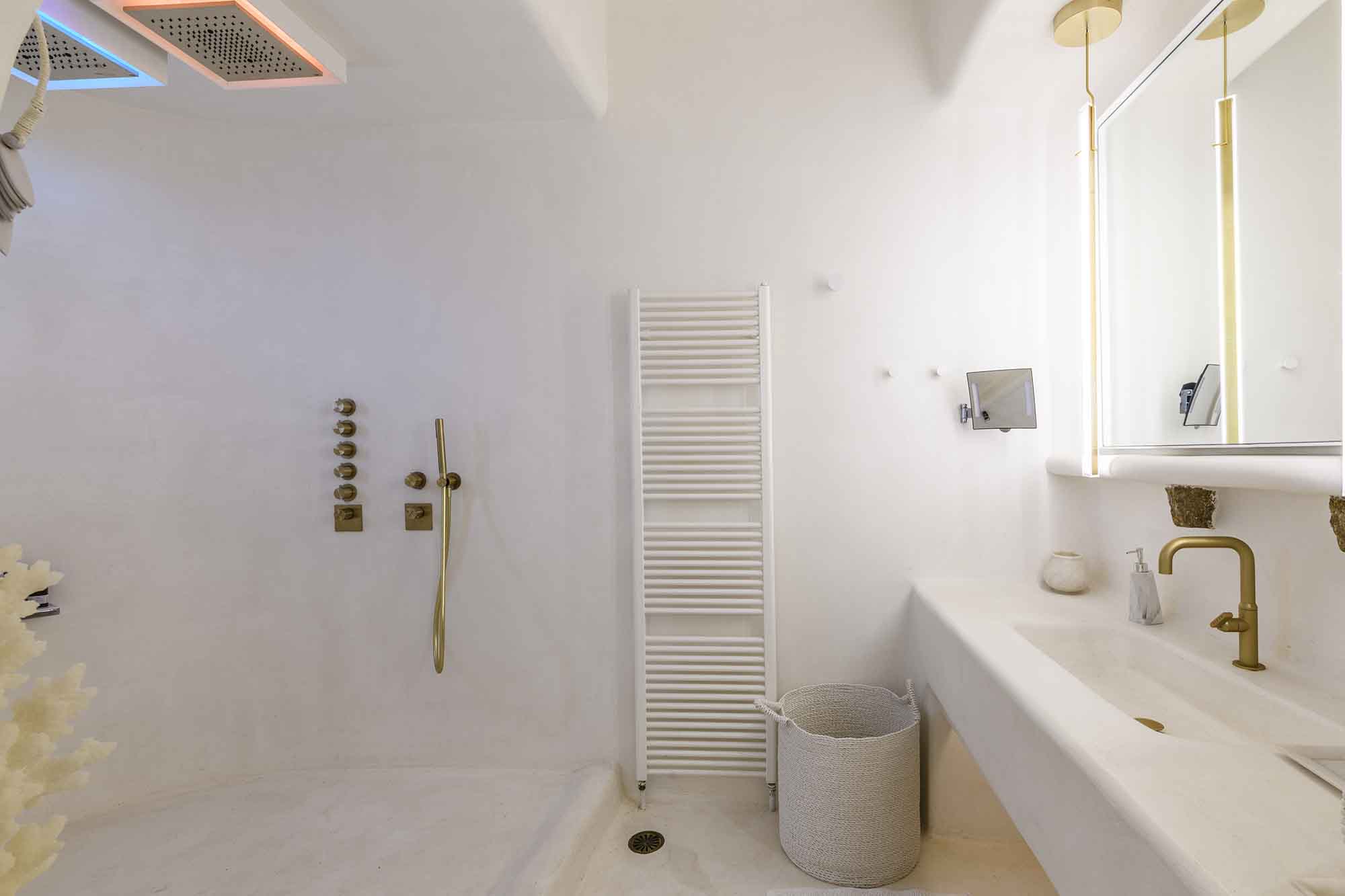 The main villa includes 3 main levels. The ground floor has an open plan living area with direct Sea view, a dining area and a professional kitchen. The are 9 bedrooms in total and can accommodate 18 guests. Villa Solar Two has several sitting and lounge areas, and it is great for big gatherings.
