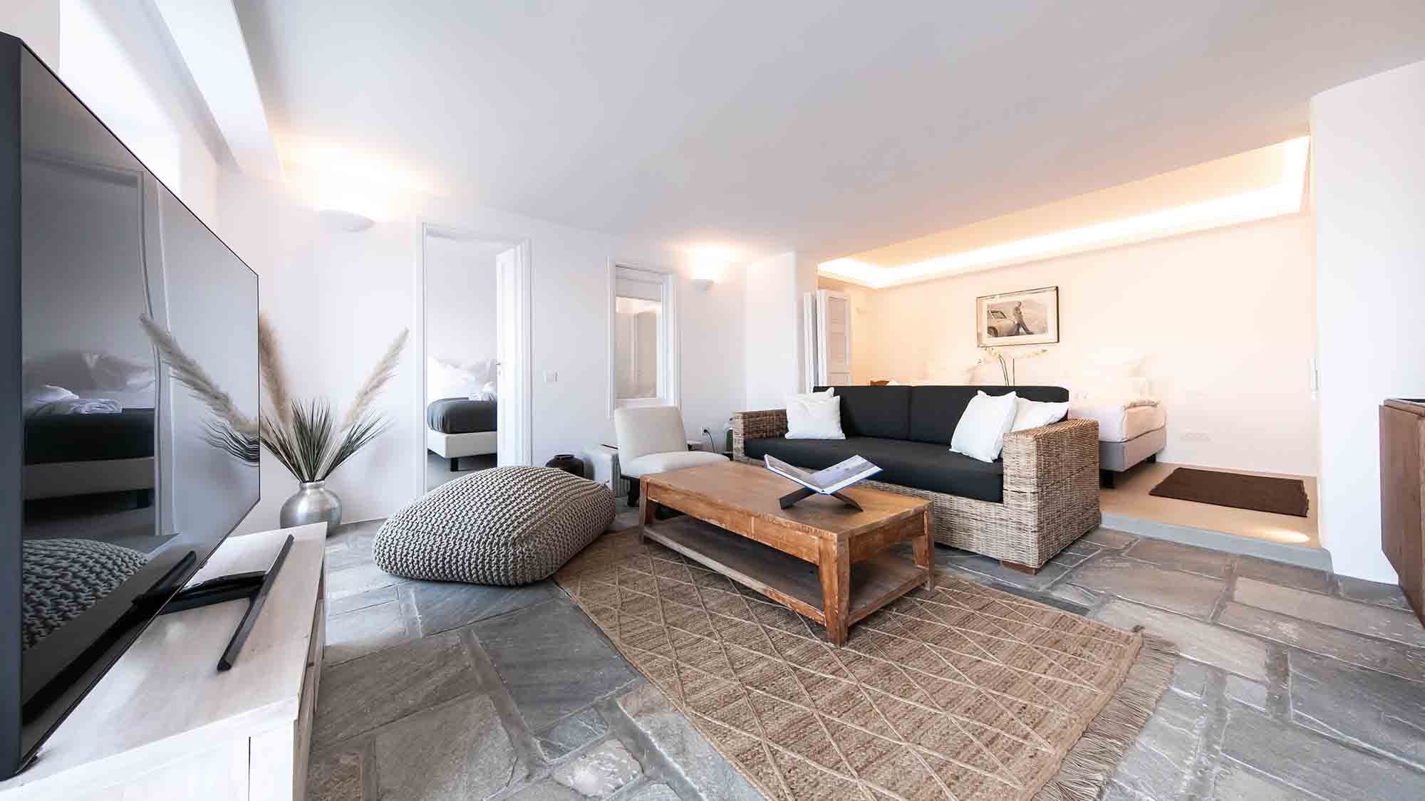 Villa Vuitton is furnished uniquely and offers luxury facilities like a boutique hotel. It is built on two levels and has four independent apartment suites with separate entrances as well as a stone-built bedroom and bathroom on the north side of the main structure.