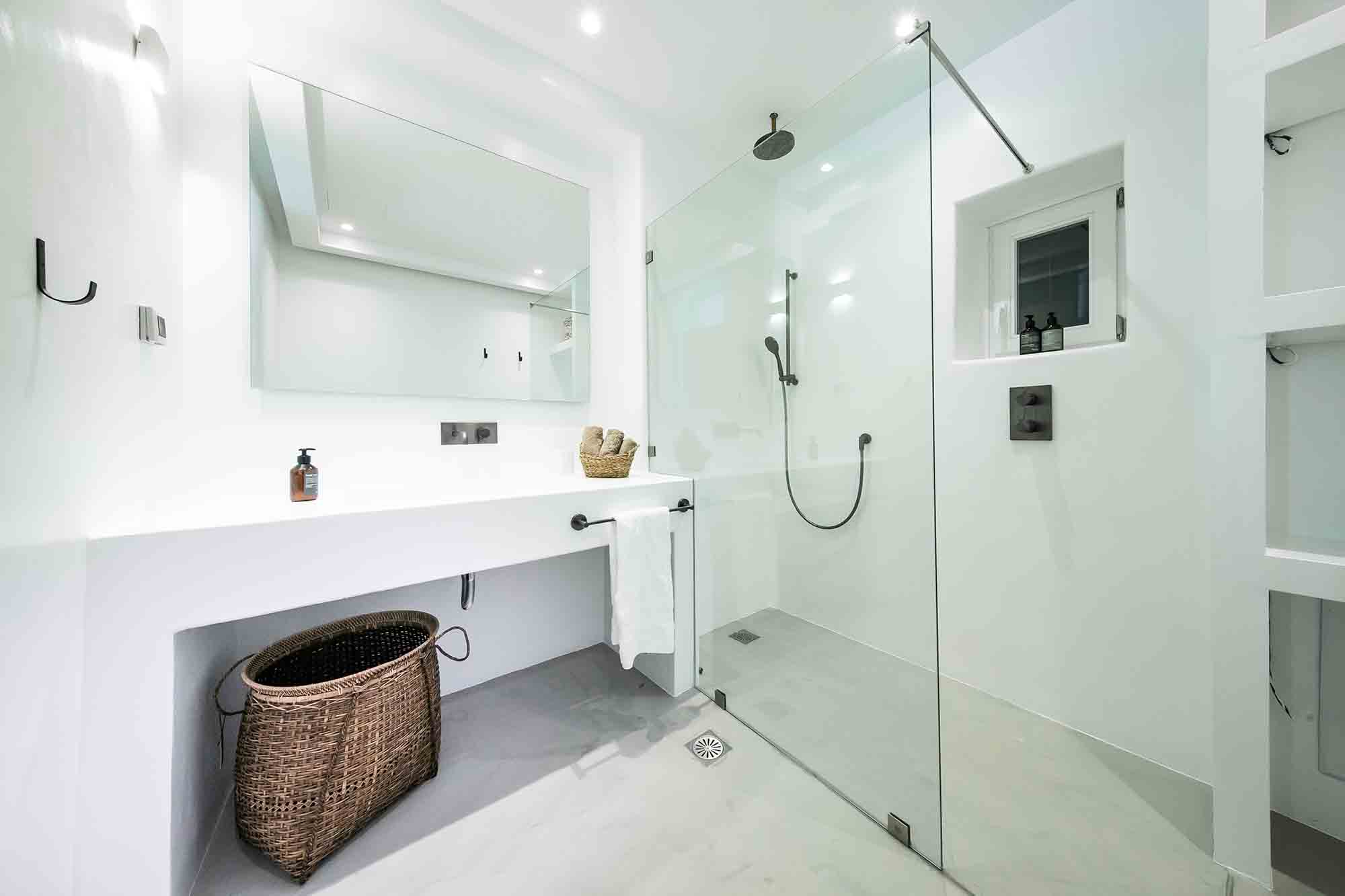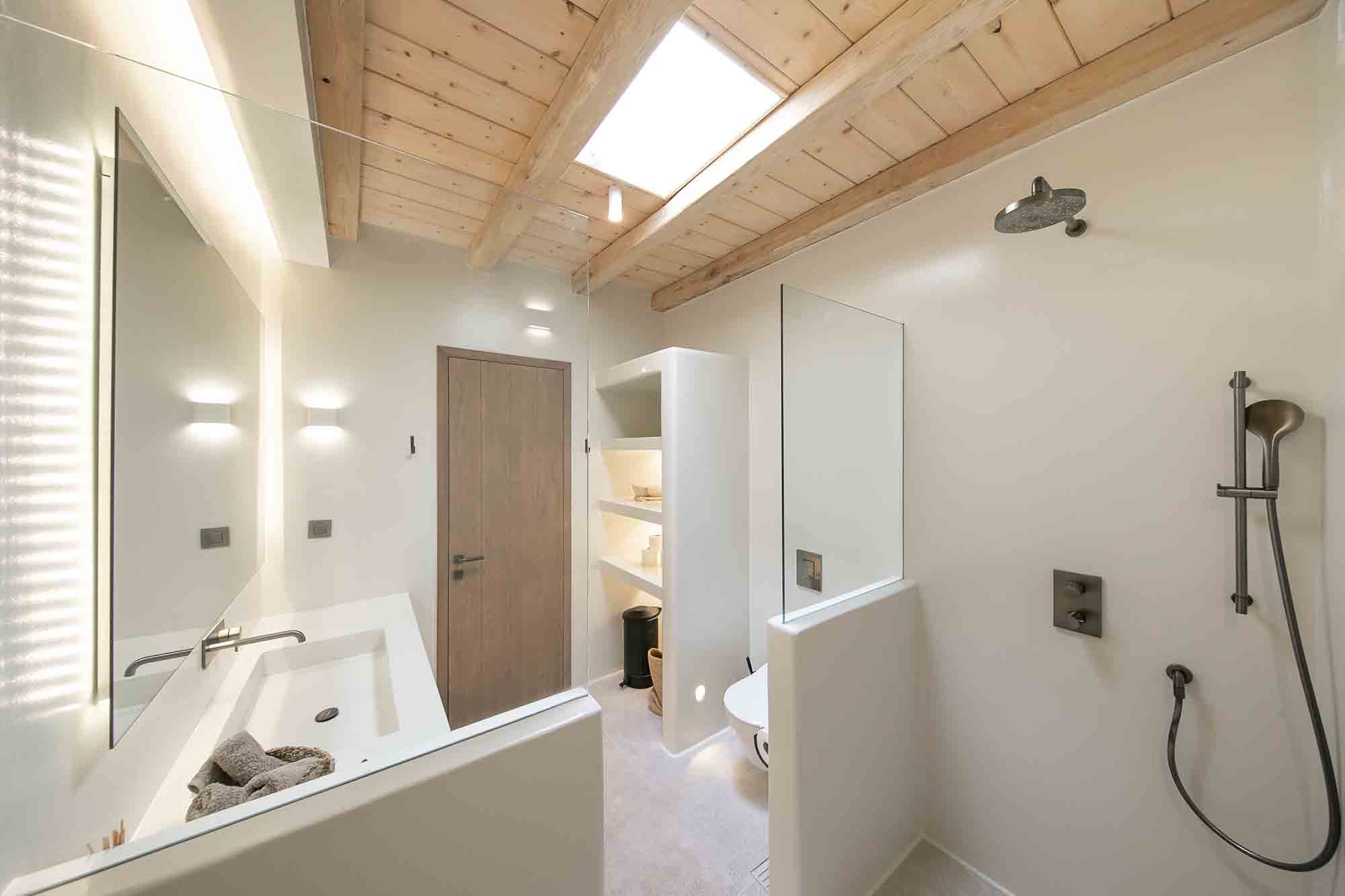 On the upper level, is the beautiful terrace with the pergola and the infinity pool which are oriented towards the sunset. It is a wonderful place to chill out with a book, cradled by the sound of the sea. A perfect place to enjoy a romantic dinner or lunch.